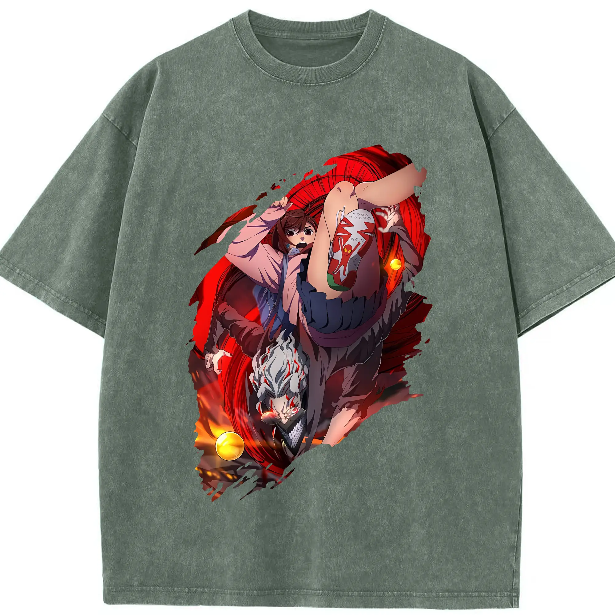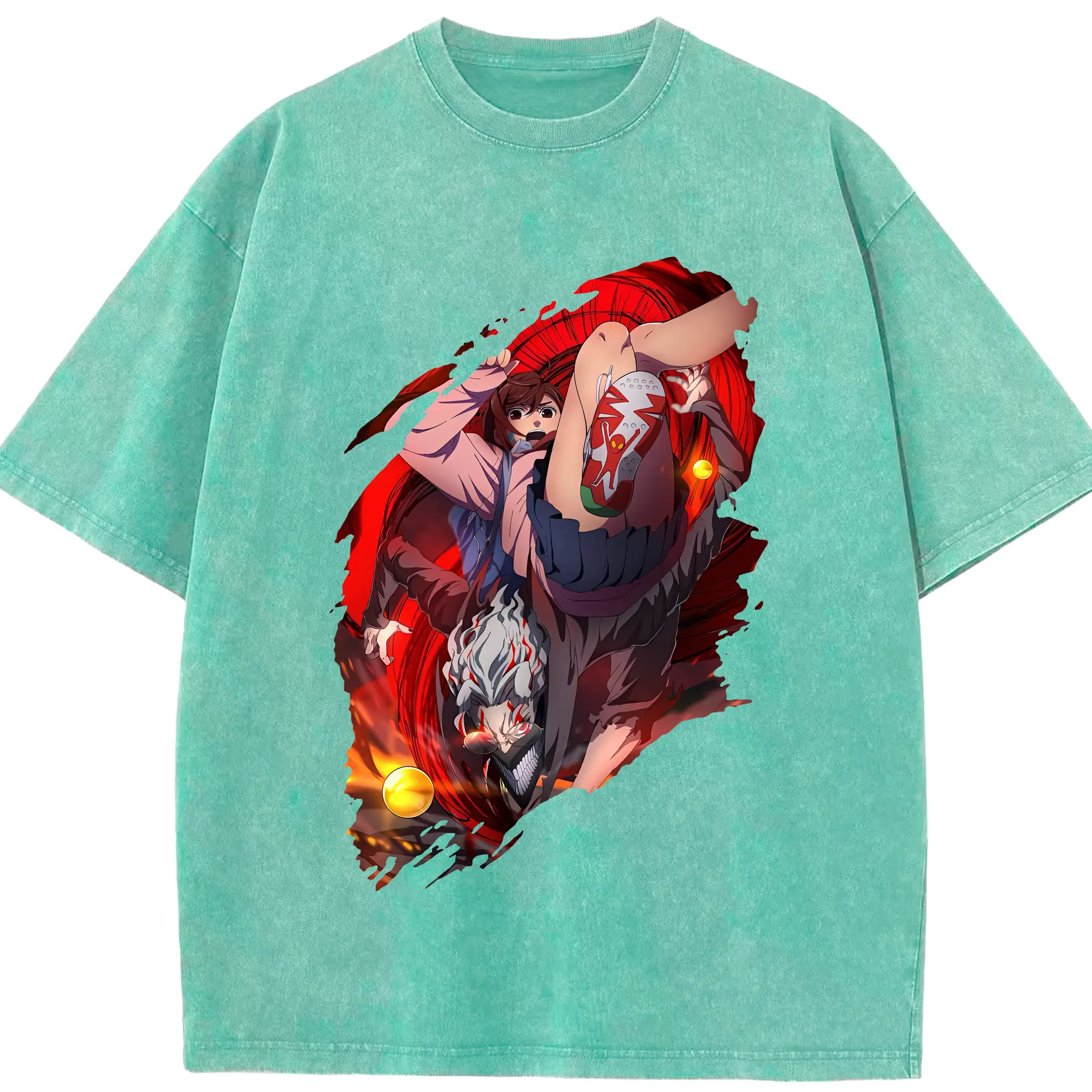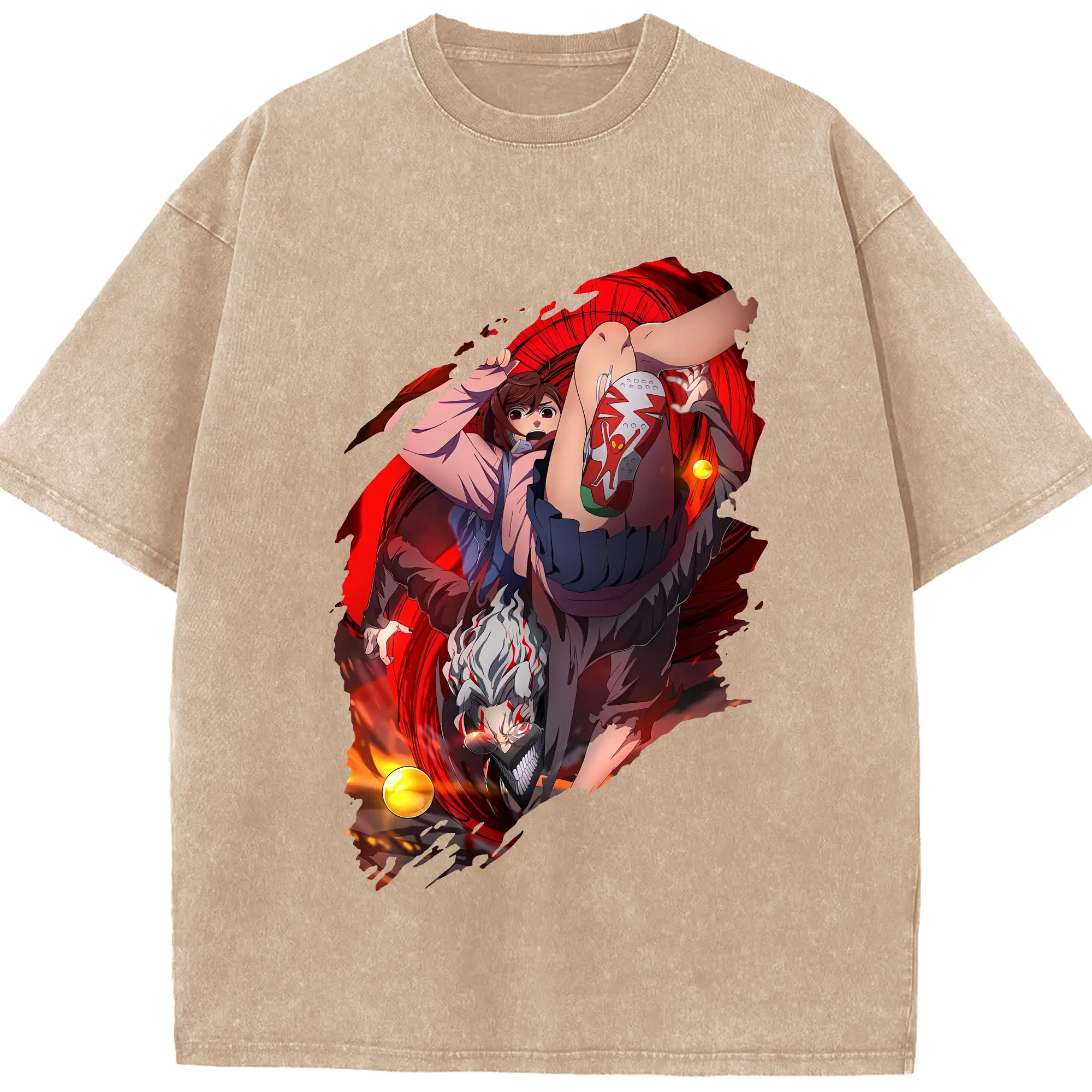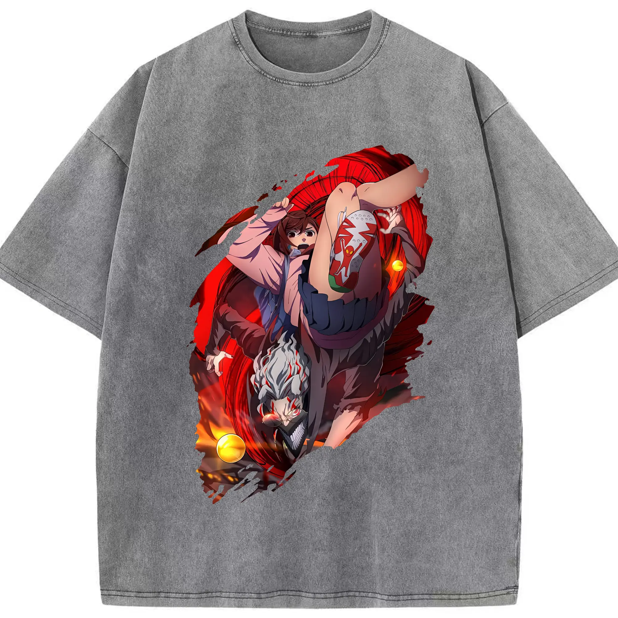 ダンダダン グッズ,綾瀬桃 - 綿100% ヴィンテージ風 半袖Tシャツ ・ 背面プリント ・ 柔らか肌触り ・ 通気性 快適 ・ スポーツ カジュアル 外出用