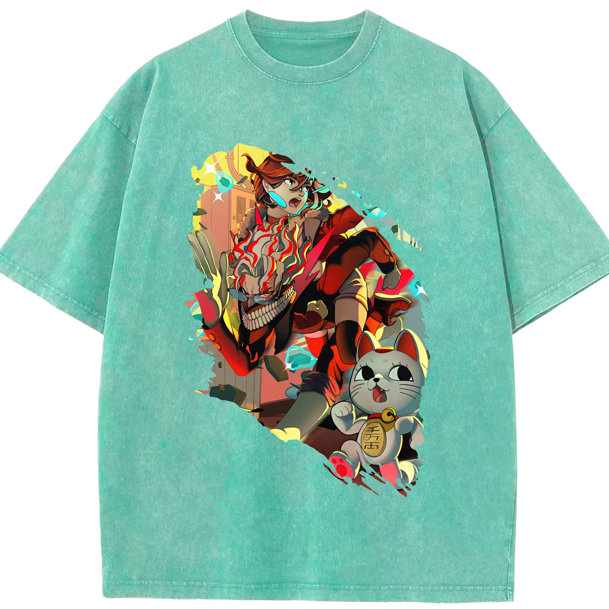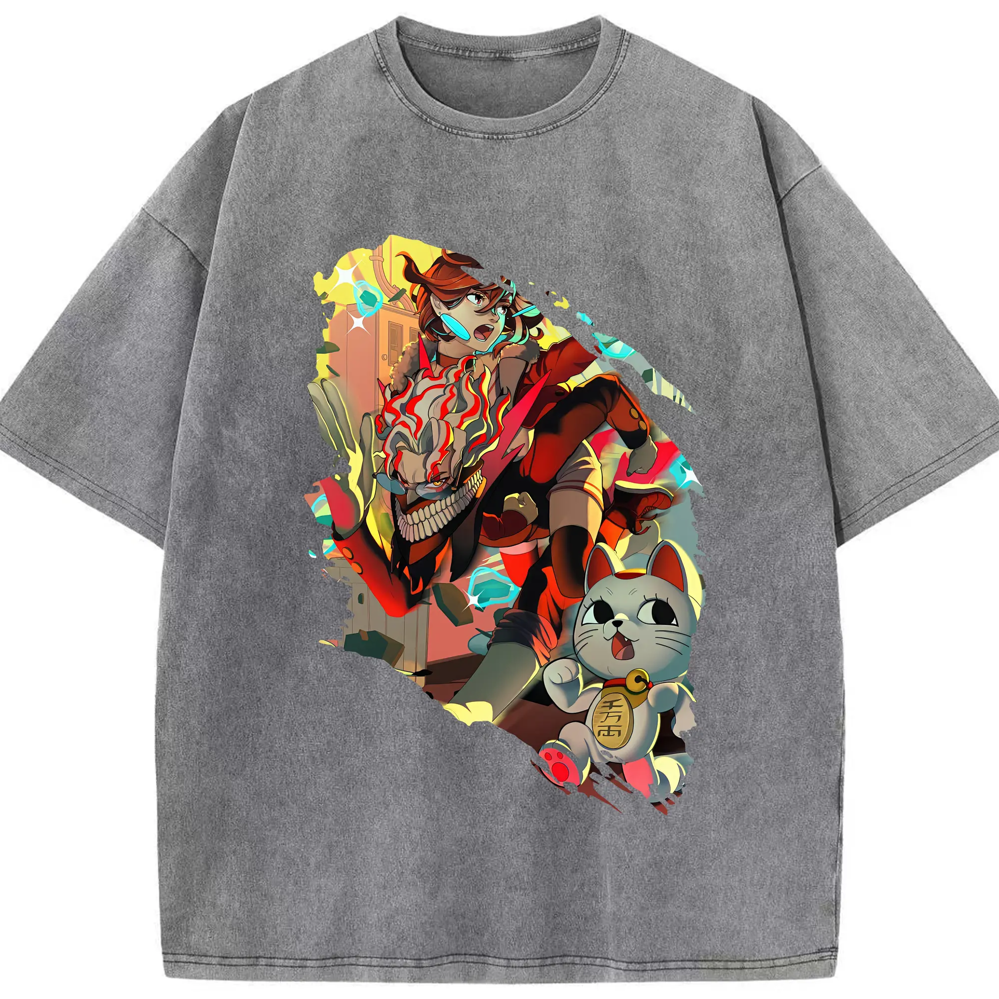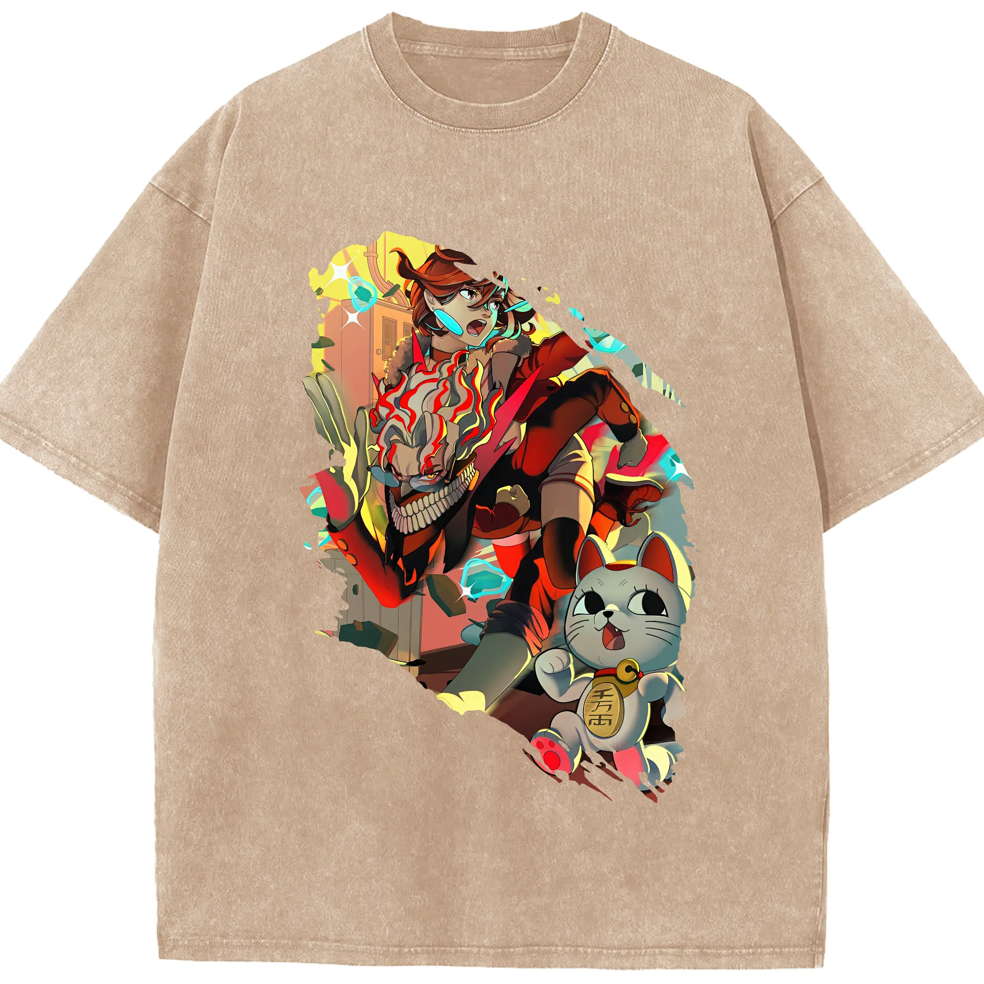 ダンダダン グッズ,綾瀬桃 - 綿100% ヴィンテージ風 半袖Tシャツ ・ 背面プリント ・ 柔らか肌触り ・ 通気性 快適 ・ スポーツ カジュアル 外出用