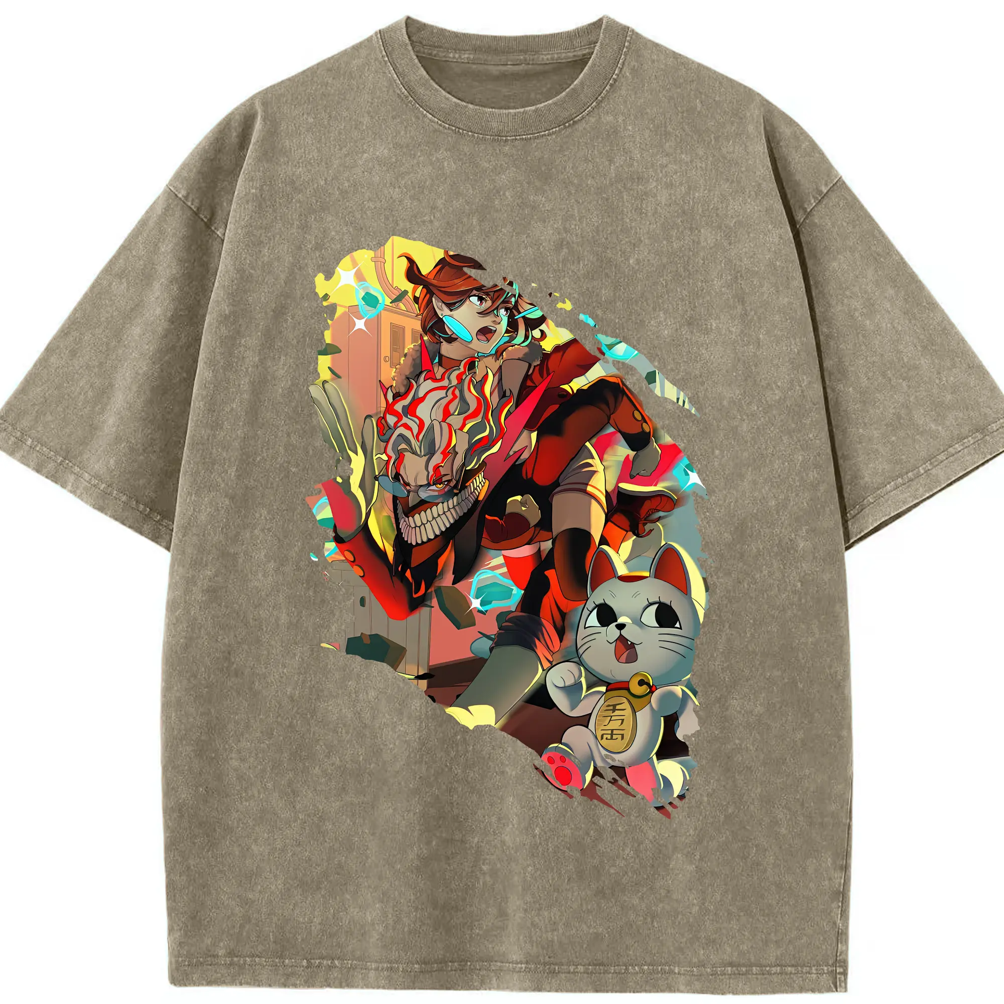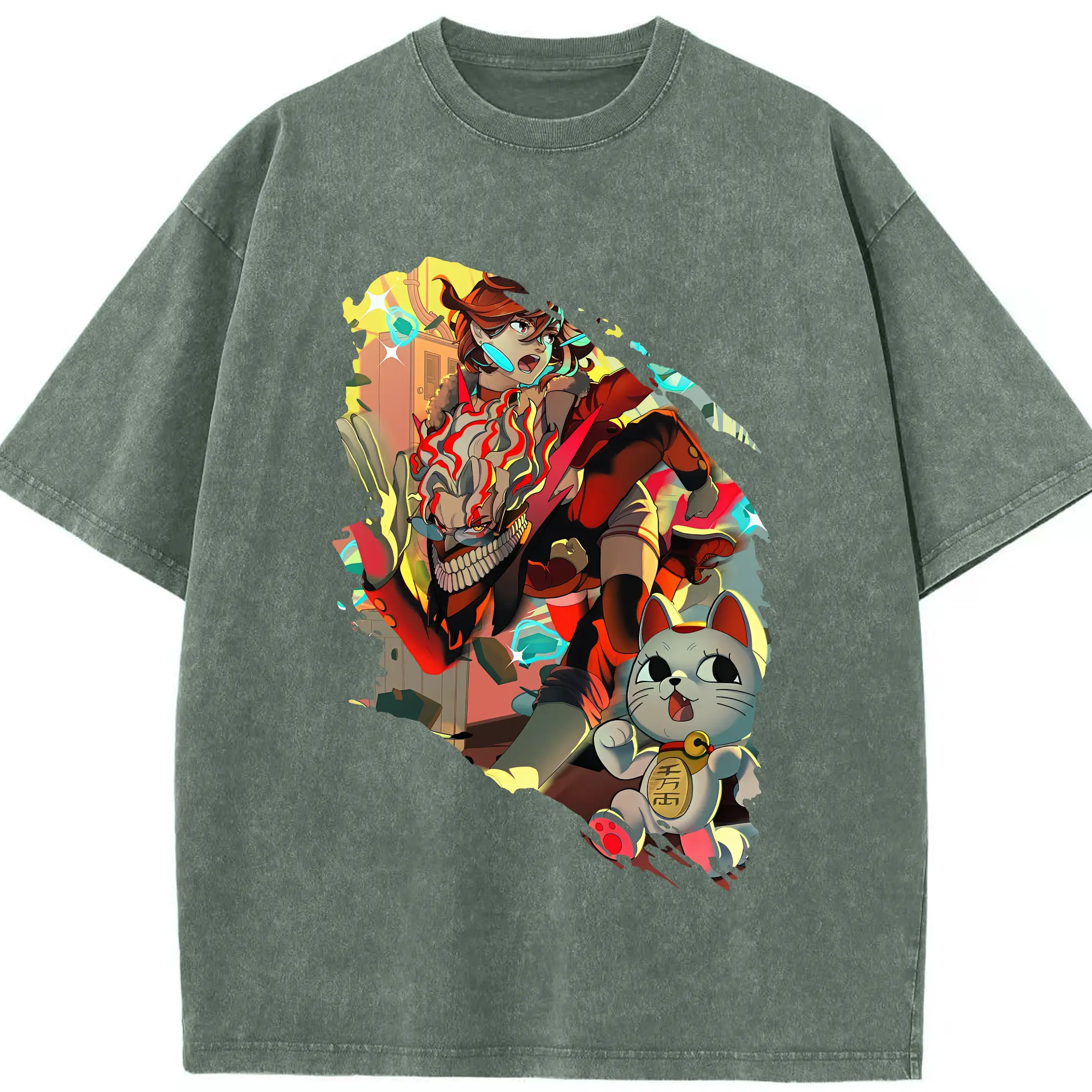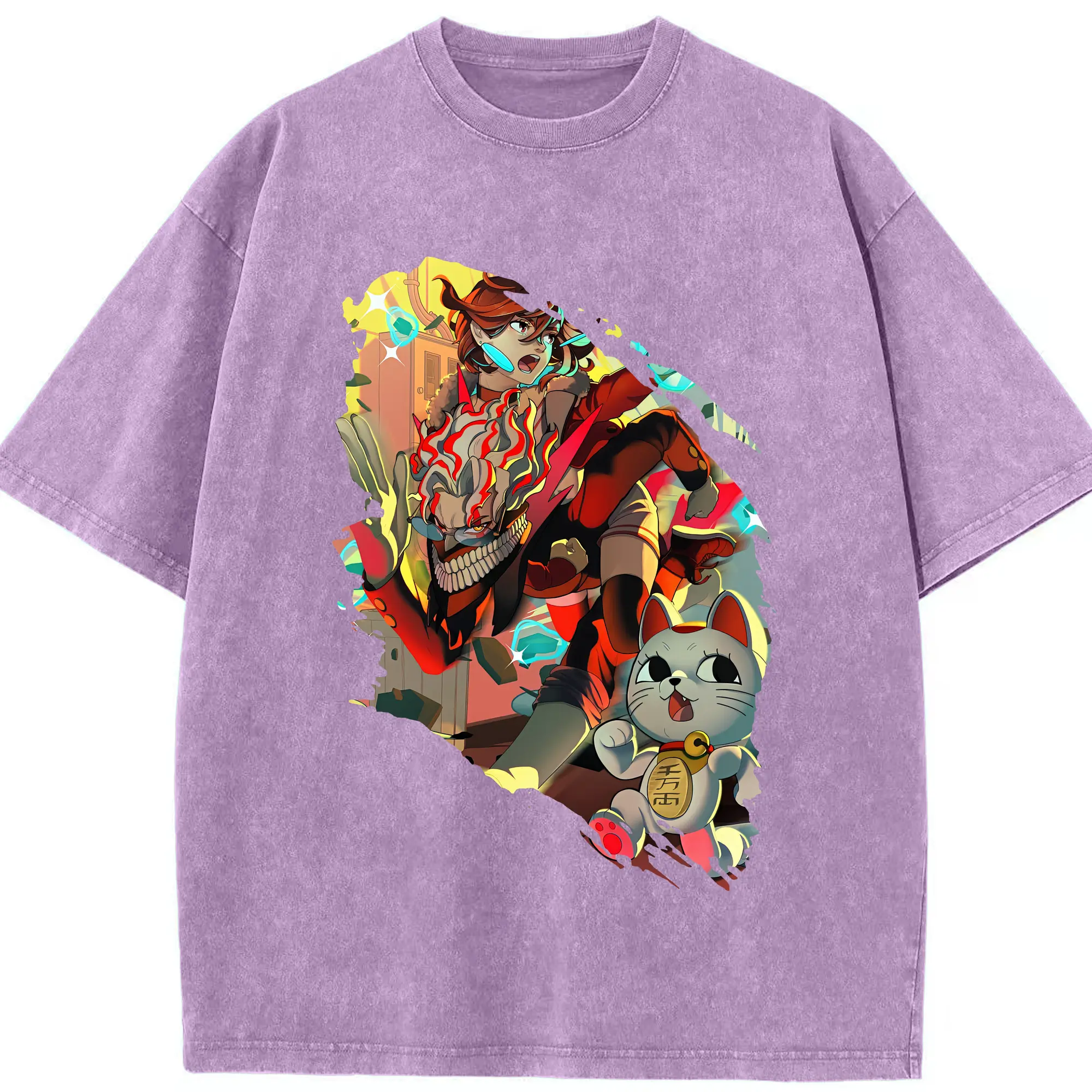 ダンダダン グッズ,綾瀬桃 - 綿100% ヴィンテージ風 半袖Tシャツ ・ 背面プリント ・ 柔らか肌触り ・ 通気性 快適 ・ スポーツ カジュアル 外出用