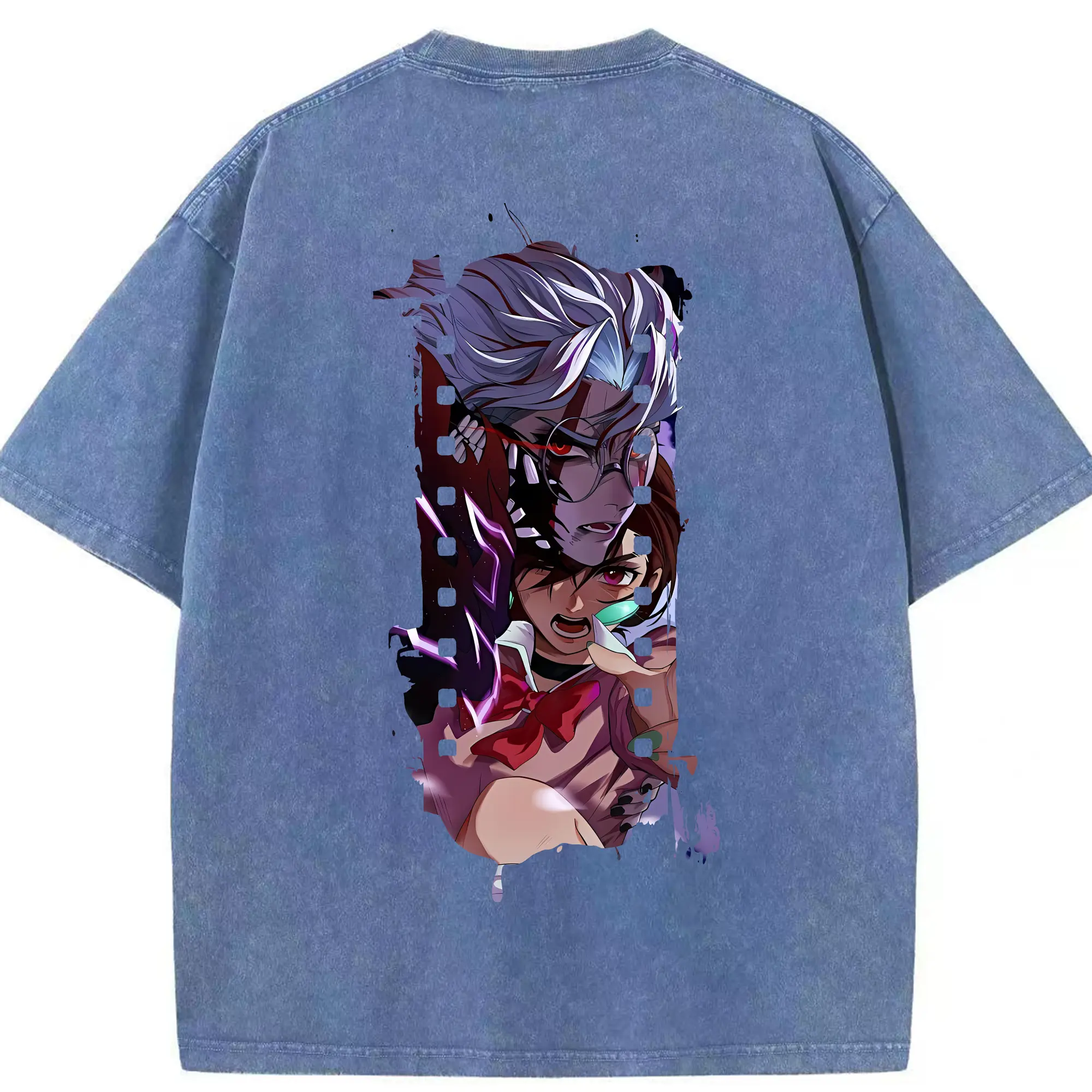 ワンパンマン グッズ 地獄のフブキ - 綿100% ヴィンテージ風 半袖Tシャツ ・ 背面プリント ・ 柔らか肌触り ・ 通気性 快適 ・ スポーツ カジュアル 外出用