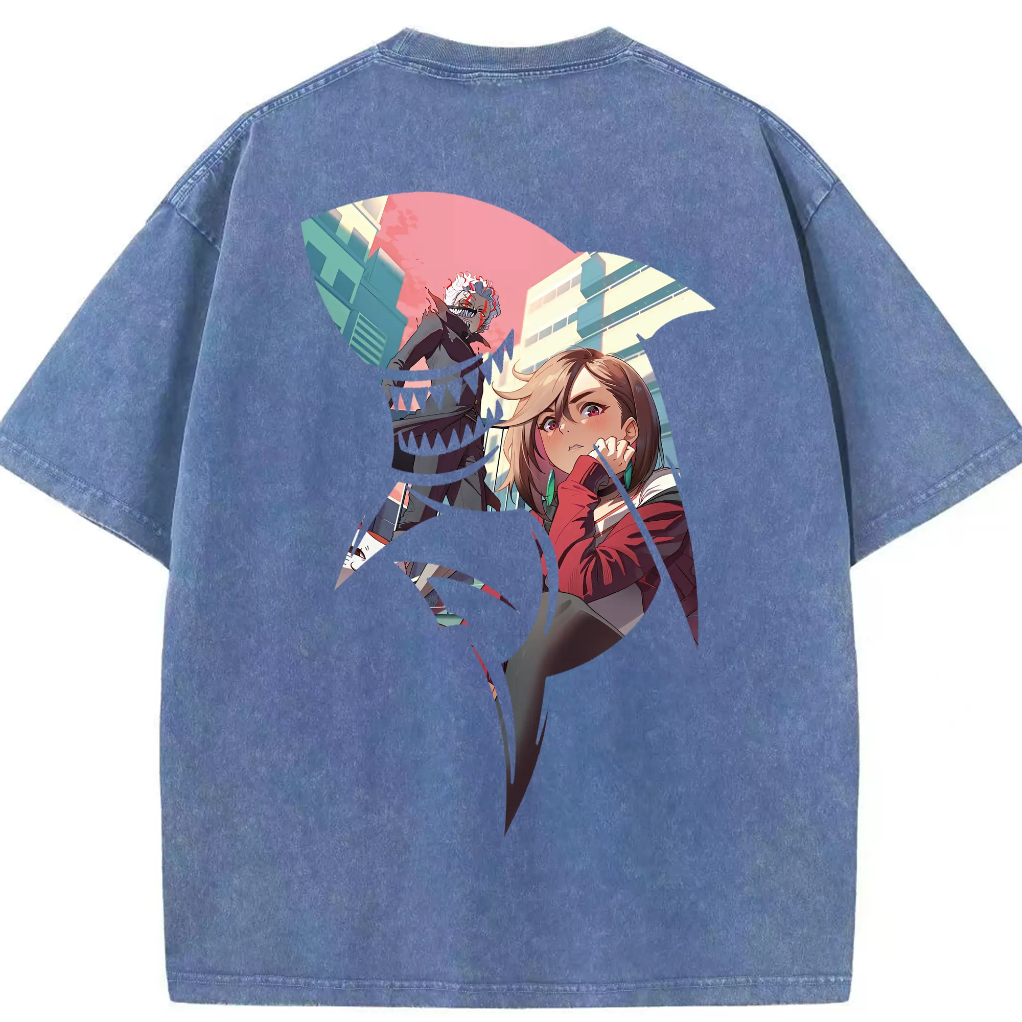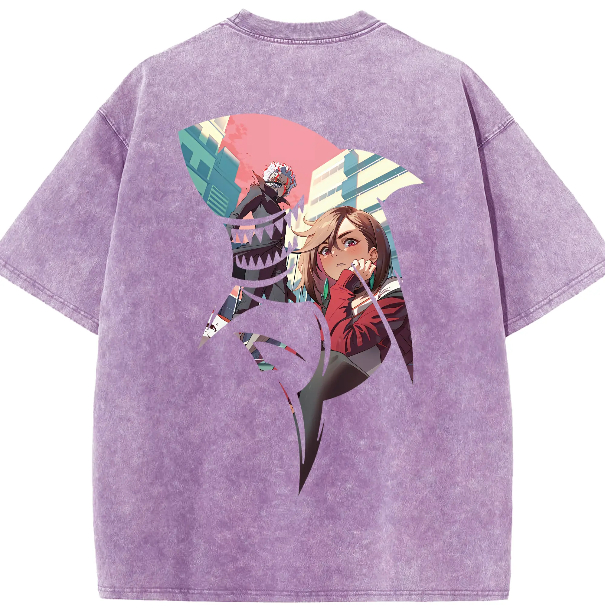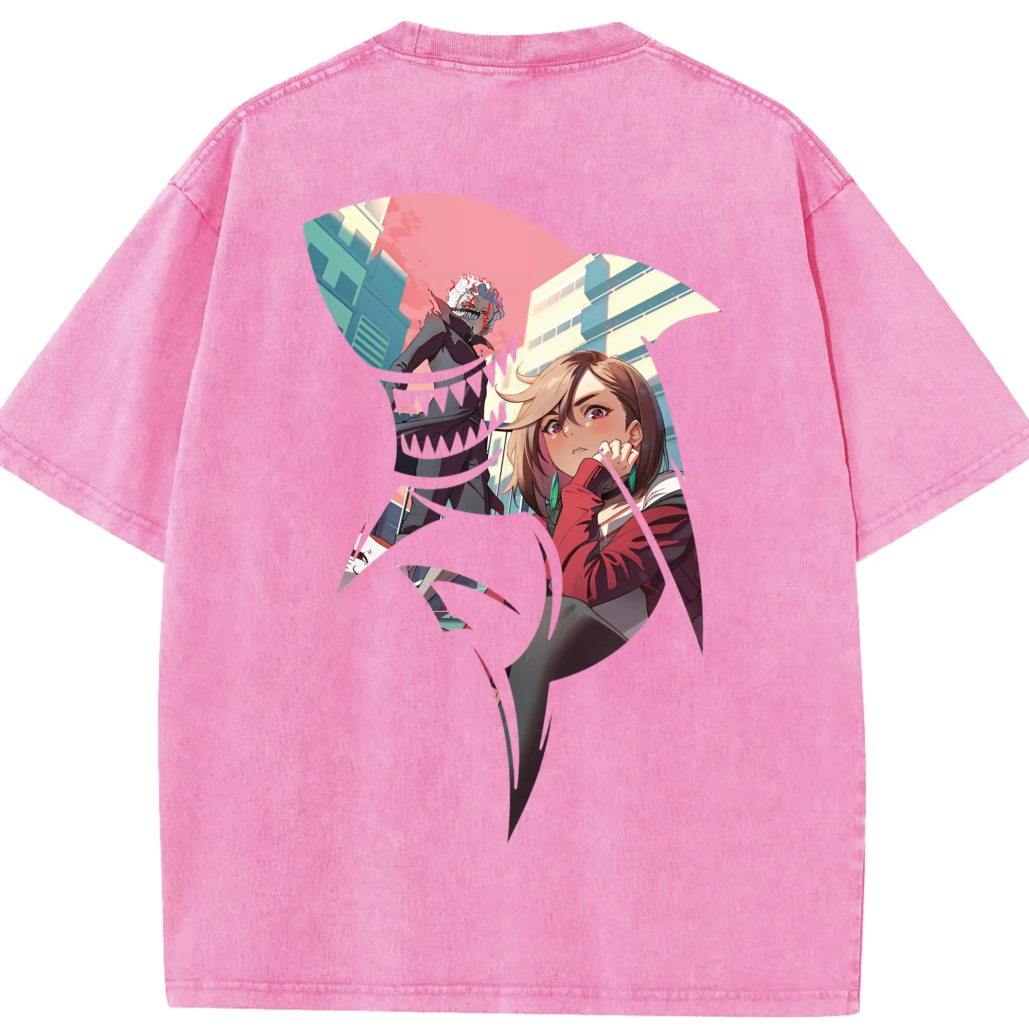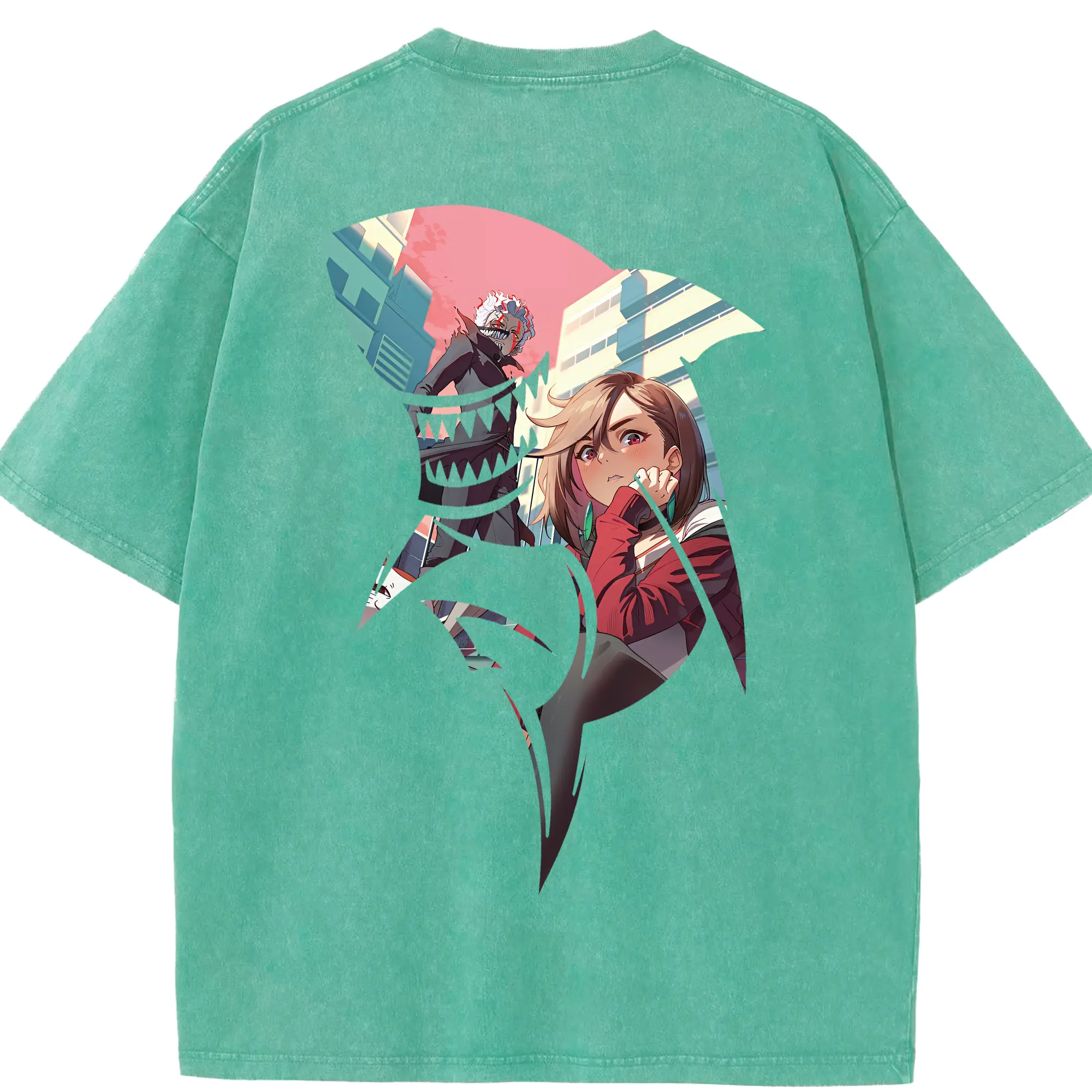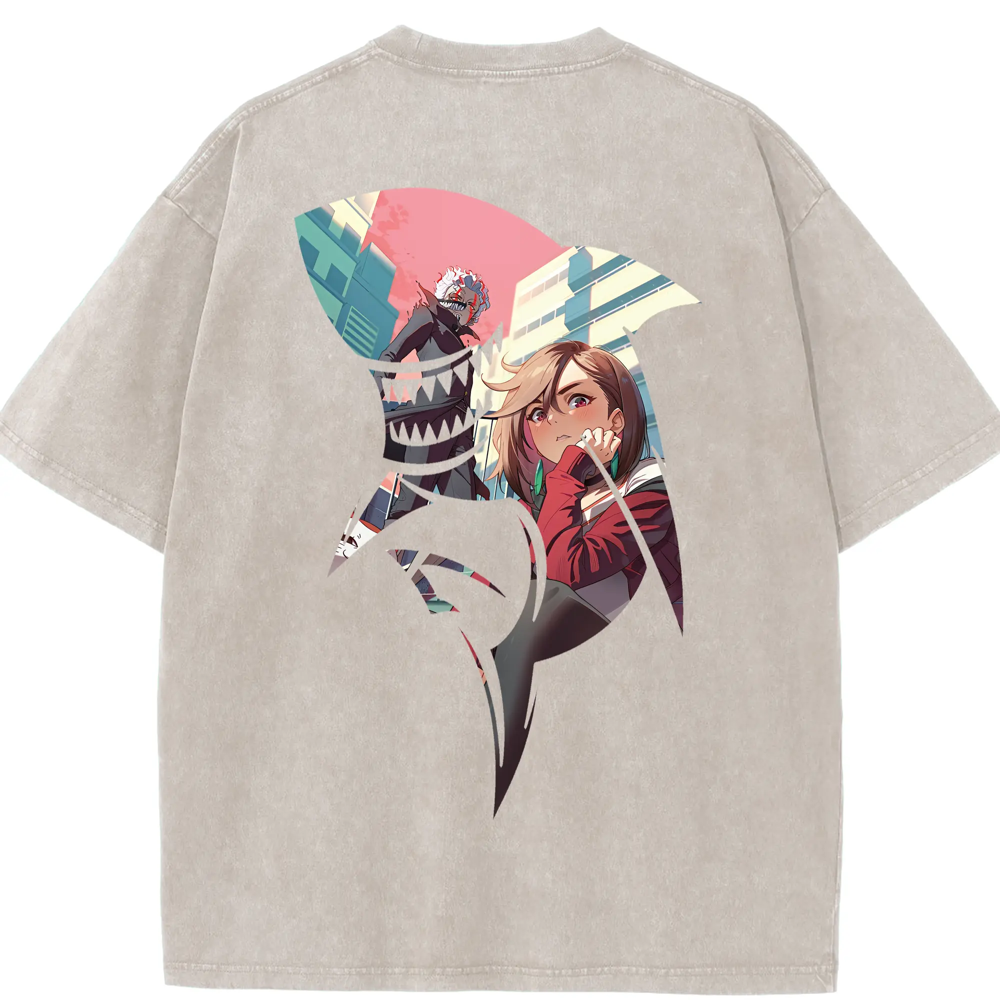 チェンソーマン グッズ,マキマ - 綿100% ヴィンテージ風 半袖Tシャツ ・ 背面プリント ・ 柔らか肌触り ・ 通気性 快適 ・ スポーツ カジュアル 外出用