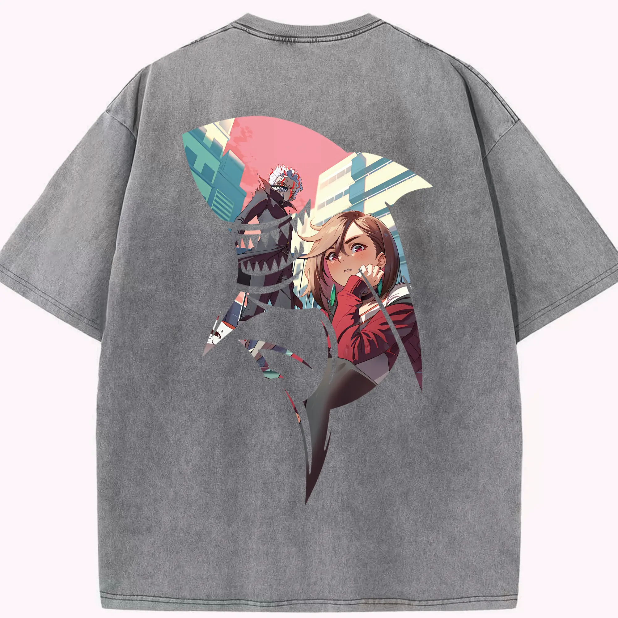 怪獣8号 グッズ,日比野カフカ - 綿100% ヴィンテージ風 半袖Tシャツ ・ 背面プリント ・ 柔らか肌触り ・ 通気性 快適 ・ スポーツ カジュアル 外出用