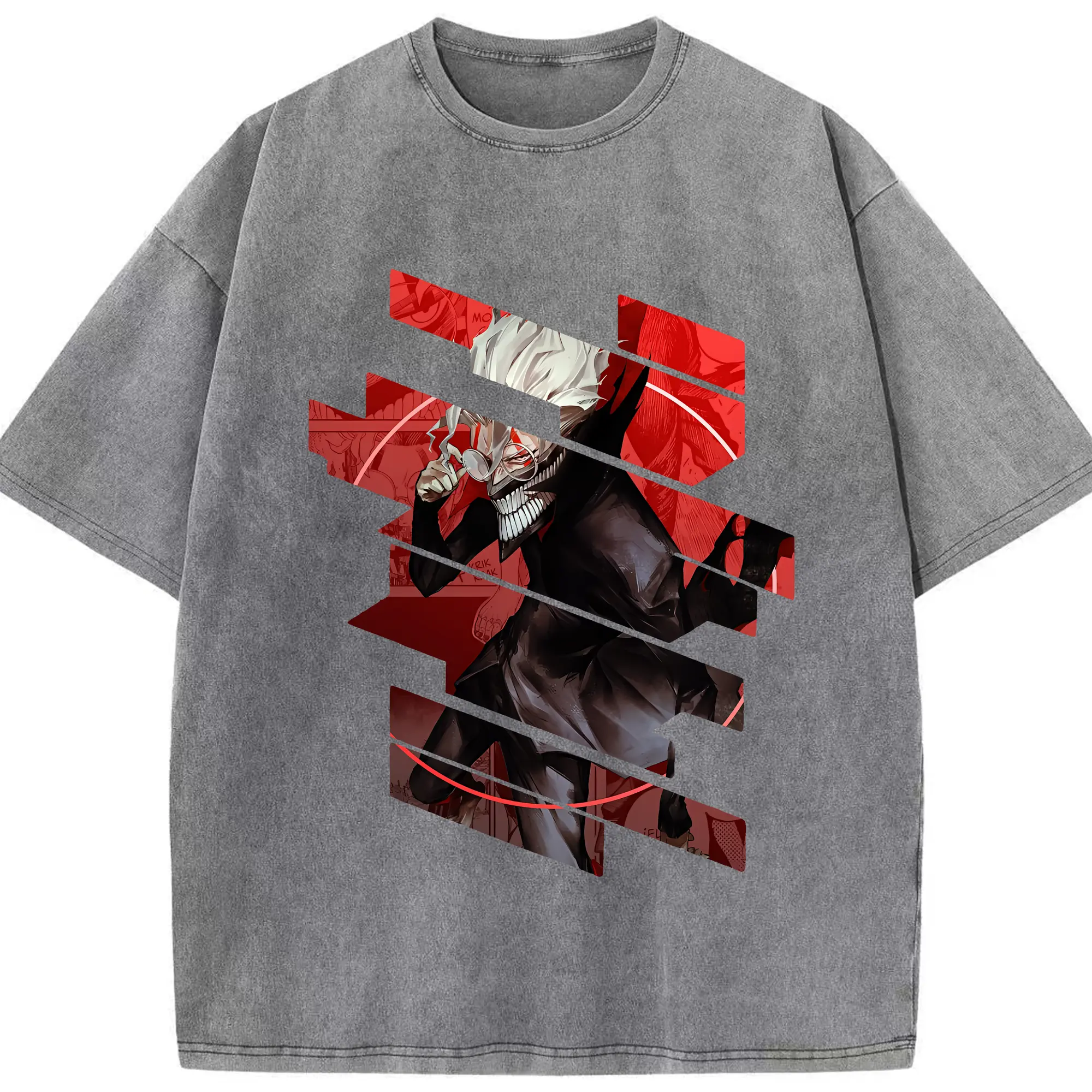 ダンダダン グッズ,オカルン - 綿100% ヴィンテージ風 半袖Tシャツ ・ 背面プリント ・ 柔らか肌触り ・ 通気性 快適 ・ スポーツ カジュアル 外出用