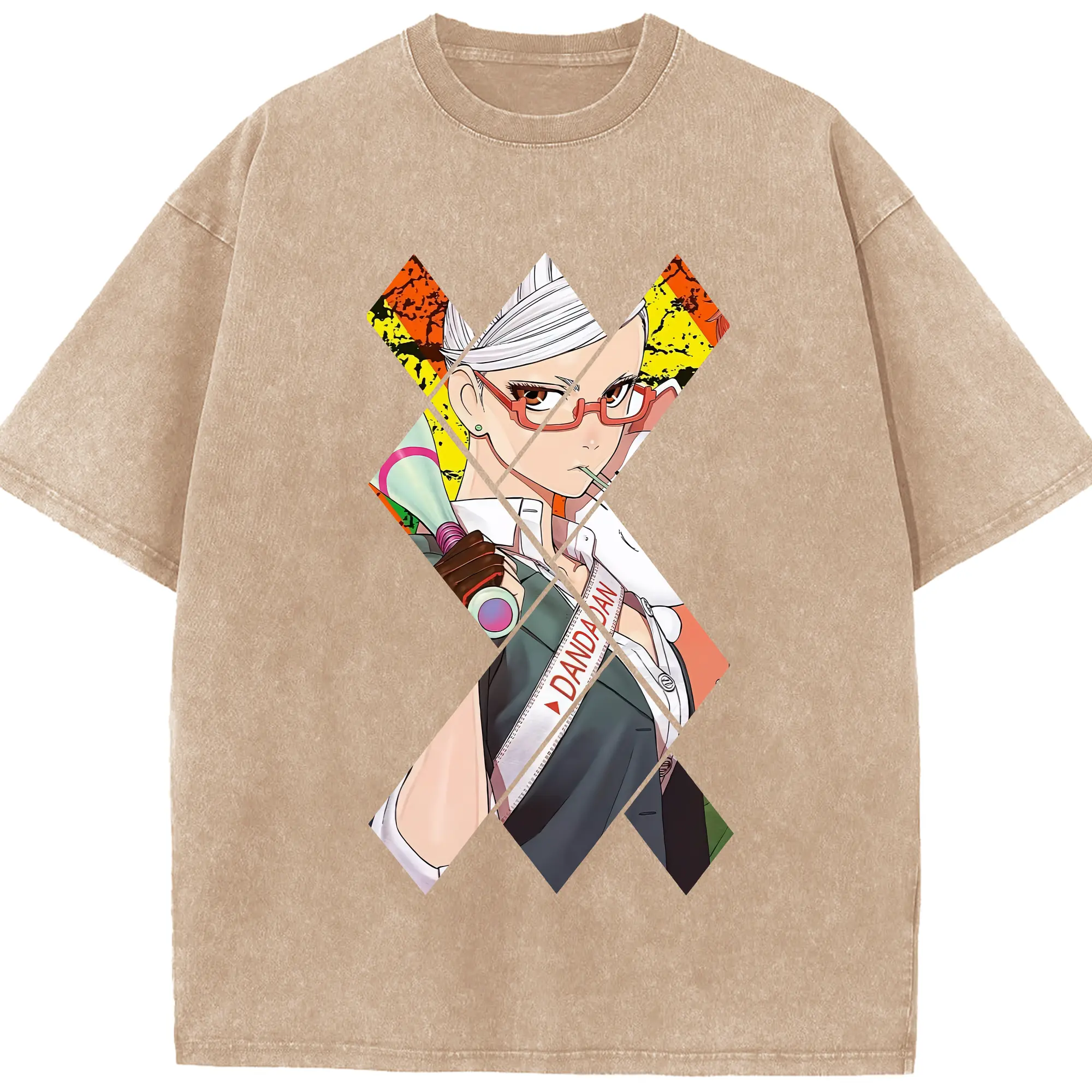 ダンダダン グッズ,綾瀬星子 - 綿100% ヴィンテージ風 半袖Tシャツ ・ 背面プリント ・ 柔らか肌触り ・ 通気性 快適 ・ スポーツ カジュアル 外出用