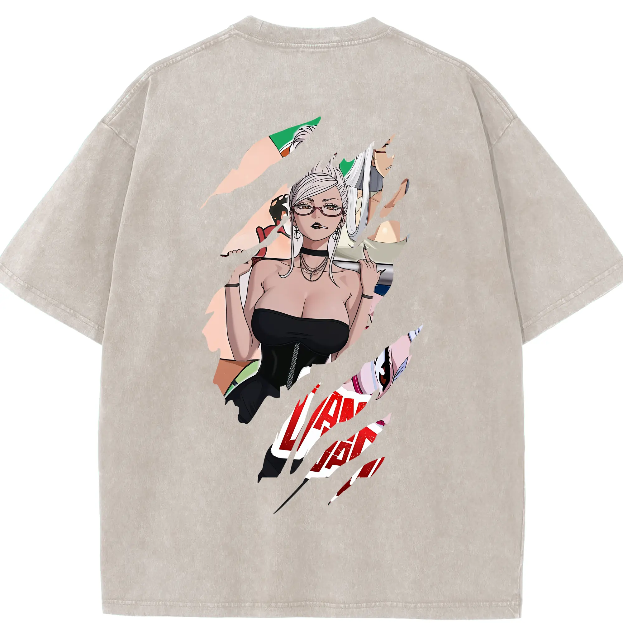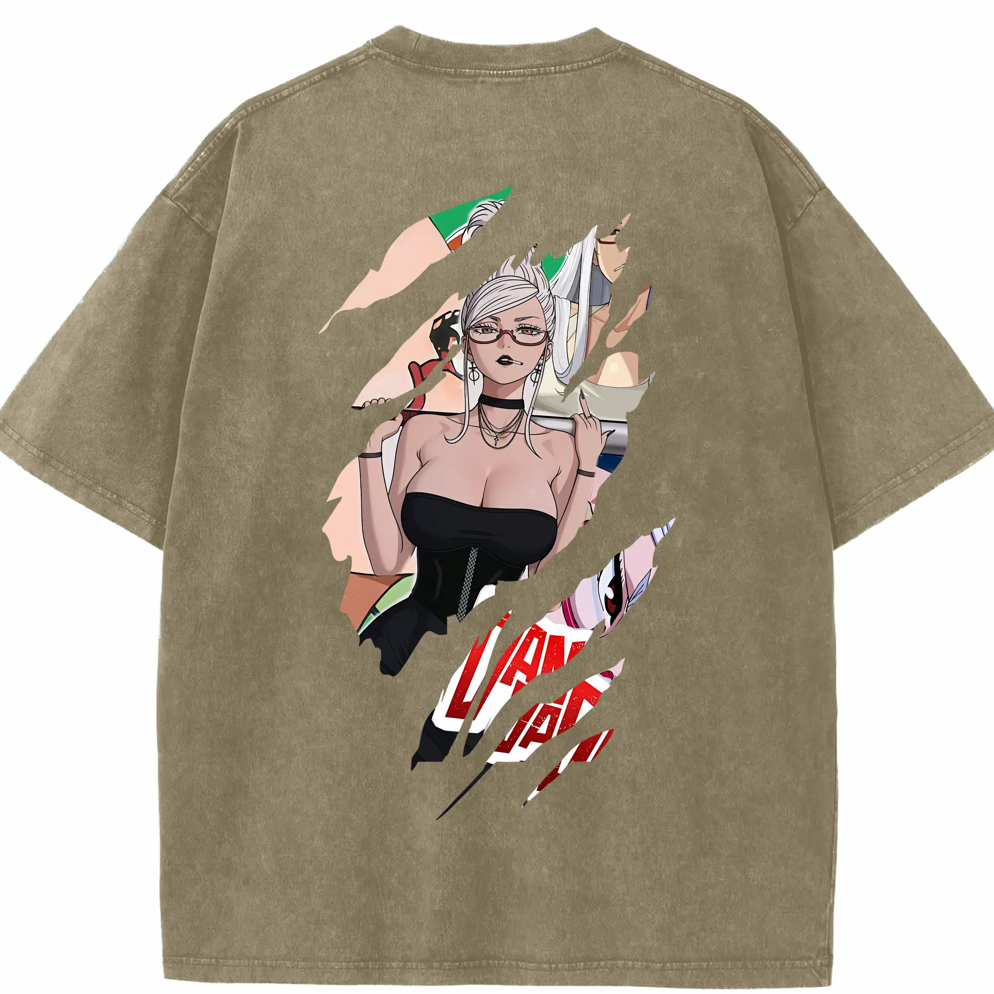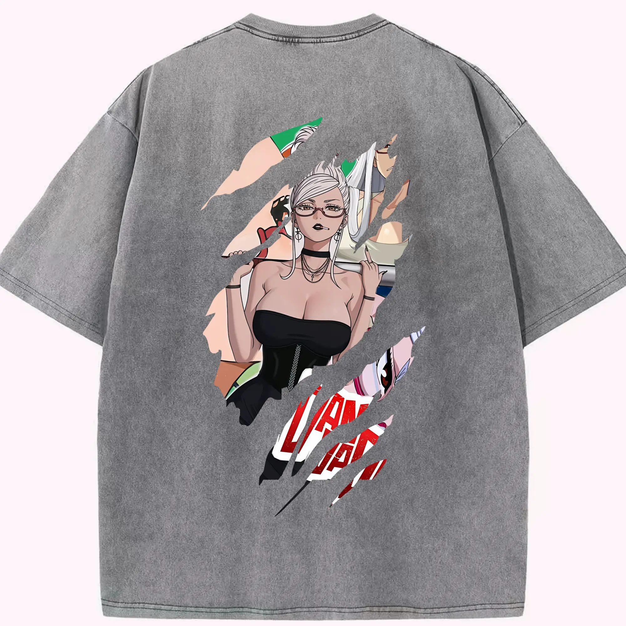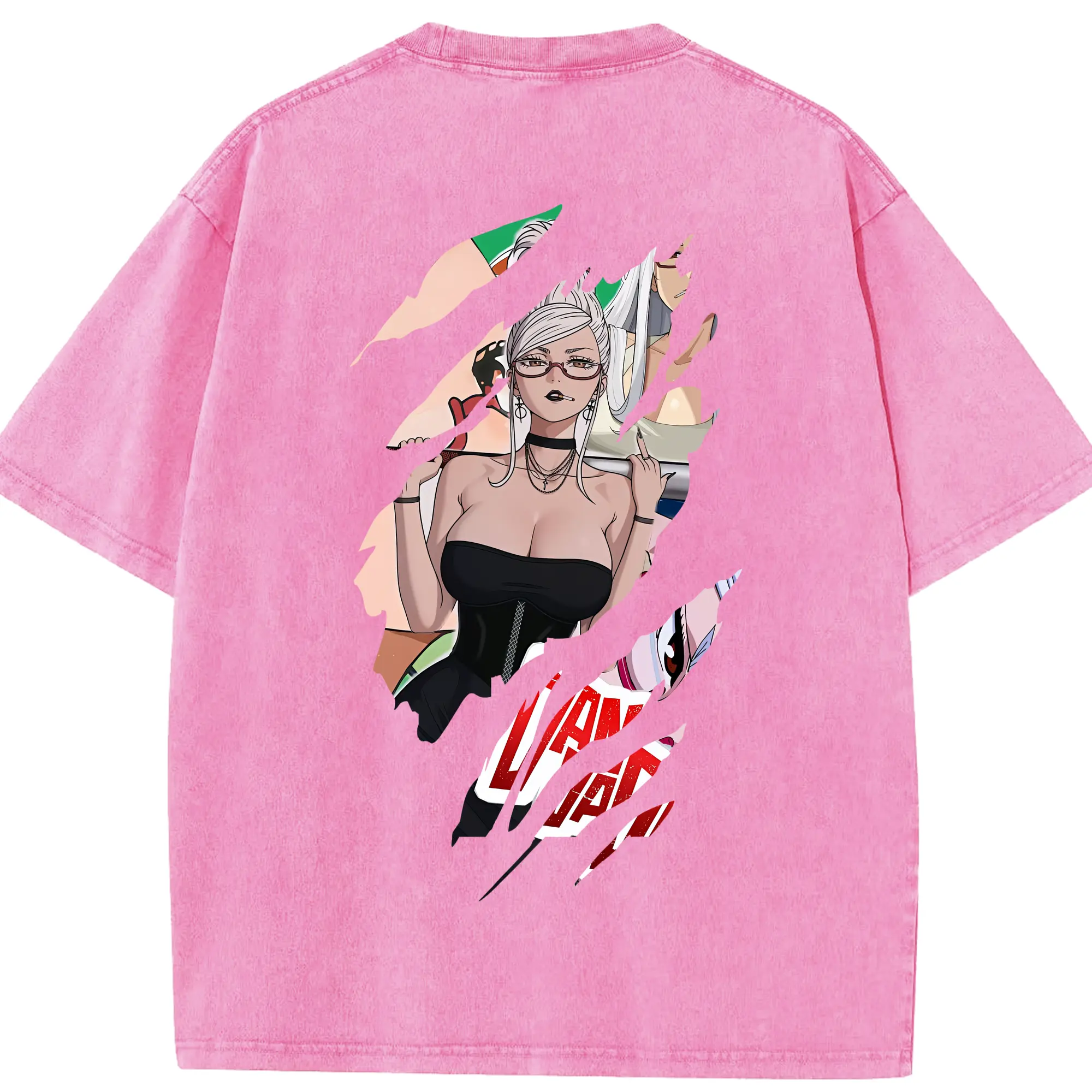 フェアリーテイル グッズ エルザ・スカーレット - 綿100% ヴィンテージ風 半袖Tシャツ ・ 背面プリント ・ 柔らか肌触り ・ 通気性 快適 ・ スポーツ カジュアル 外出用