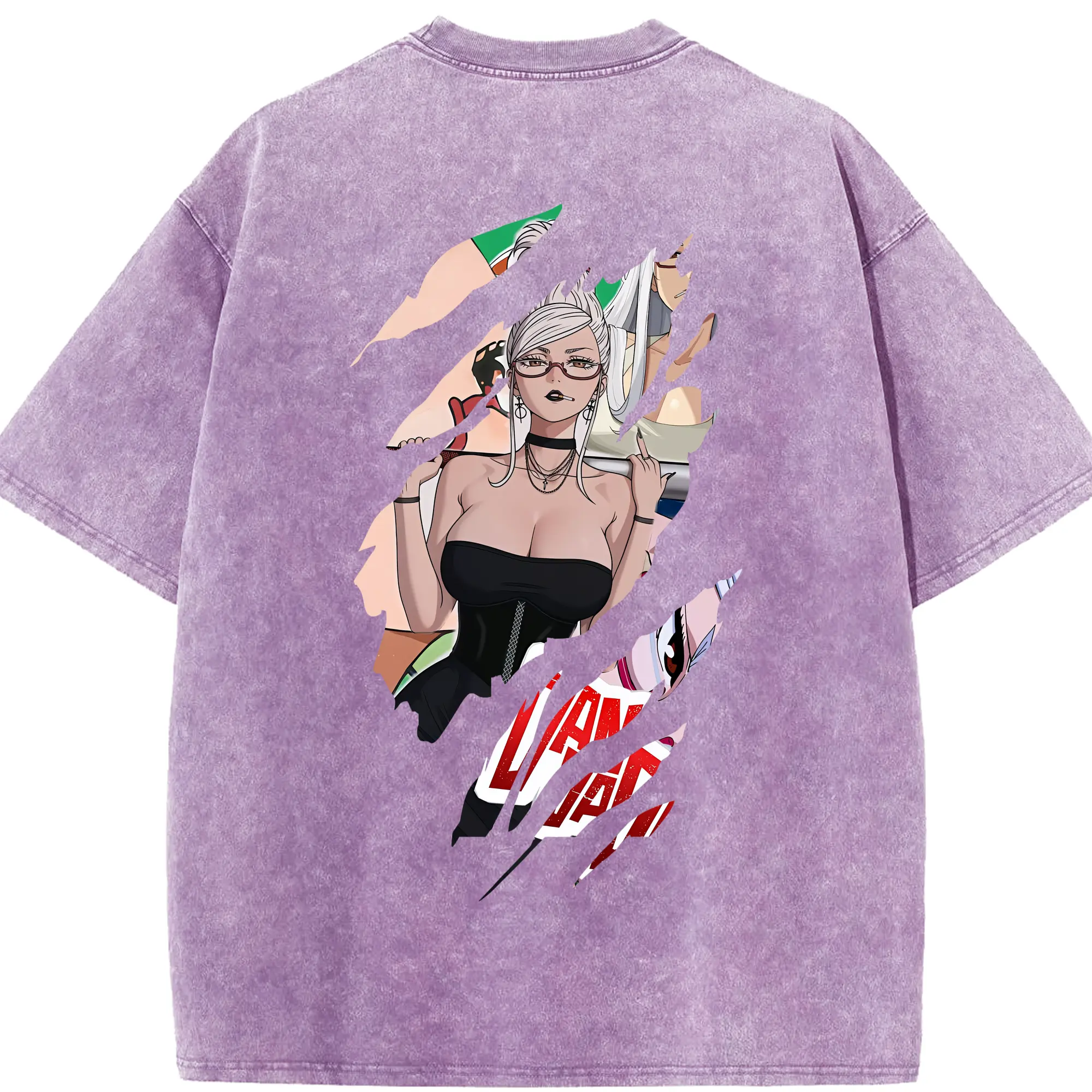 ブリーチ グッズ 朽木 ルキア - 綿100% ヴィンテージ風 半袖Tシャツ ・ 背面プリント ・ 柔らか肌触り ・ 通気性 快適 ・ スポーツ カジュアル 外出用
