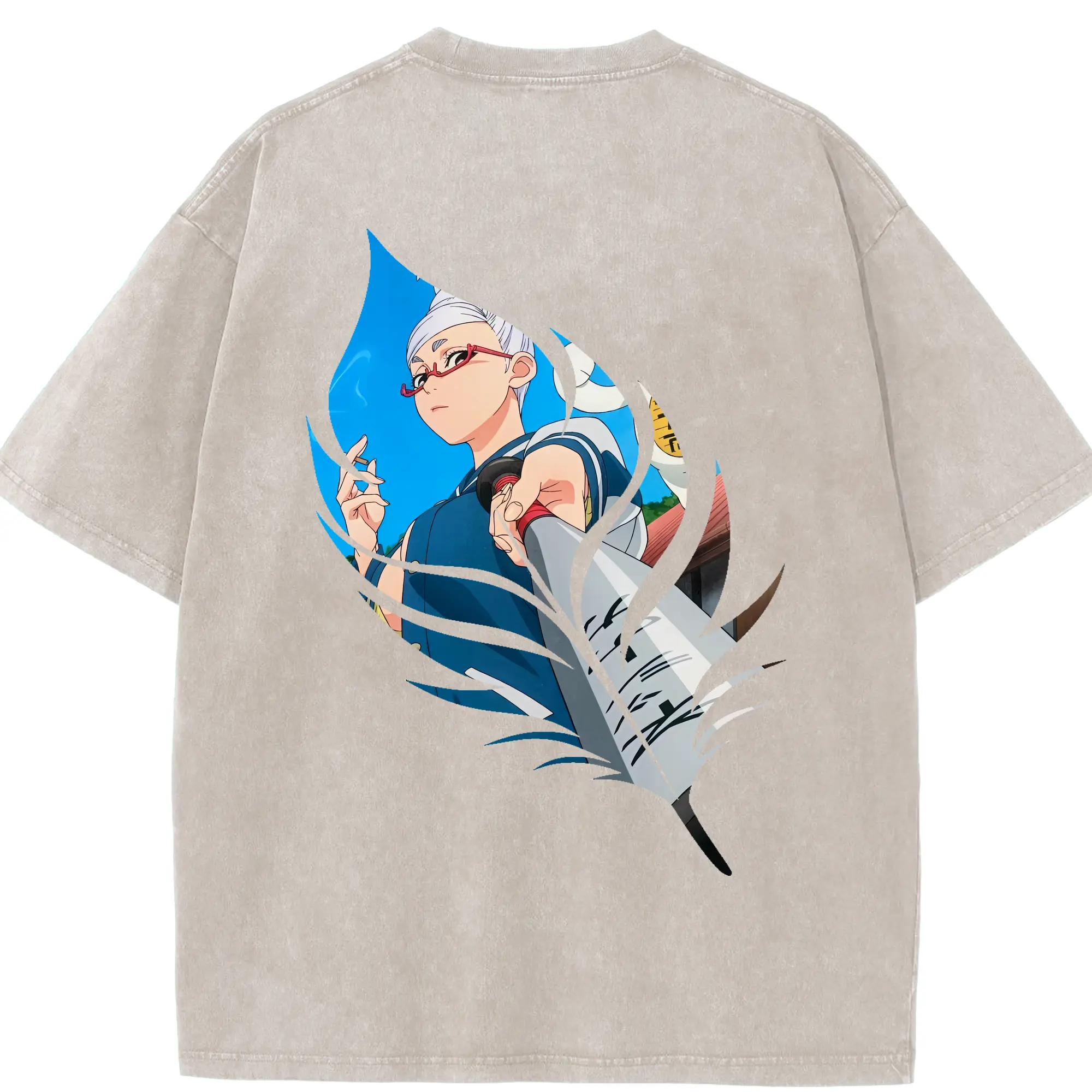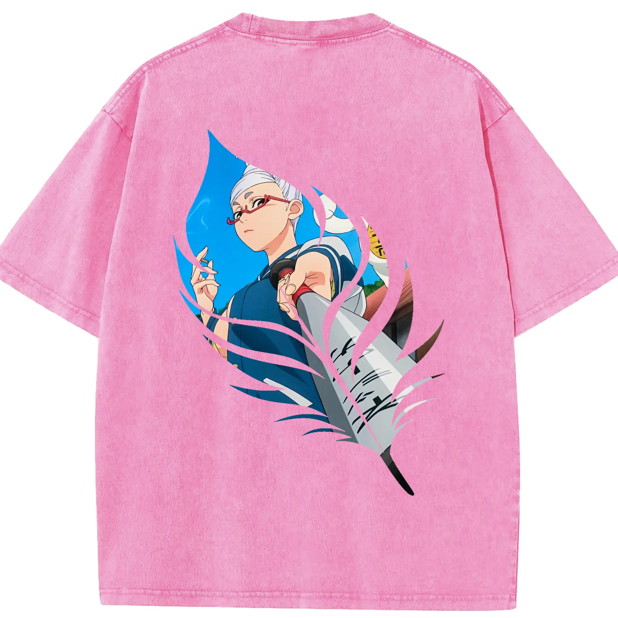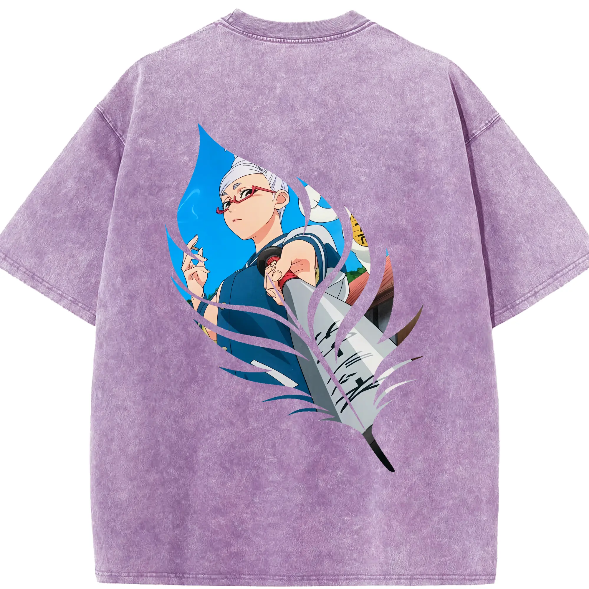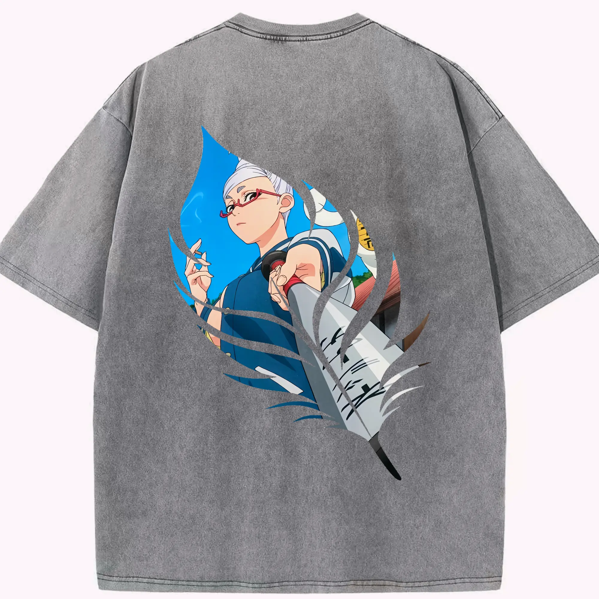 銀魂 グッズ 神楽 - 綿100% ヴィンテージ風 半袖Tシャツ ・ 背面プリント ・ 柔らか肌触り ・ 通気性 快適 ・ スポーツ カジュアル 外出用