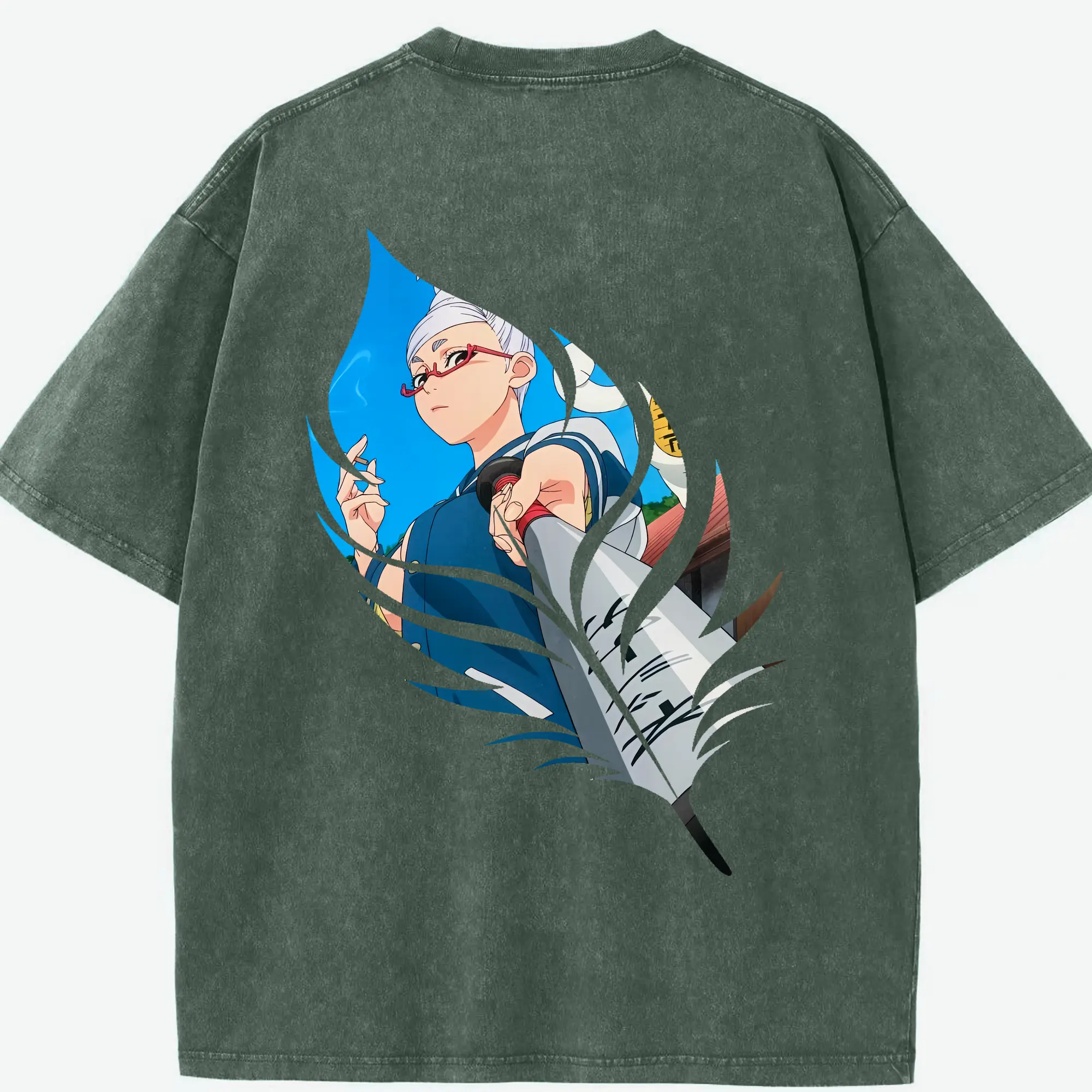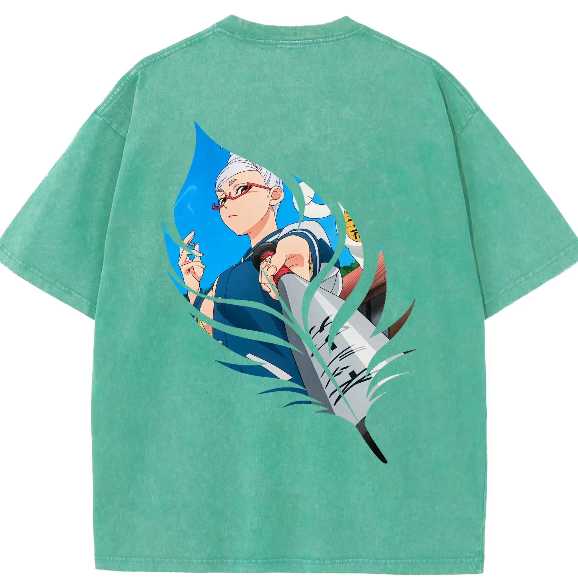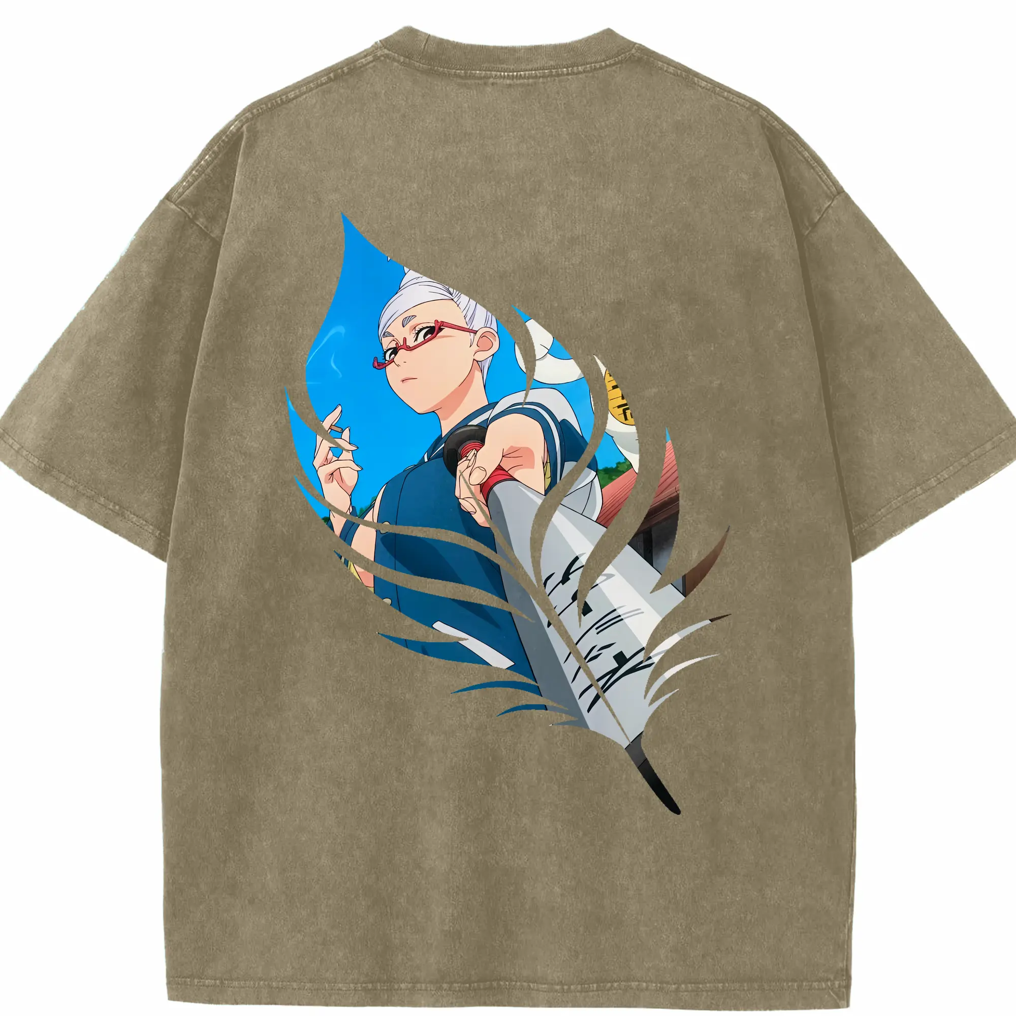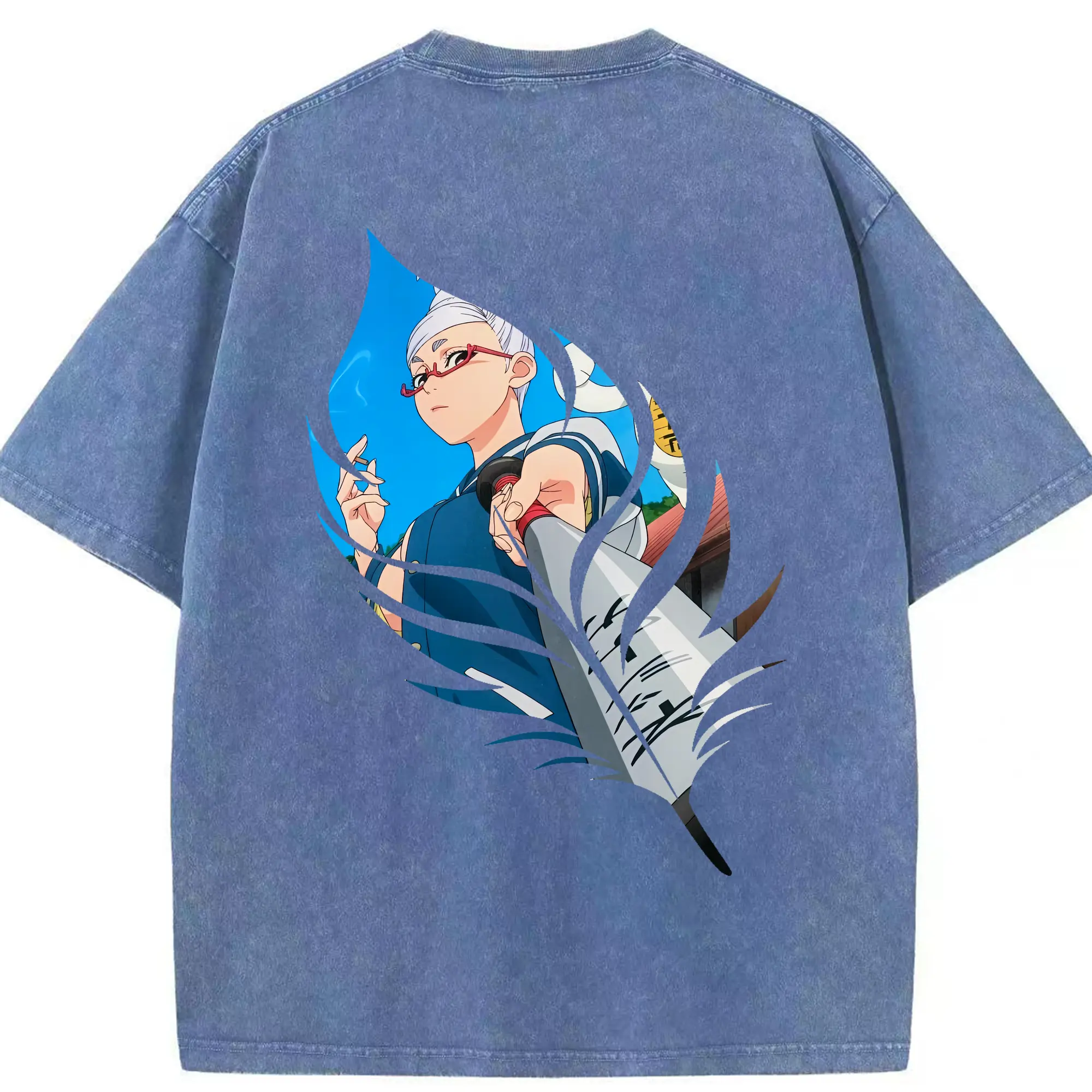 銀魂 グッズ 神楽 - 綿100% ヴィンテージ風 半袖Tシャツ ・ 背面プリント ・ 柔らか肌触り ・ 通気性 快適 ・ スポーツ カジュアル 外出用