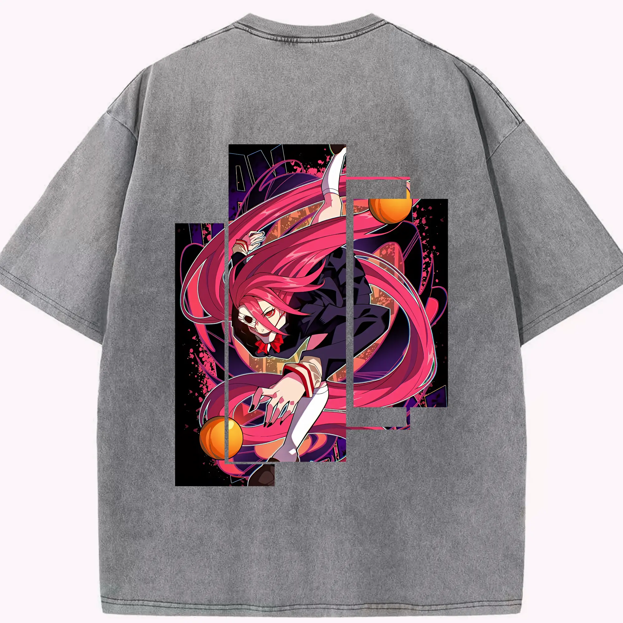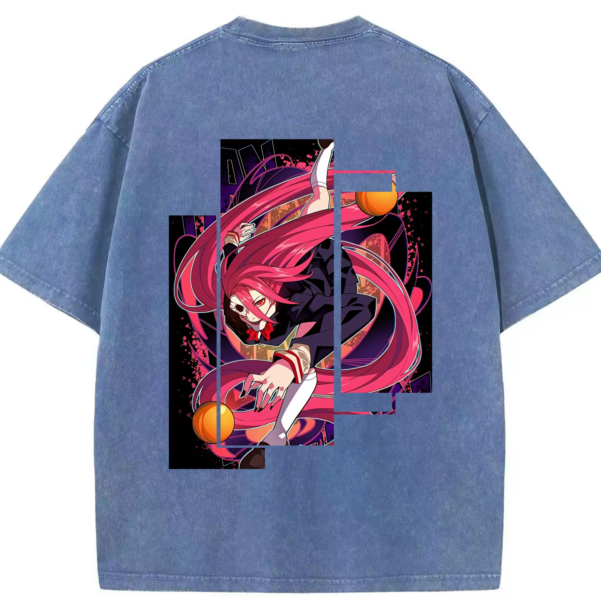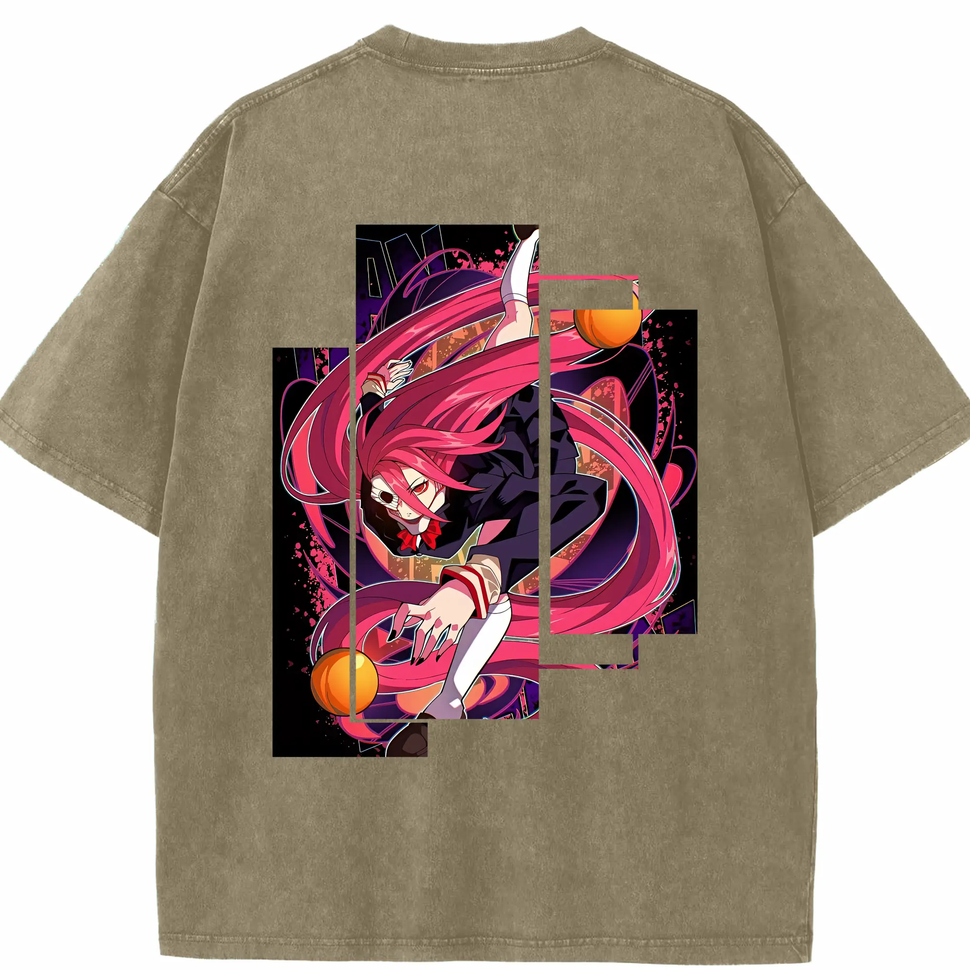 ブルーアーカイブ グッズ 早瀬 ユウカ - 綿100% ヴィンテージ風 半袖Tシャツ ・ 背面プリント ・ 柔らか肌触り ・ 通気性 快適 ・ スポーツ カジュアル 外出用