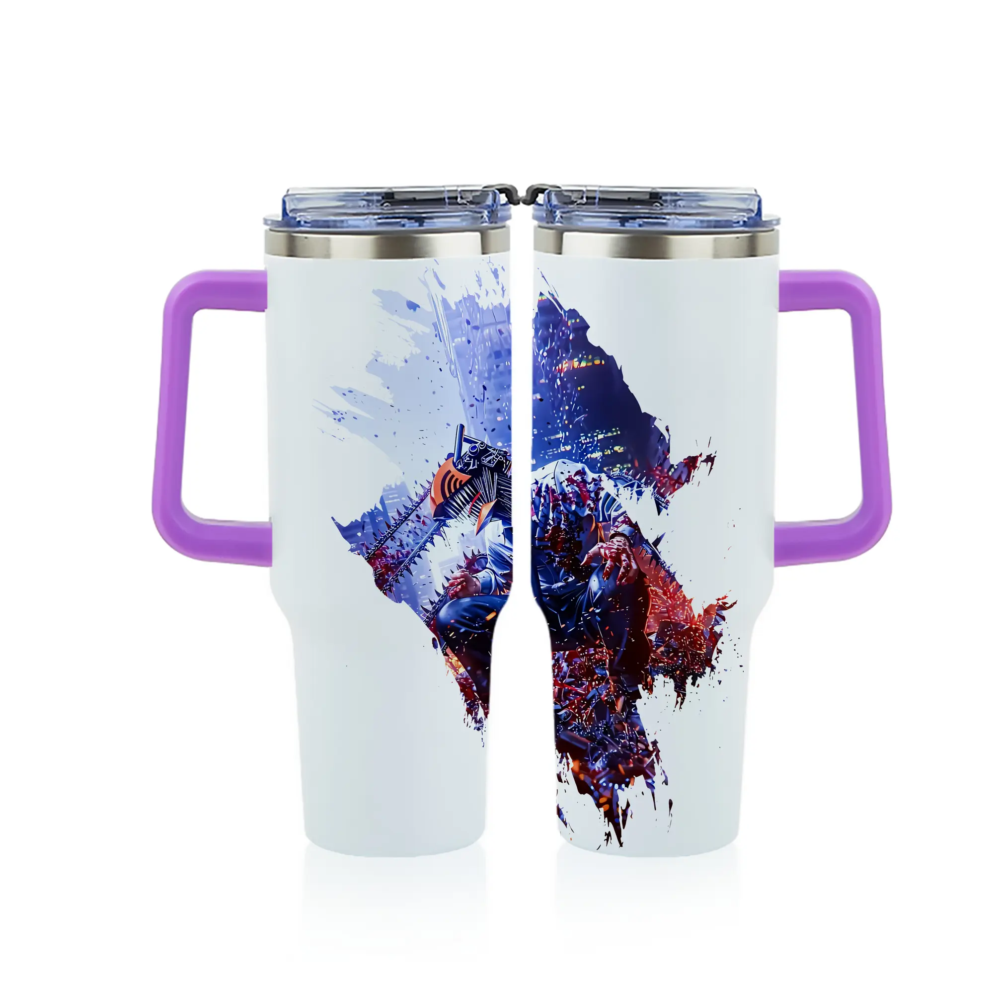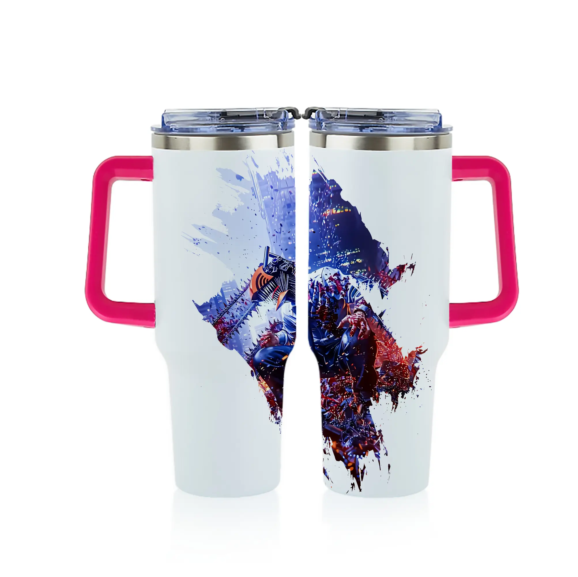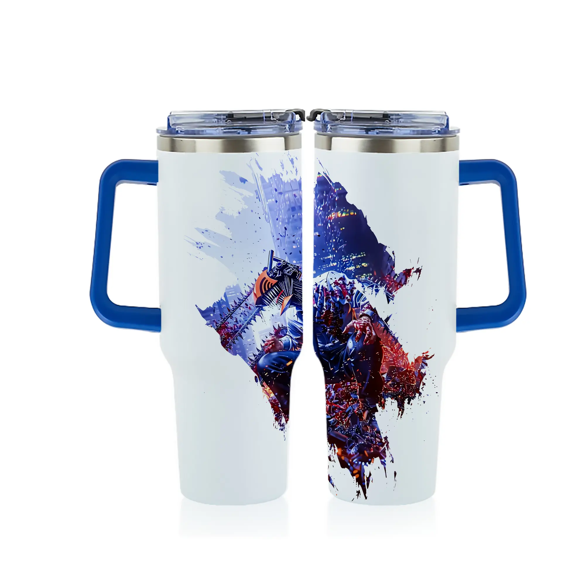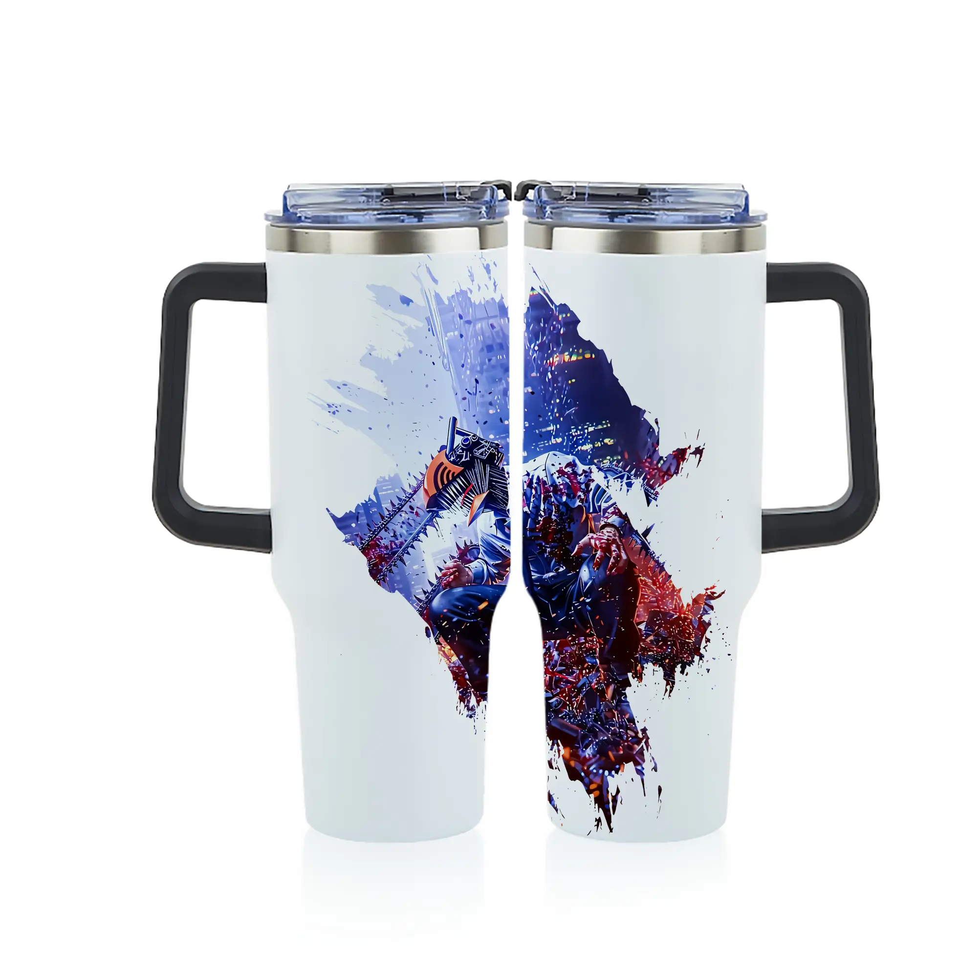 チェンソーマン グッズ,デンジ - 1200mL フルプリント車用タンブラー ・ 304ステンレス 内側 ・ 201ステンレス 外側 ・ 保温 保冷 ・ 通勤 ドライブ アウトドア用