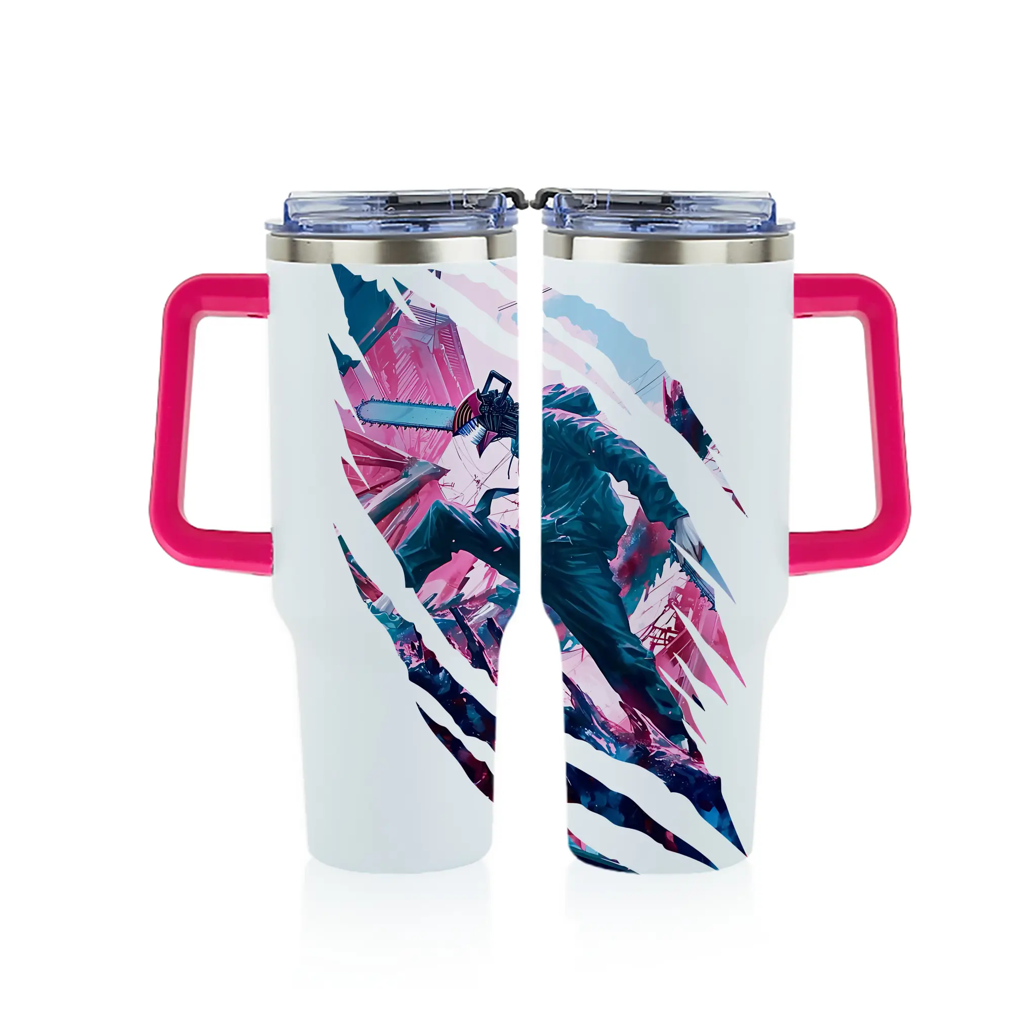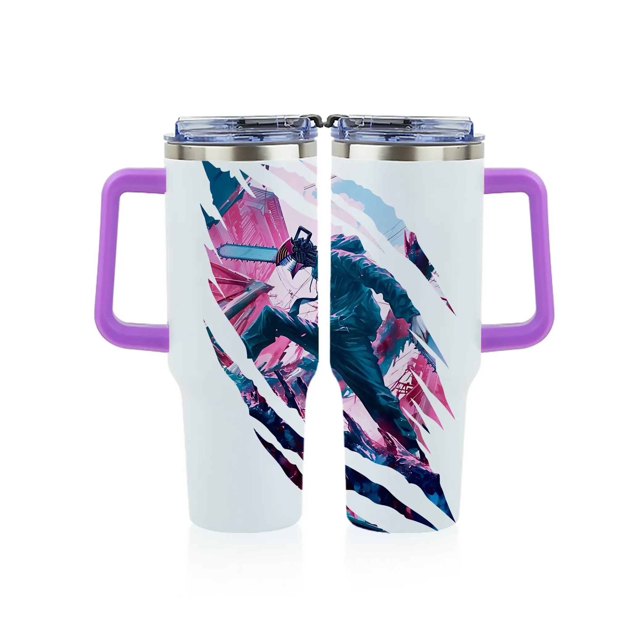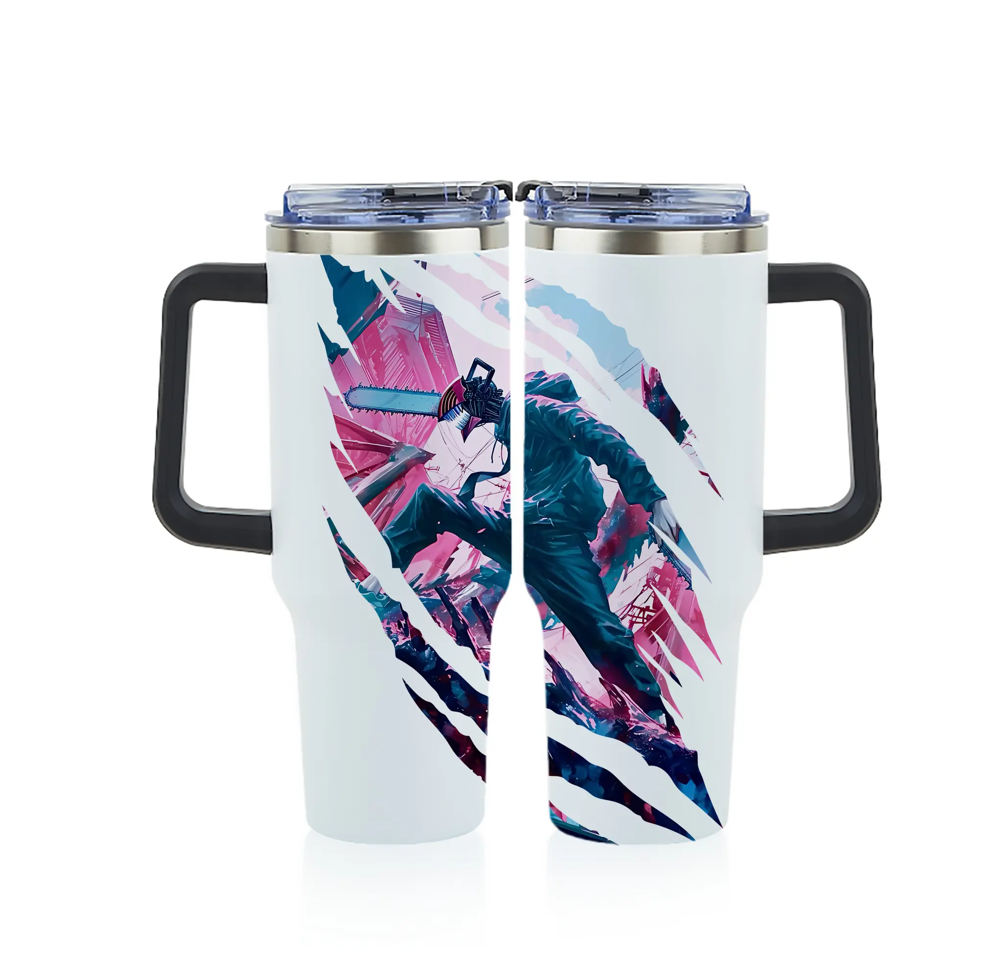 チェンソーマン グッズ,デンジ - 1200mL フルプリント車用タンブラー ・ 304ステンレス 内側 ・ 201ステンレス 外側 ・ 保温 保冷 ・ 通勤 ドライブ アウトドア用