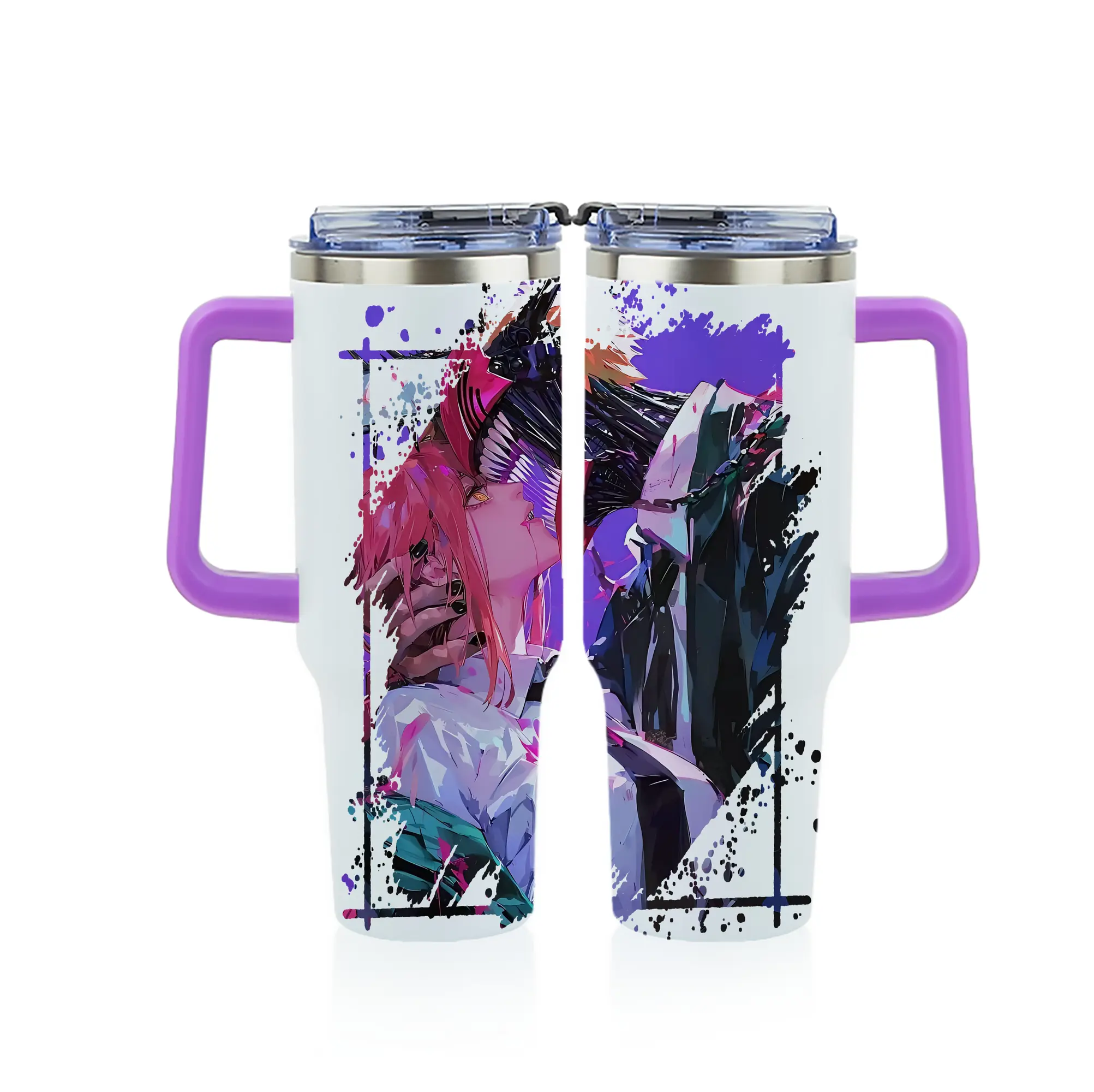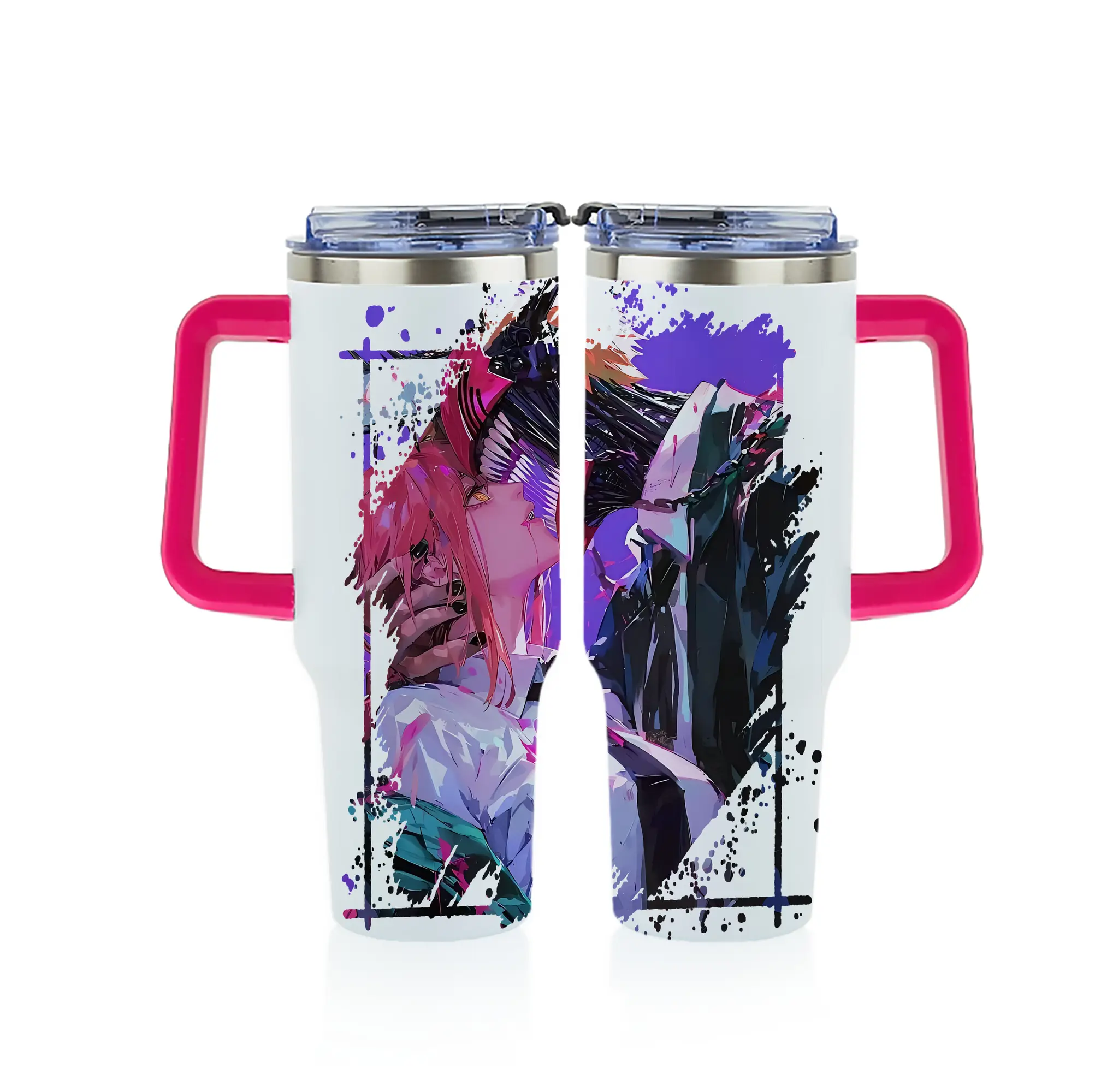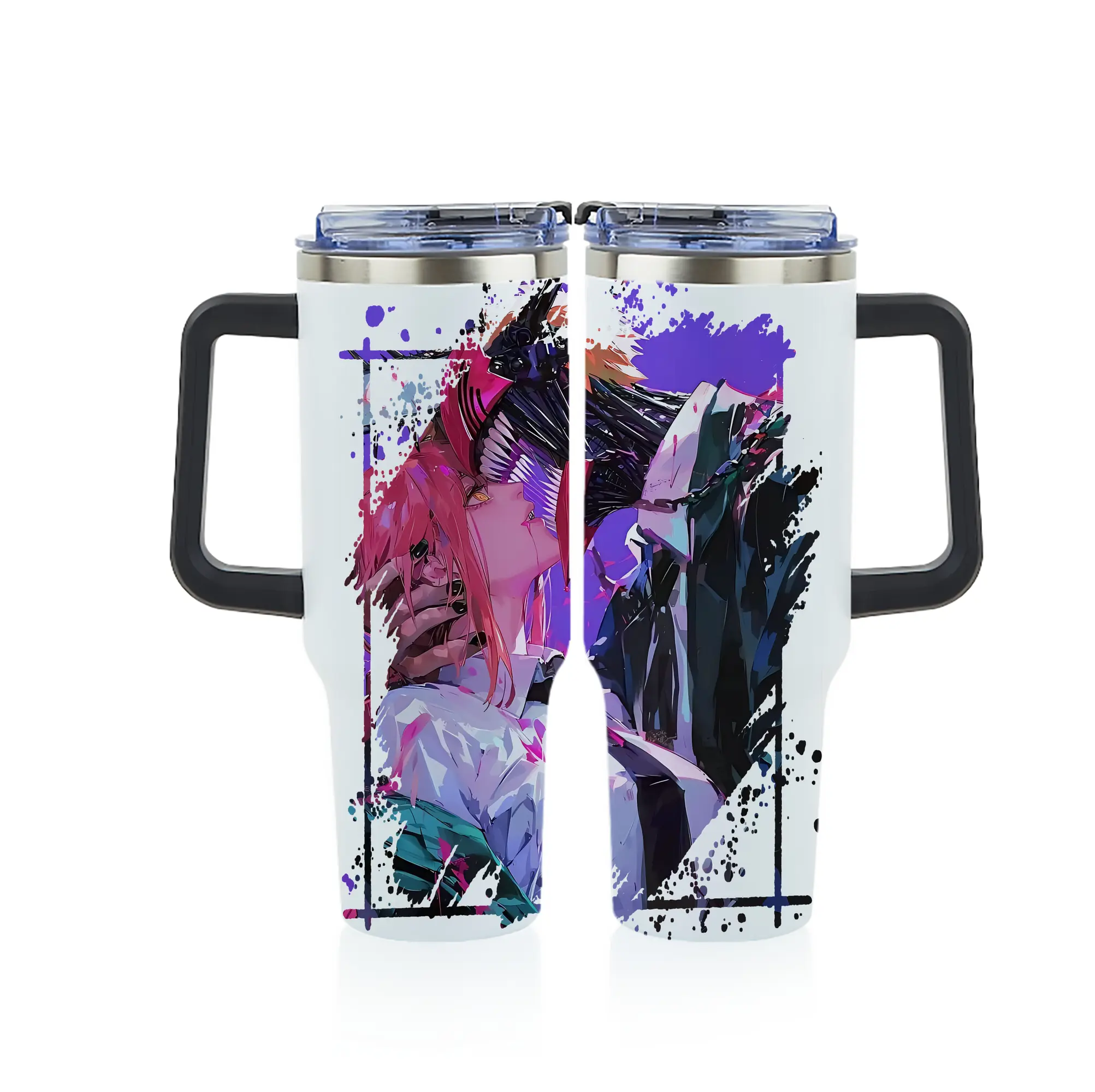 チェンソーマン グッズ,デンジ - 1200mL フルプリント車用タンブラー ・ 304ステンレス 内側 ・ 201ステンレス 外側 ・ 保温 保冷 ・ 通勤 ドライブ アウトドア用
