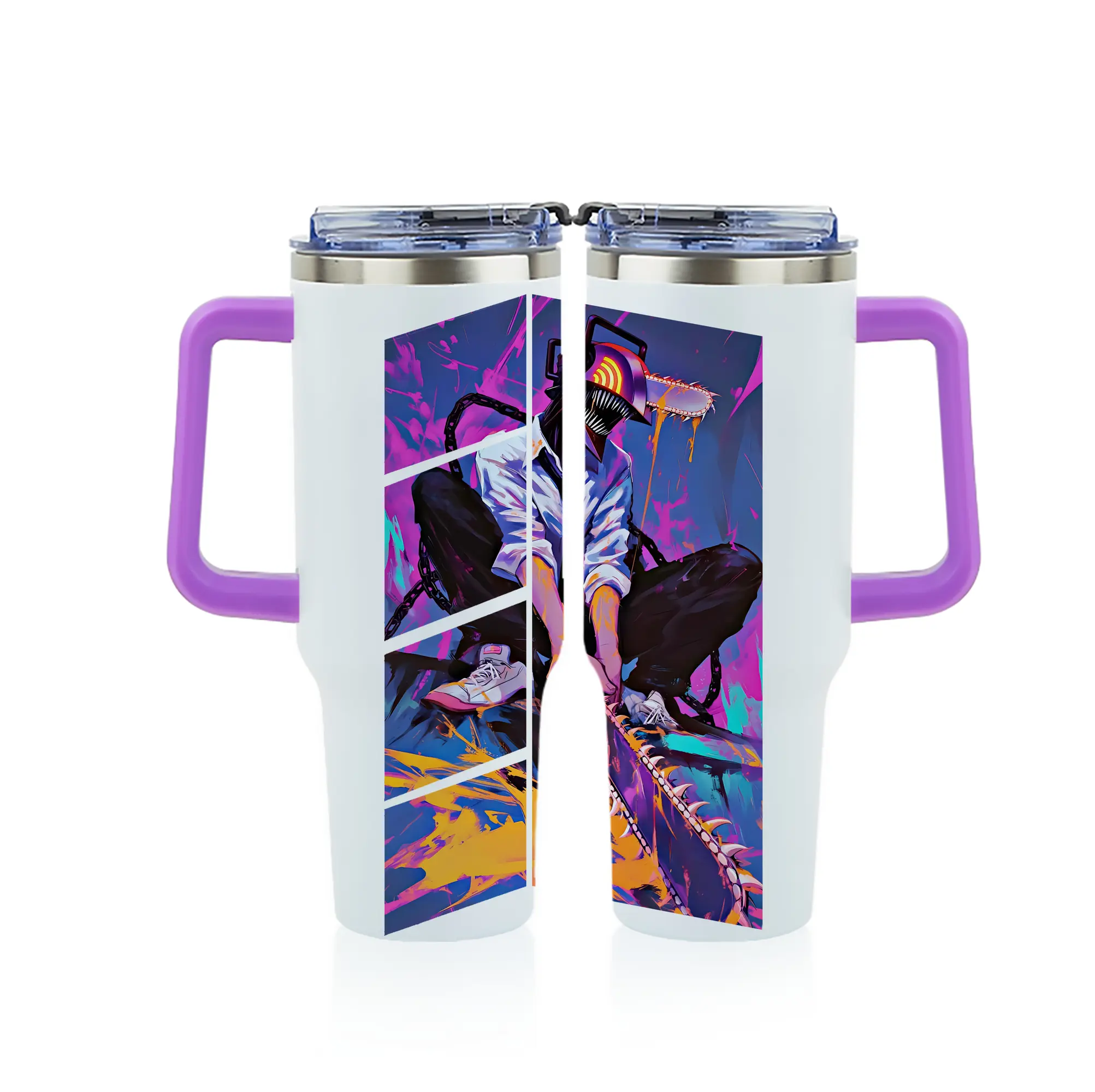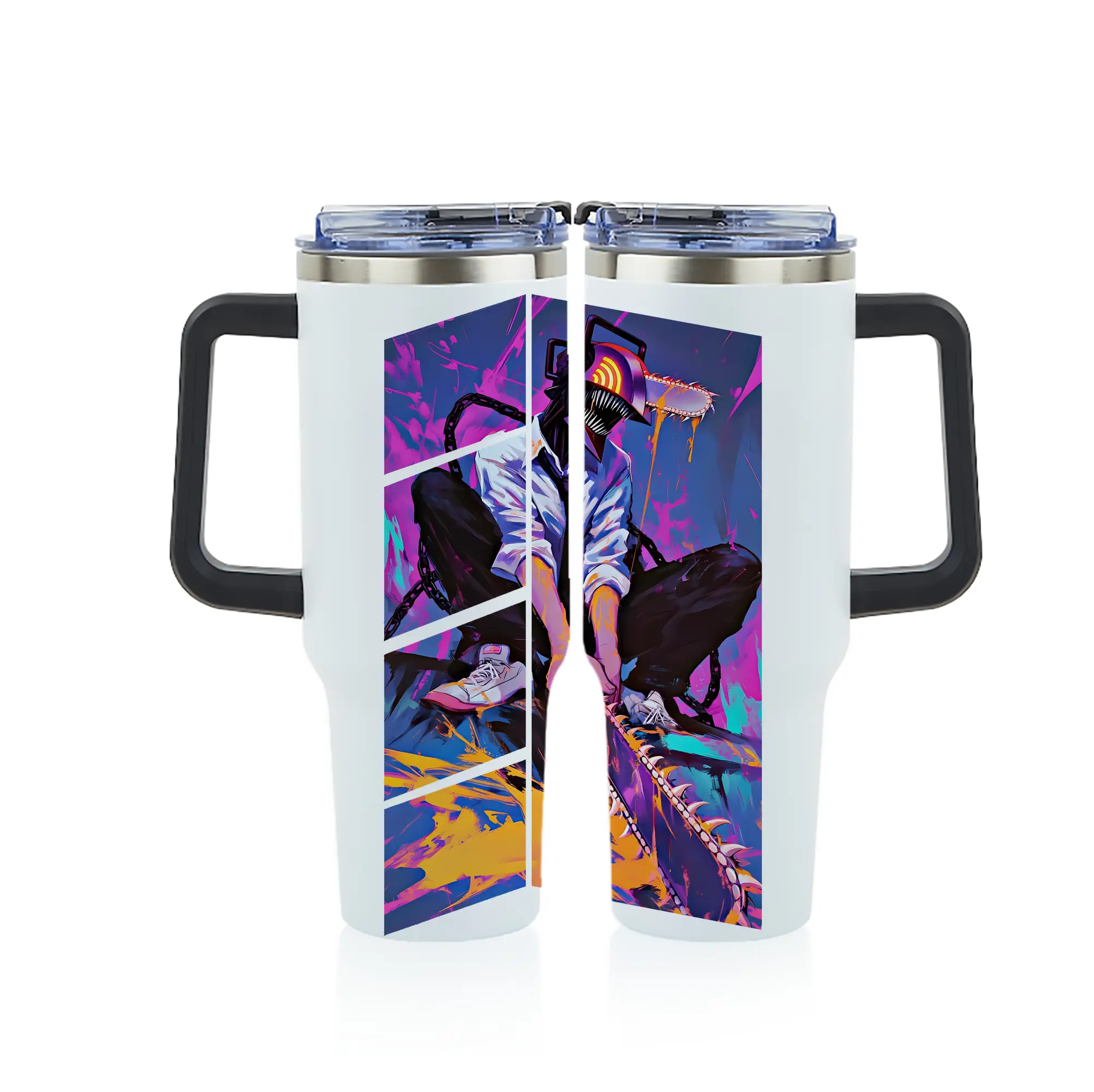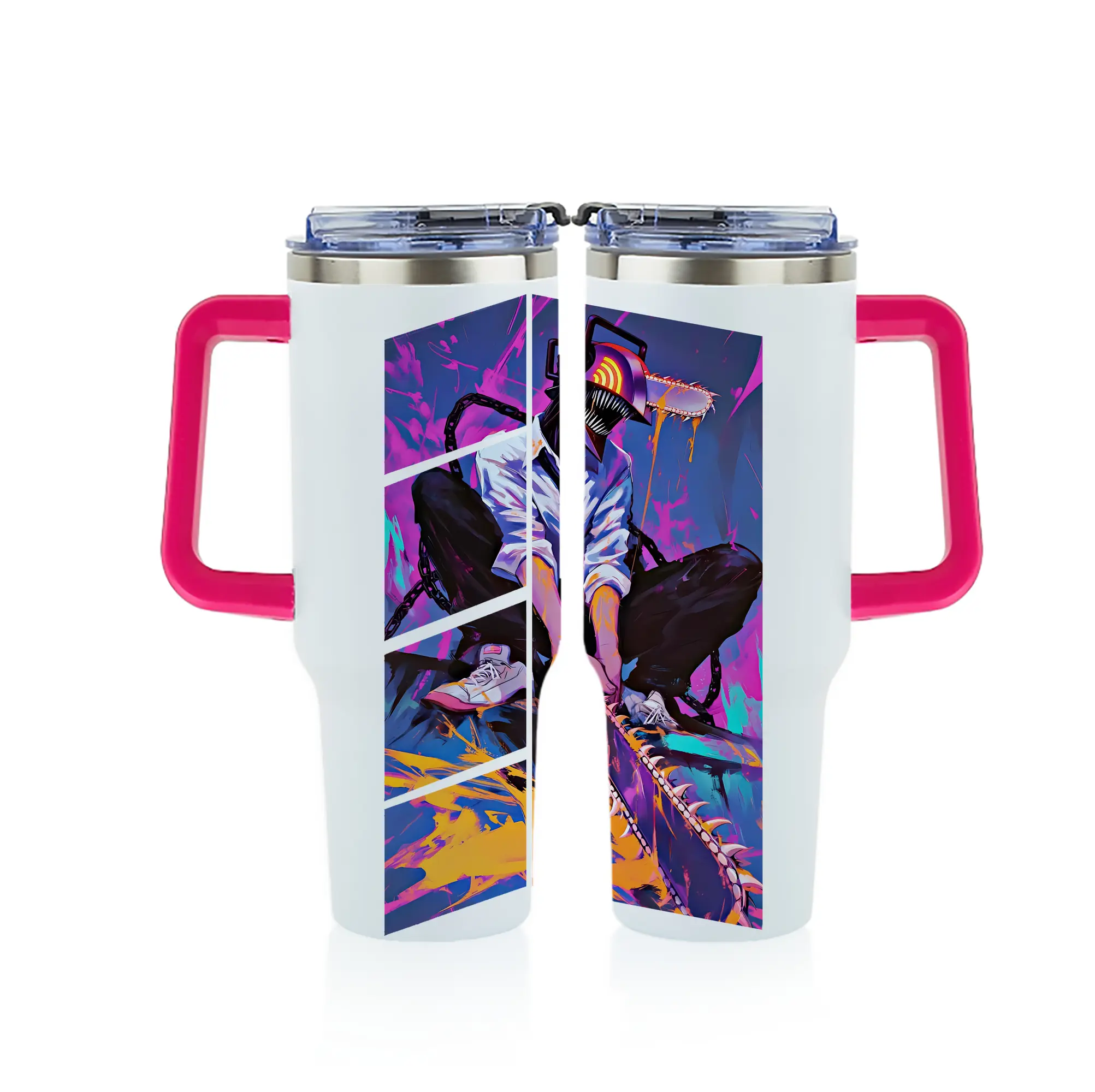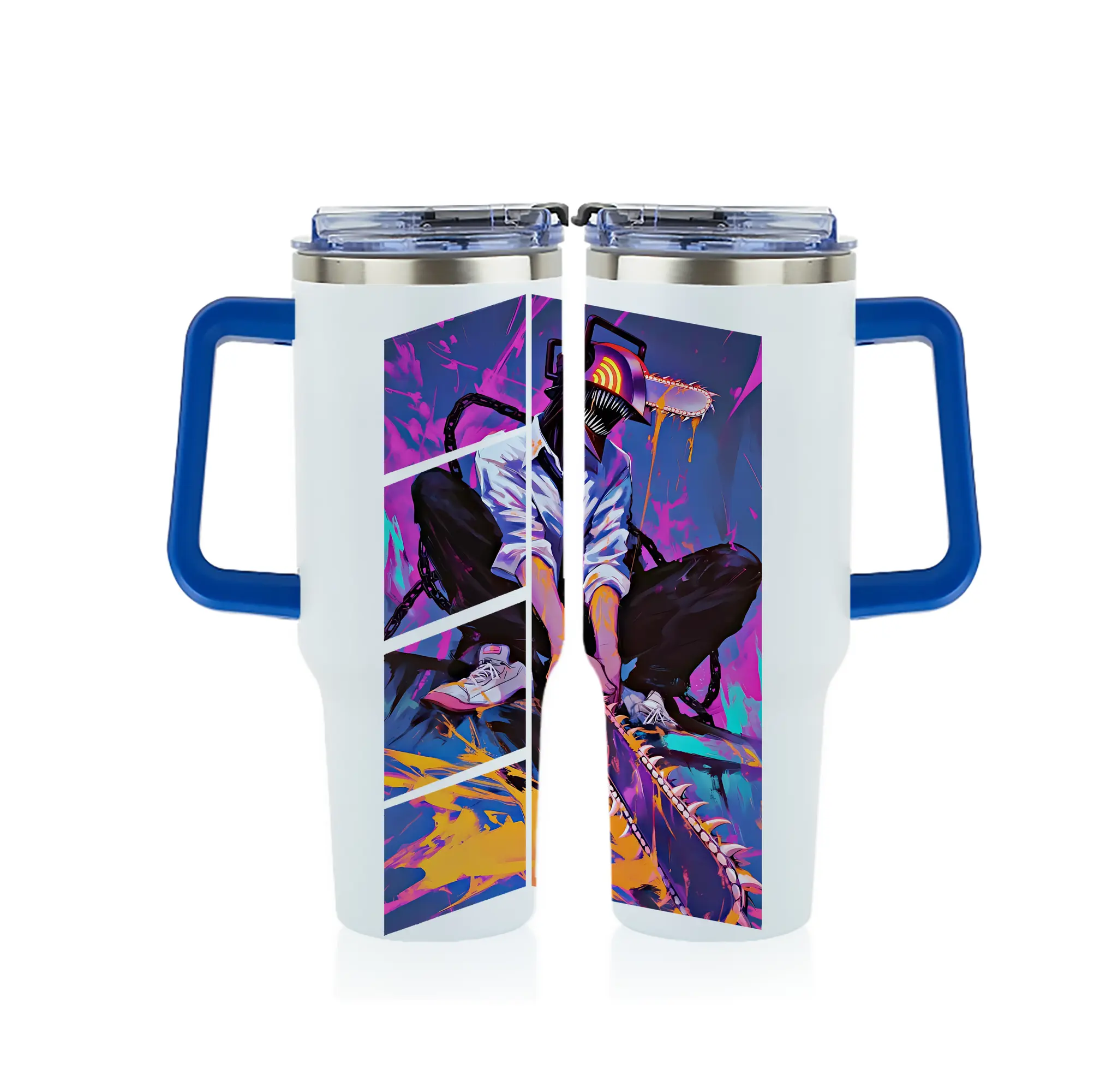 チェンソーマン グッズ,デンジ - 1200mL フルプリント車用タンブラー ・ 304ステンレス 内側 ・ 201ステンレス 外側 ・ 保温 保冷 ・ 通勤 ドライブ アウトドア用