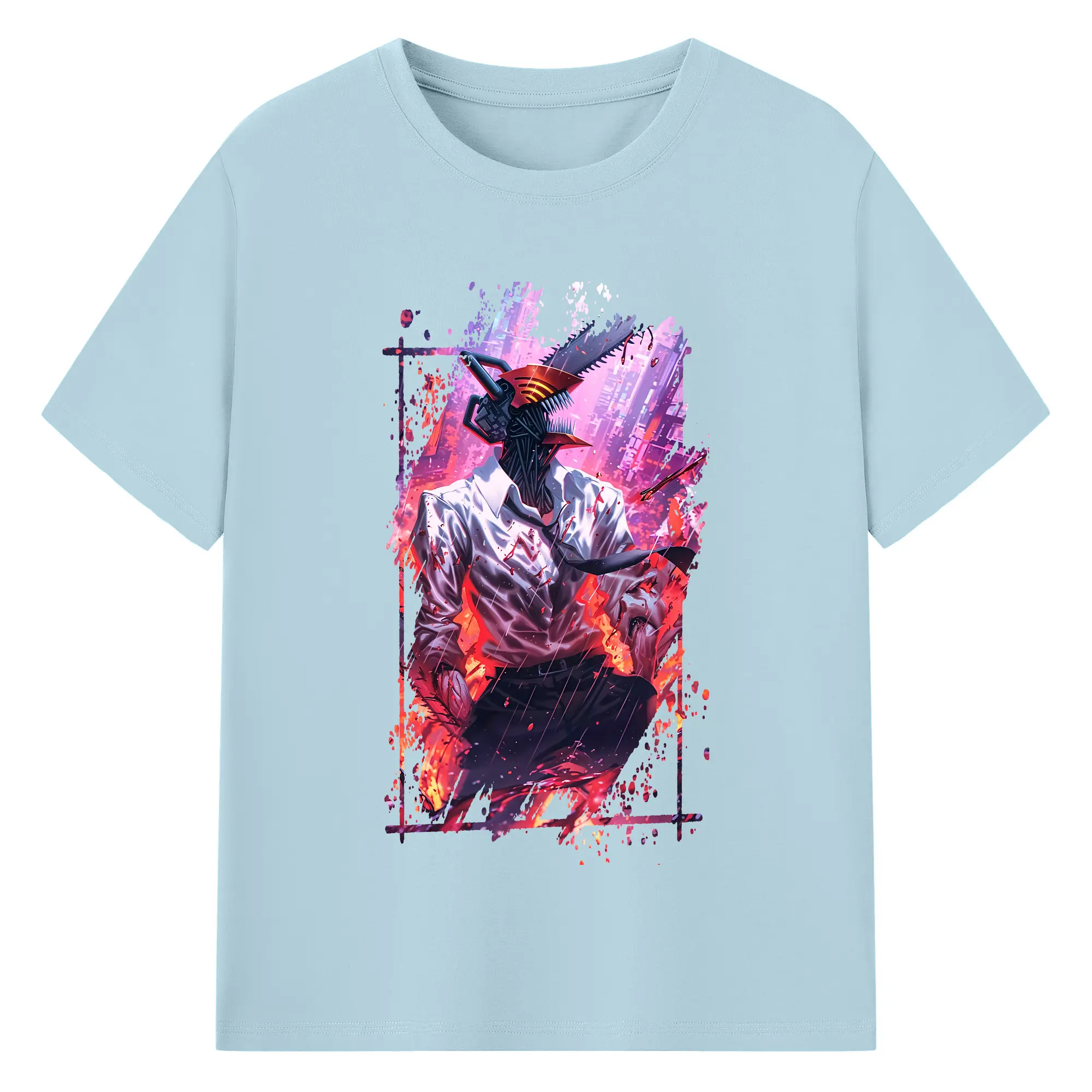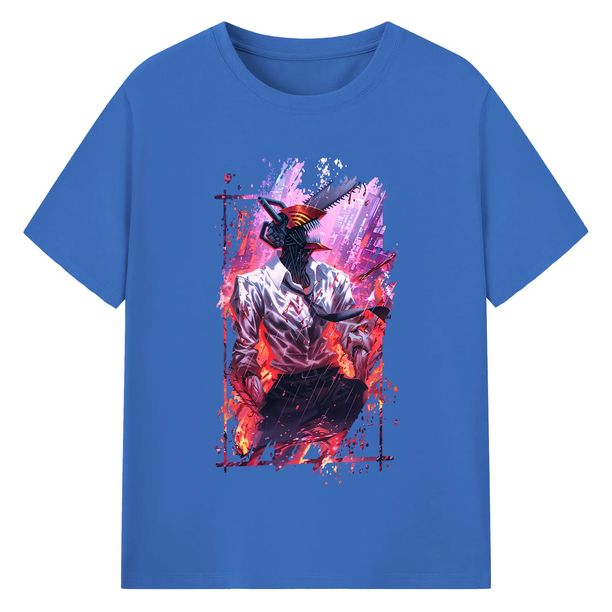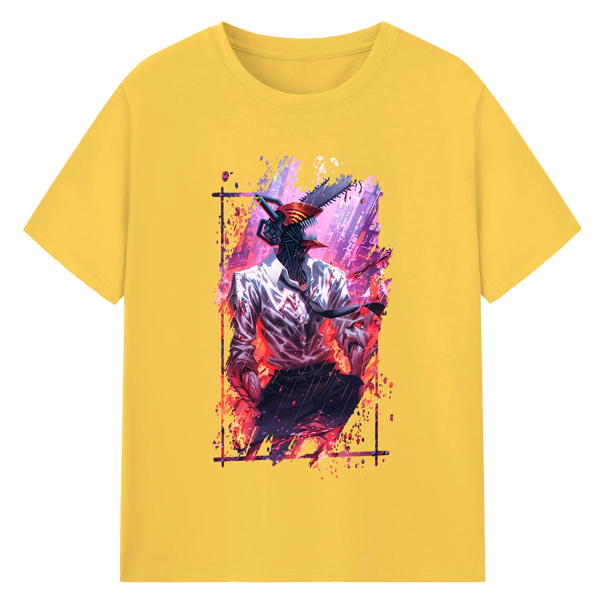 チェンソーマン グッズ,デンジ - 綿100% 半袖Tシャツ ・ バックプリント ・ 快適 通気性 ・ 日常使い 散歩 スポーツ用
