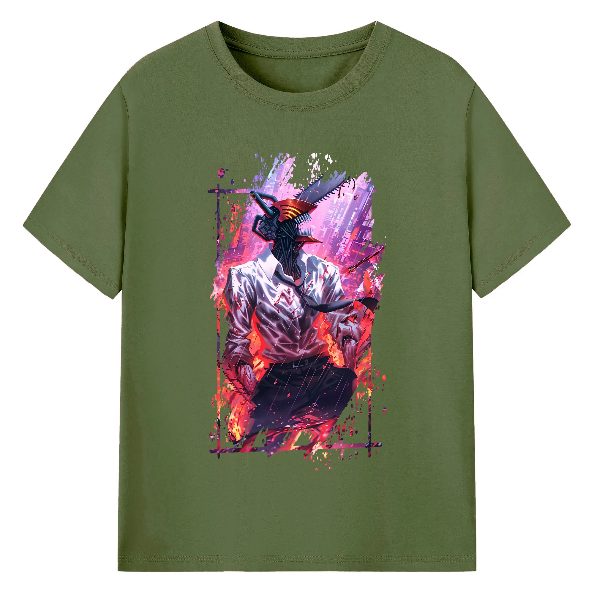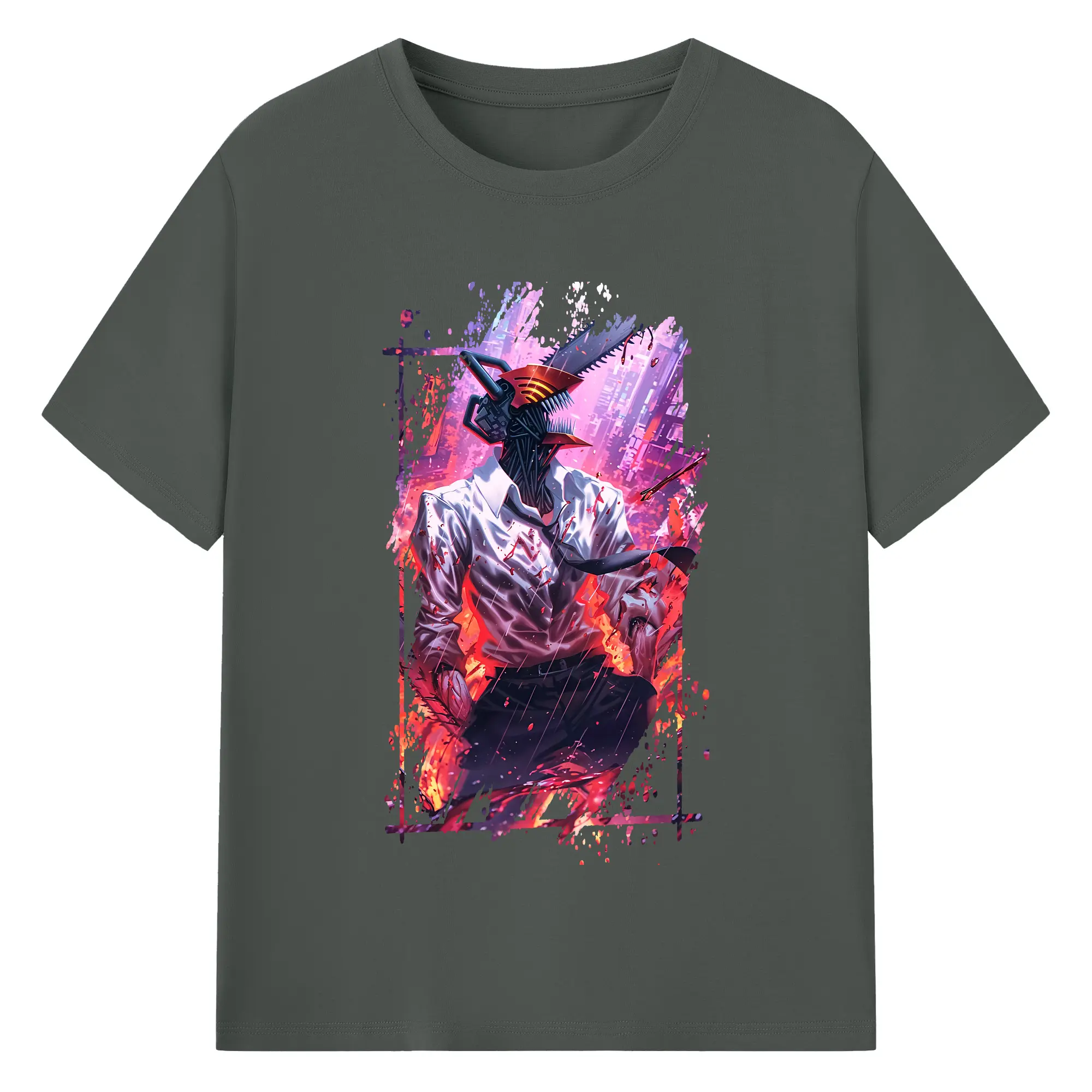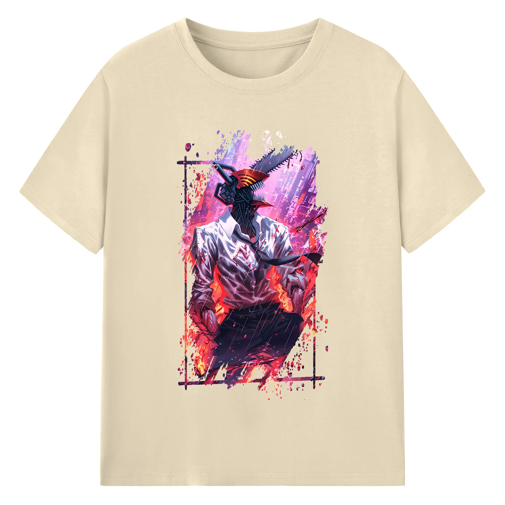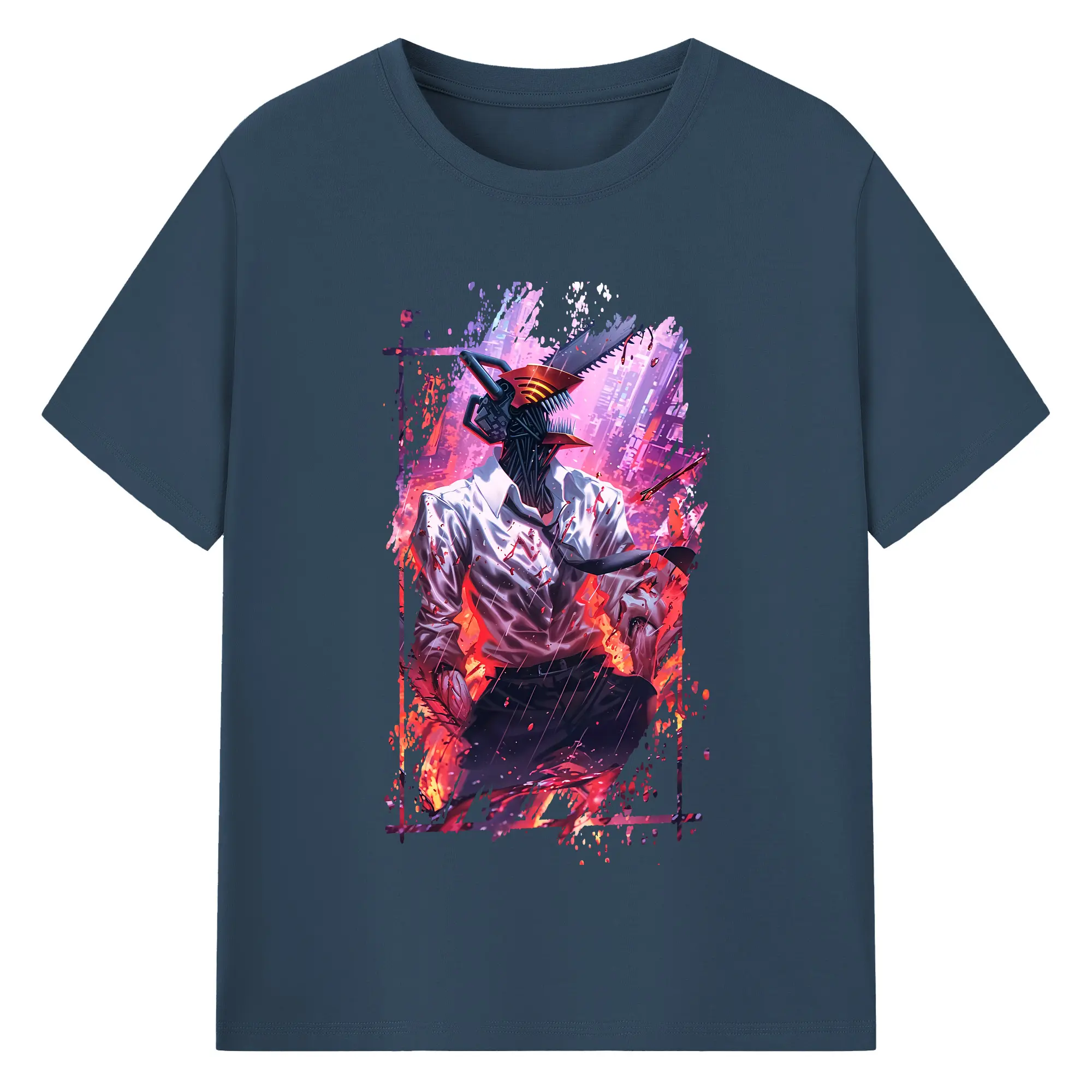 チェンソーマン グッズ,デンジ - 綿100% 半袖Tシャツ ・ バックプリント ・ 快適 通気性 ・ 日常使い 散歩 スポーツ用