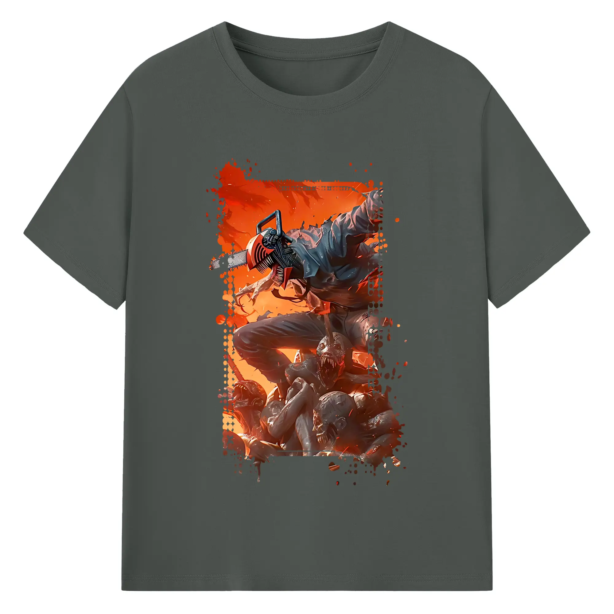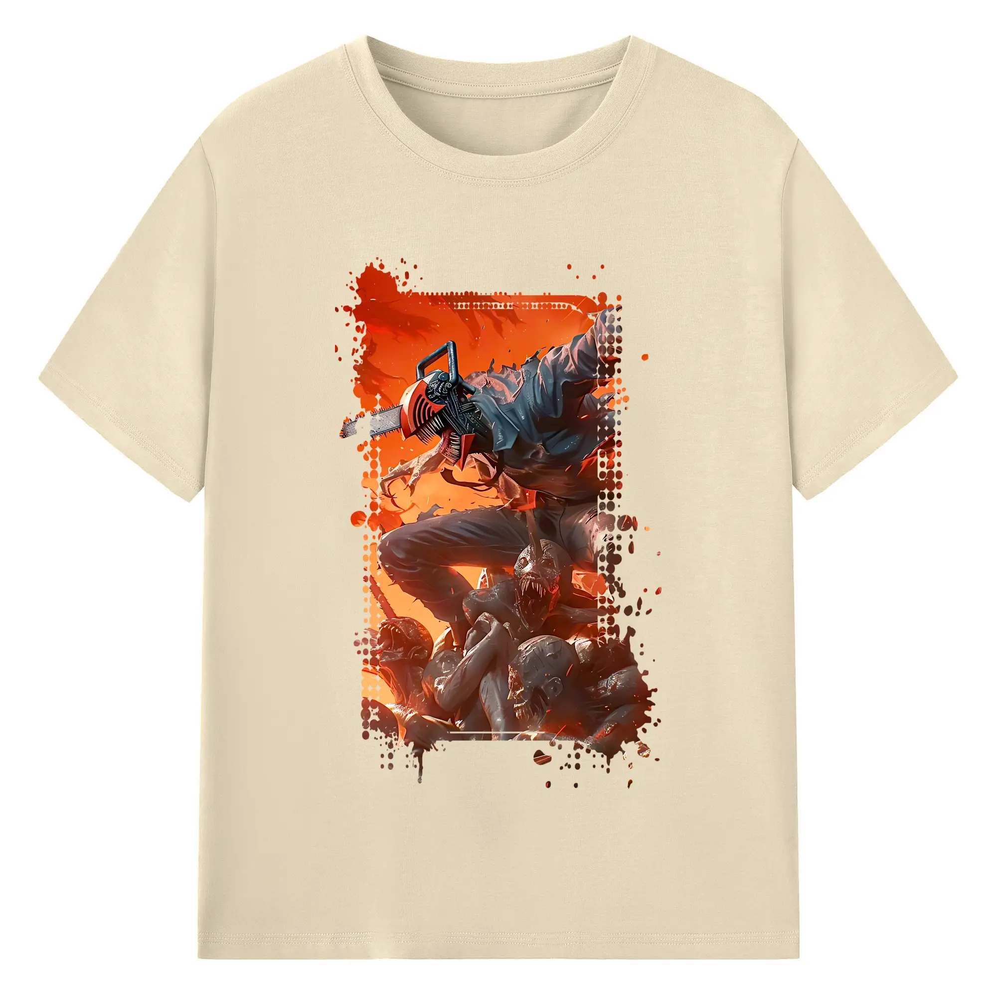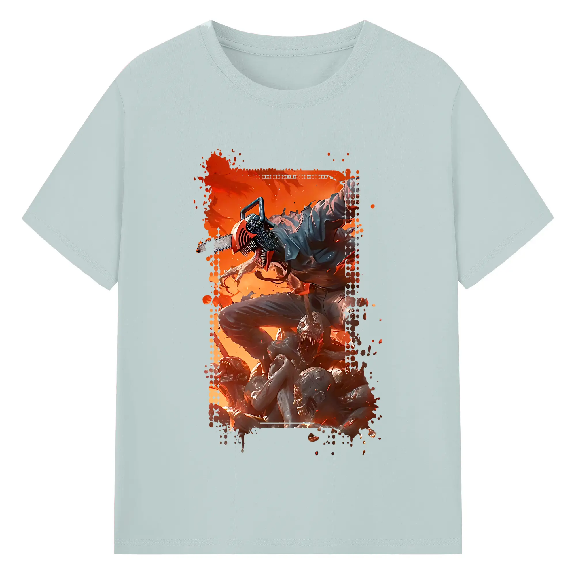 チェンソーマン グッズ,デンジ - 綿100% 半袖Tシャツ ・ バックプリント ・ 快適 通気性 ・ 日常使い 散歩 スポーツ用