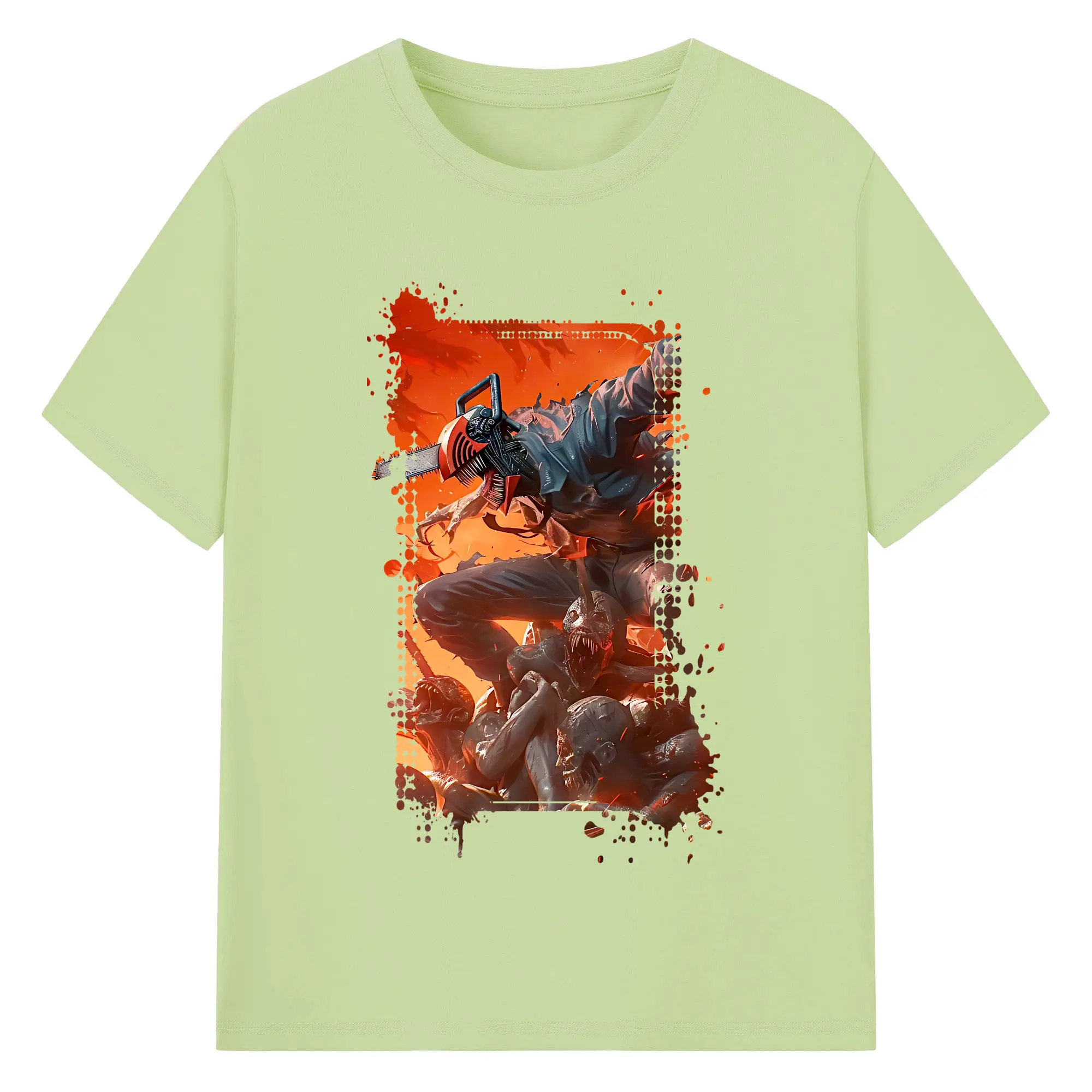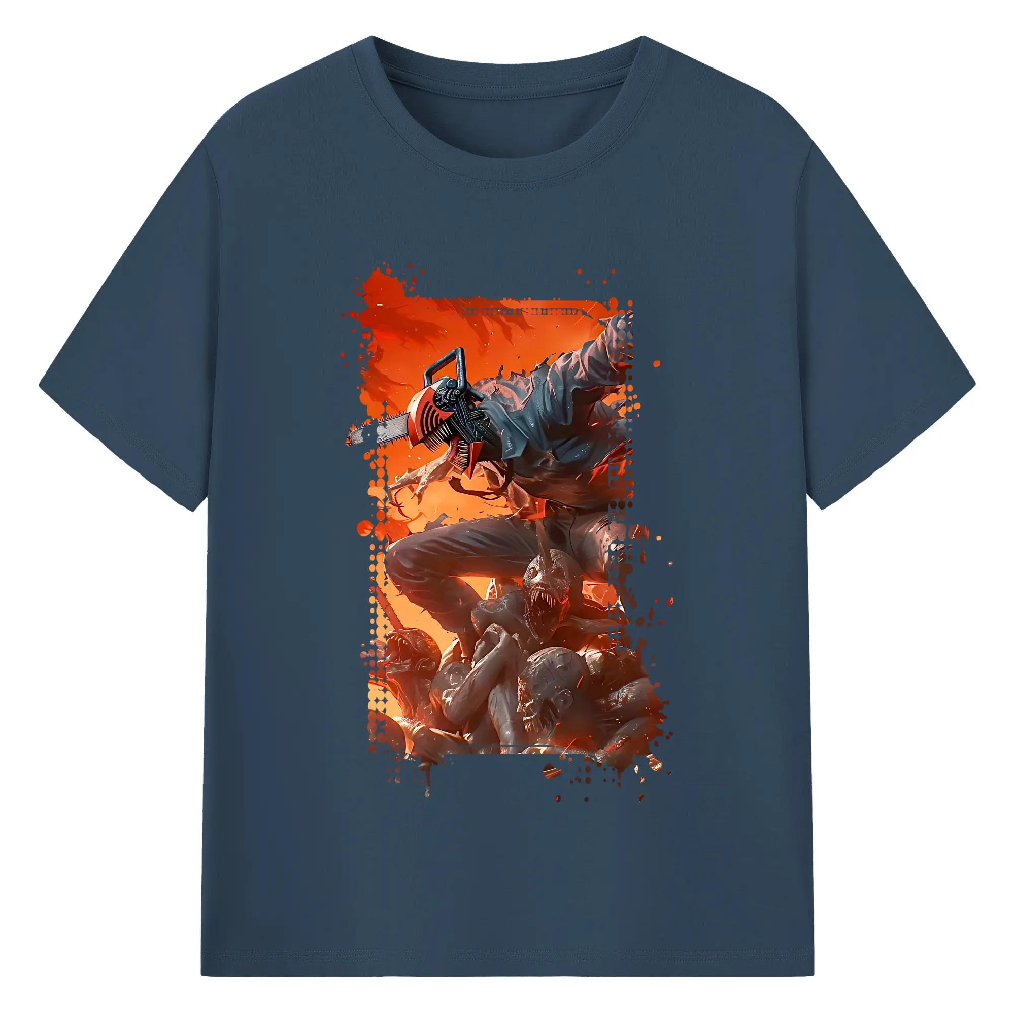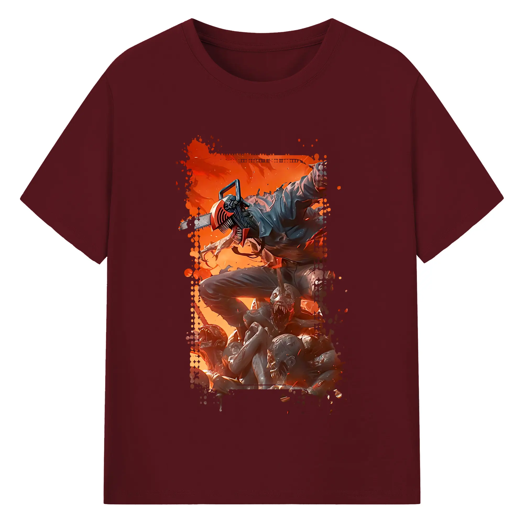 チェンソーマン グッズ,デンジ - 綿100% 半袖Tシャツ ・ バックプリント ・ 快適 通気性 ・ 日常使い 散歩 スポーツ用