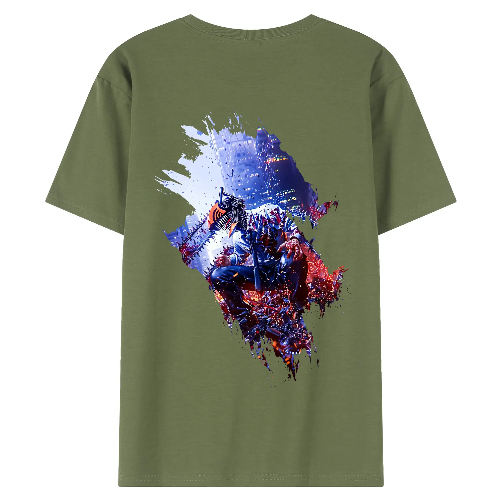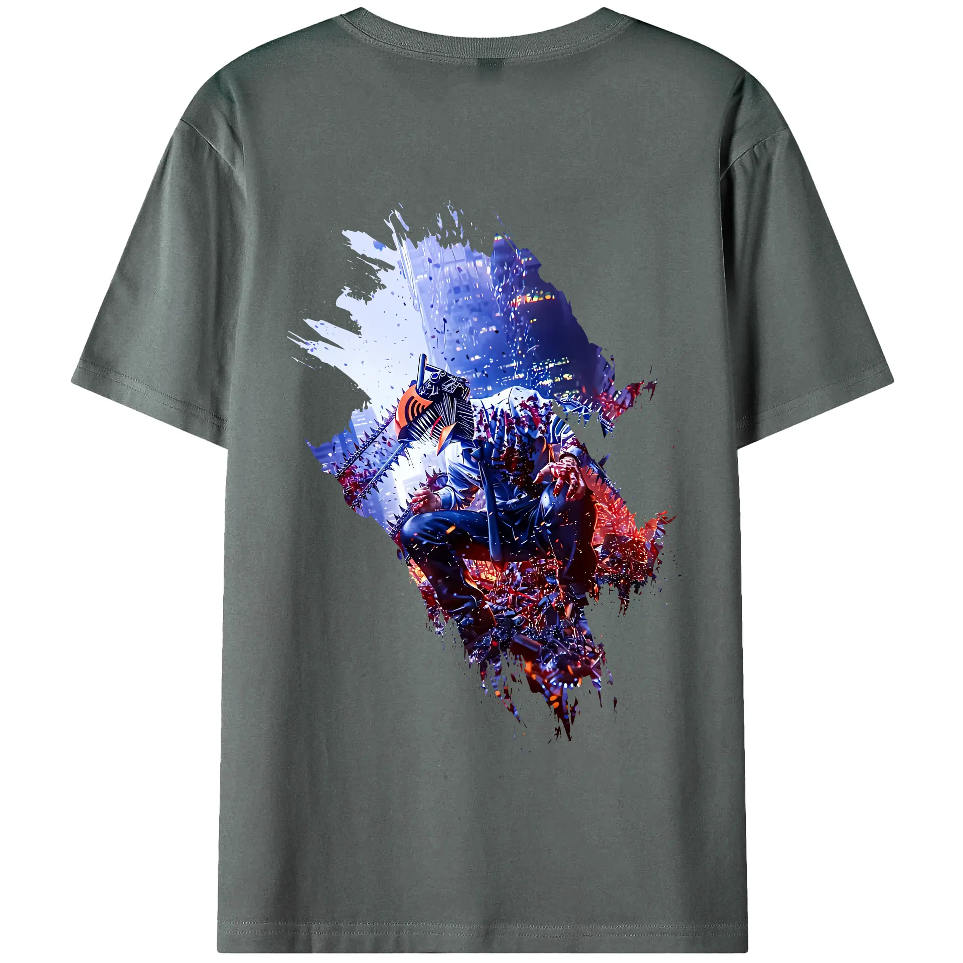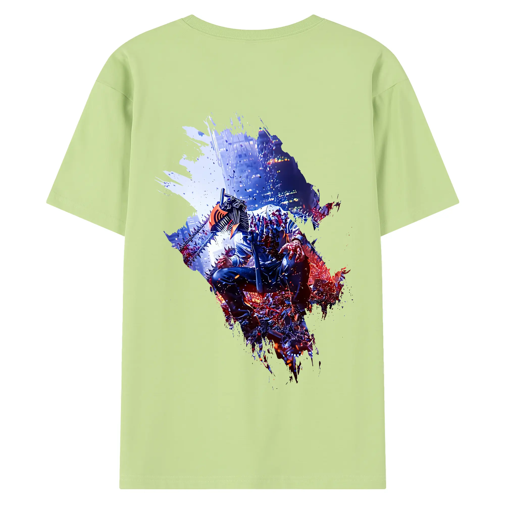チェンソーマン グッズ,デンジ - 綿100% 半袖Tシャツ ・ フロントプリント ・ 快適 通気性 ・ 日常使い 散歩 スポーツ用