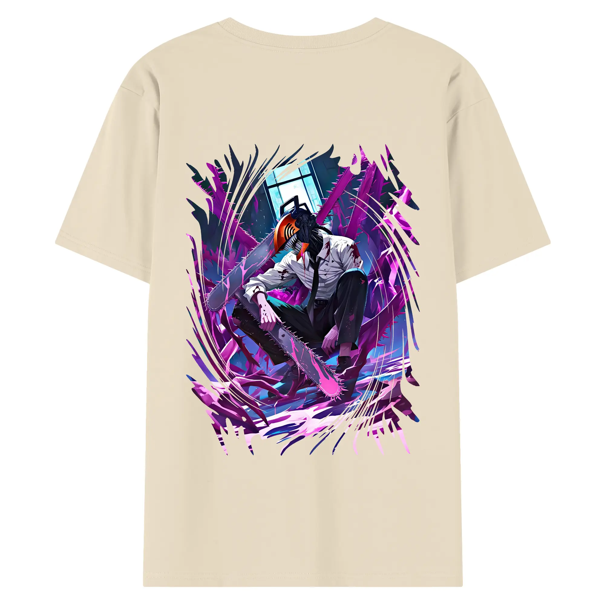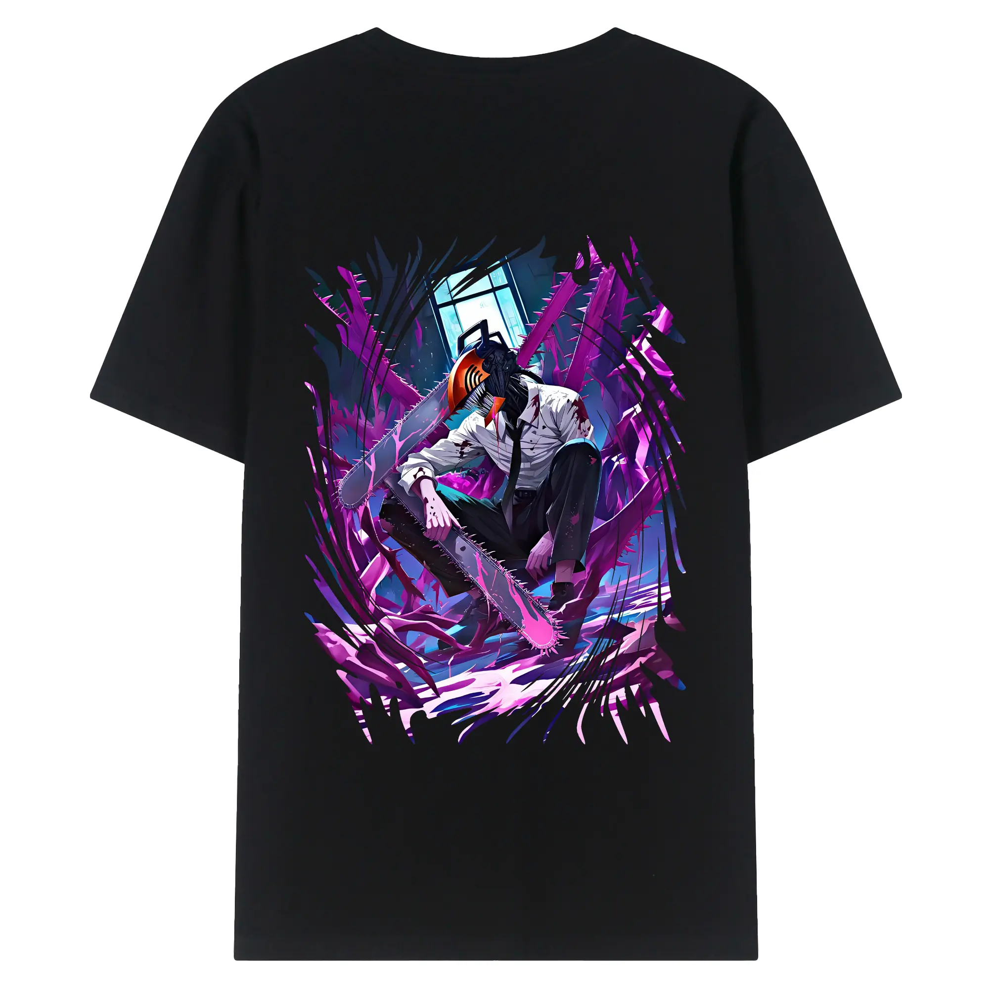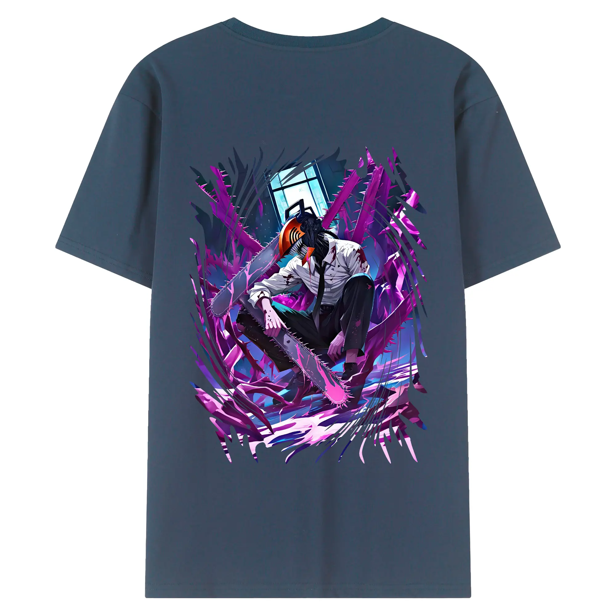 チェンソーマン グッズ,デンジ - 綿100% ヴィンテージ風 半袖Tシャツ ・ 背面プリント ・ 柔らか肌触り ・ 通気性 快適 ・ スポーツ カジュアル 外出用