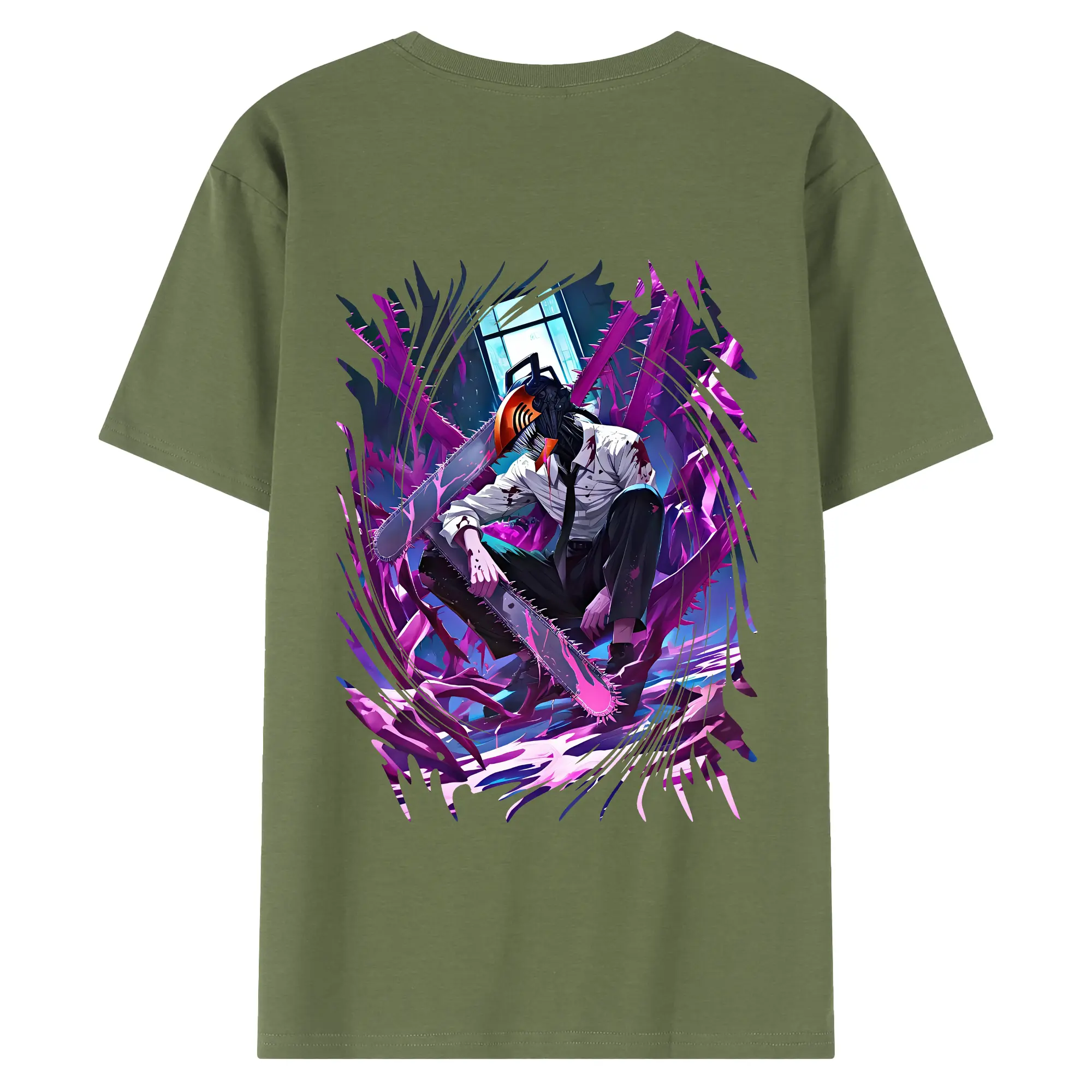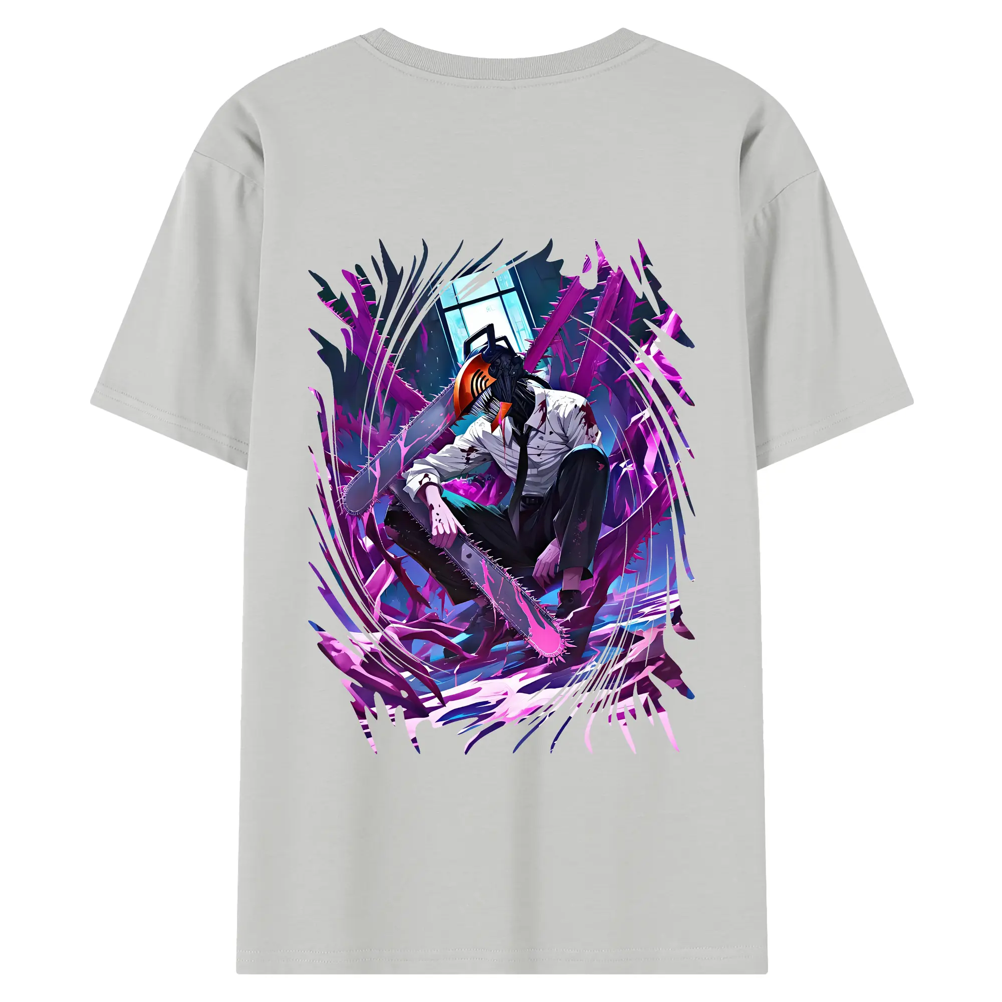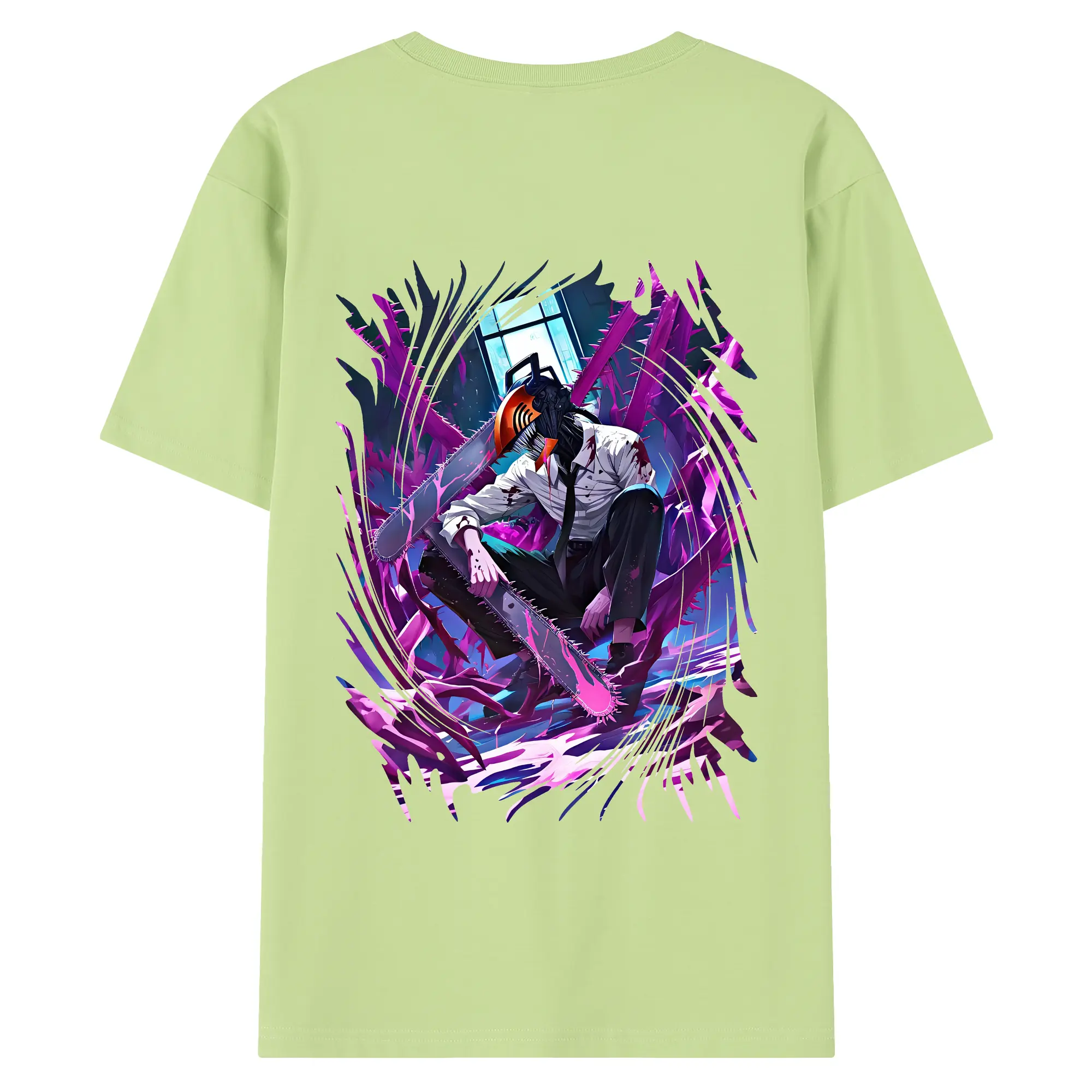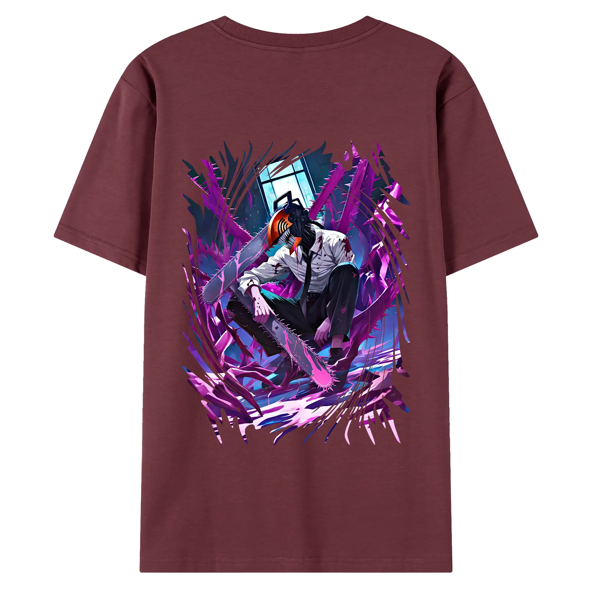 チェンソーマン グッズ,デンジ - 綿100% ヴィンテージ風 半袖Tシャツ ・ 背面プリント ・ 柔らか肌触り ・ 通気性 快適 ・ スポーツ カジュアル 外出用