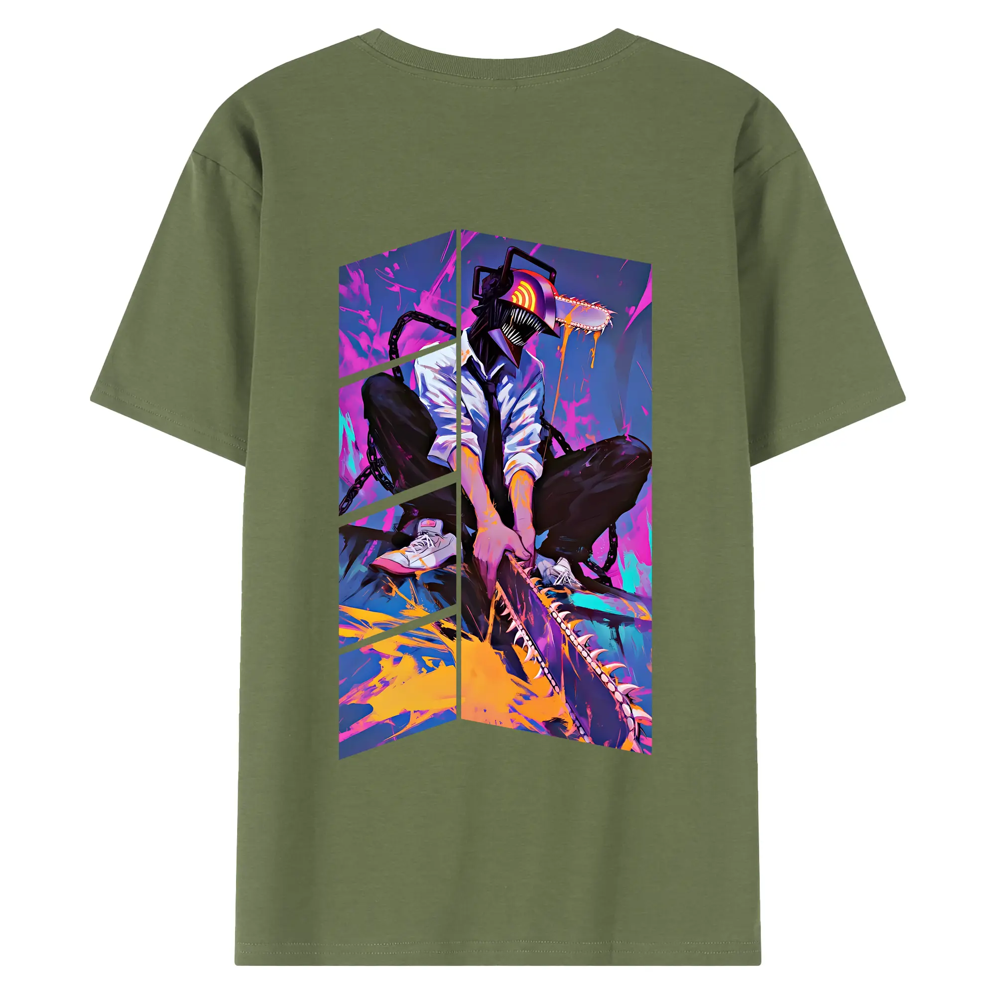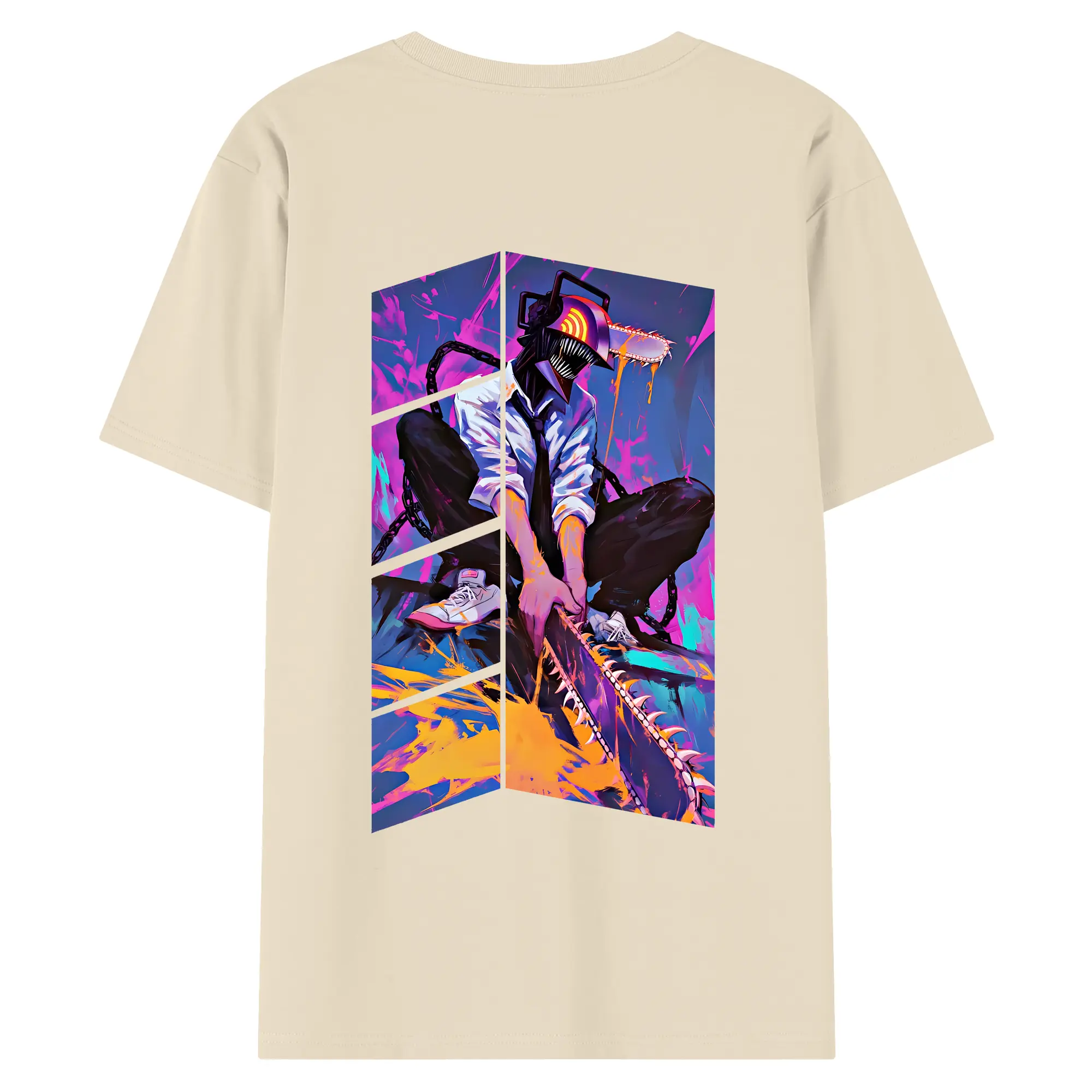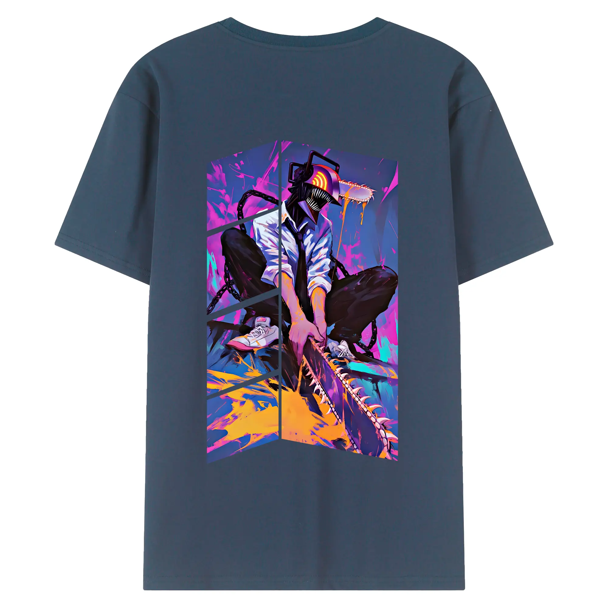 チェンソーマン グッズ,デンジ - 綿100% ヴィンテージ風 半袖Tシャツ ・ 背面プリント ・ 柔らか肌触り ・ 通気性 快適 ・ スポーツ カジュアル 外出用