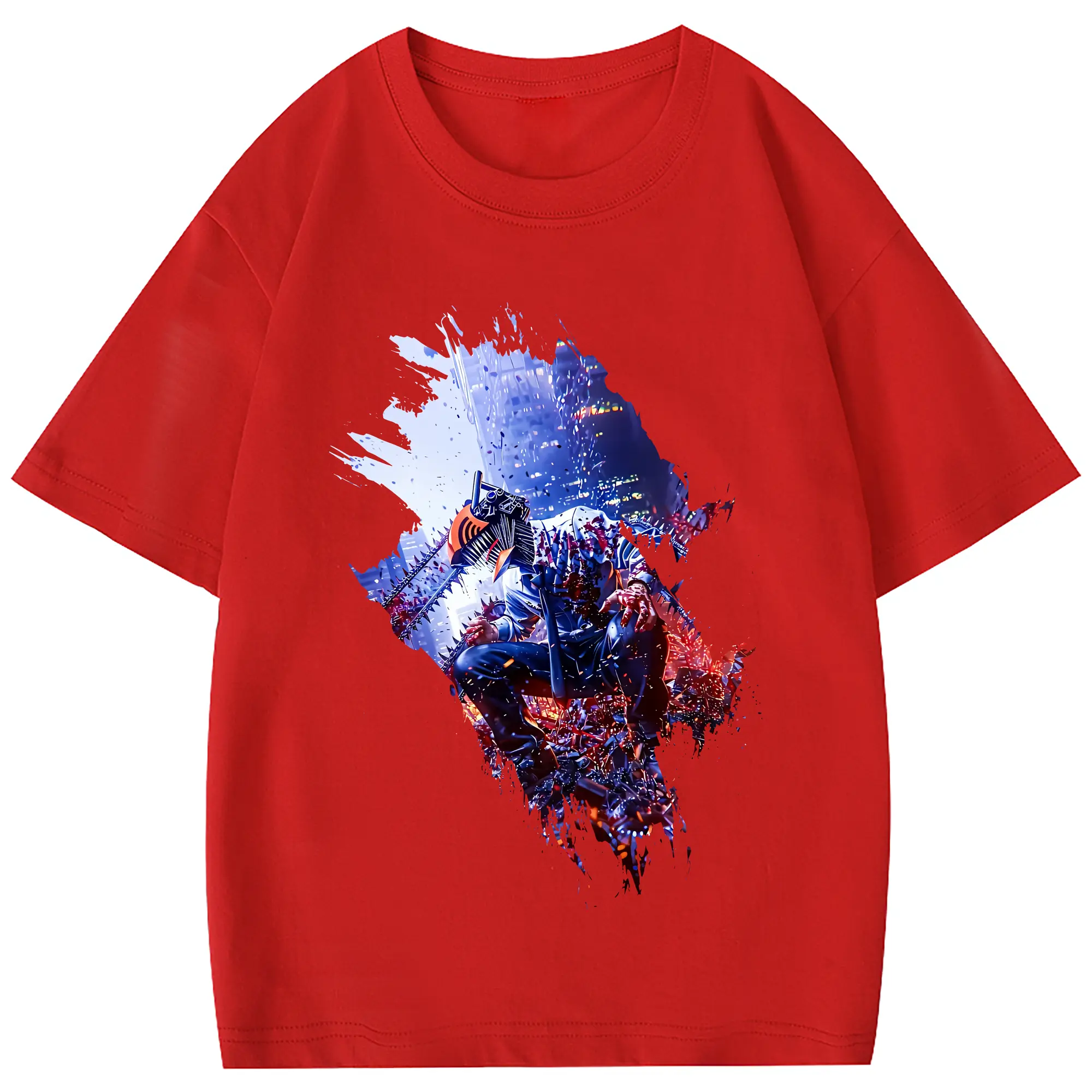 チェンソーマン グッズ,デンジ - 綿100% 半袖Tシャツ ・ フロントプリント ・ 快適 通気性 ・ 日常使い 散歩 スポーツ用