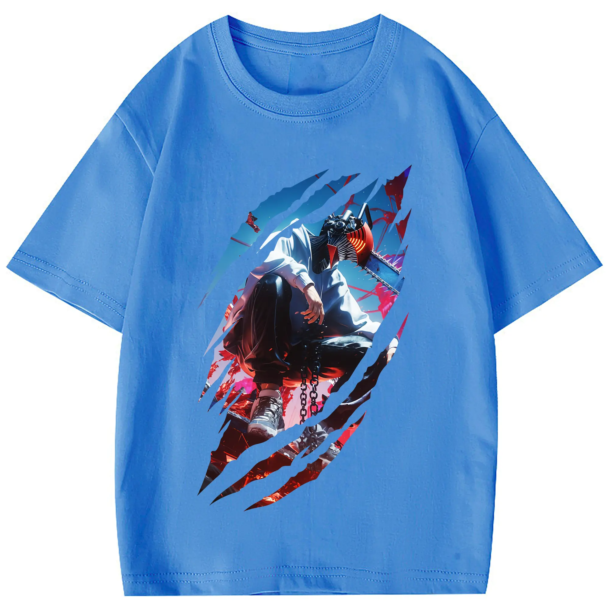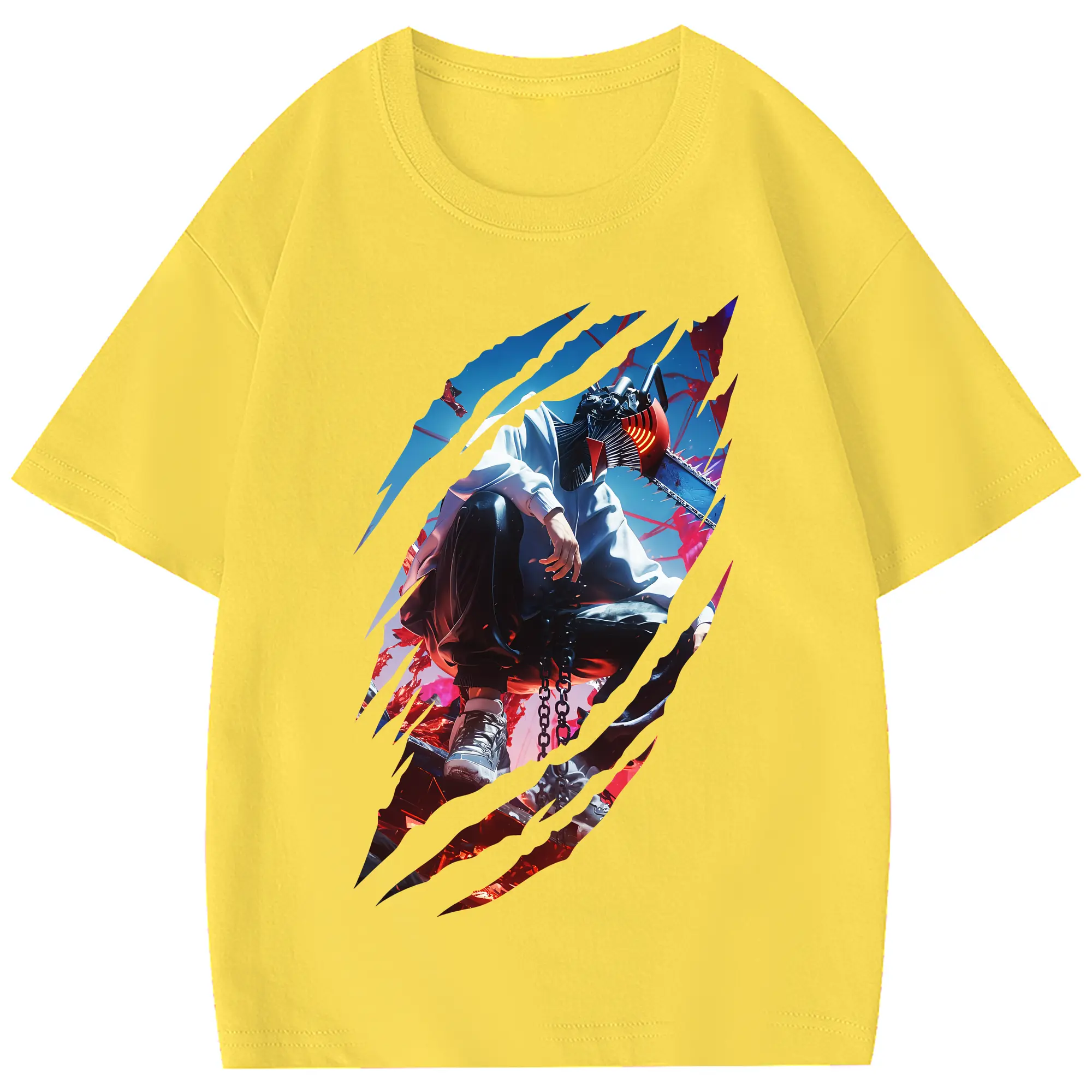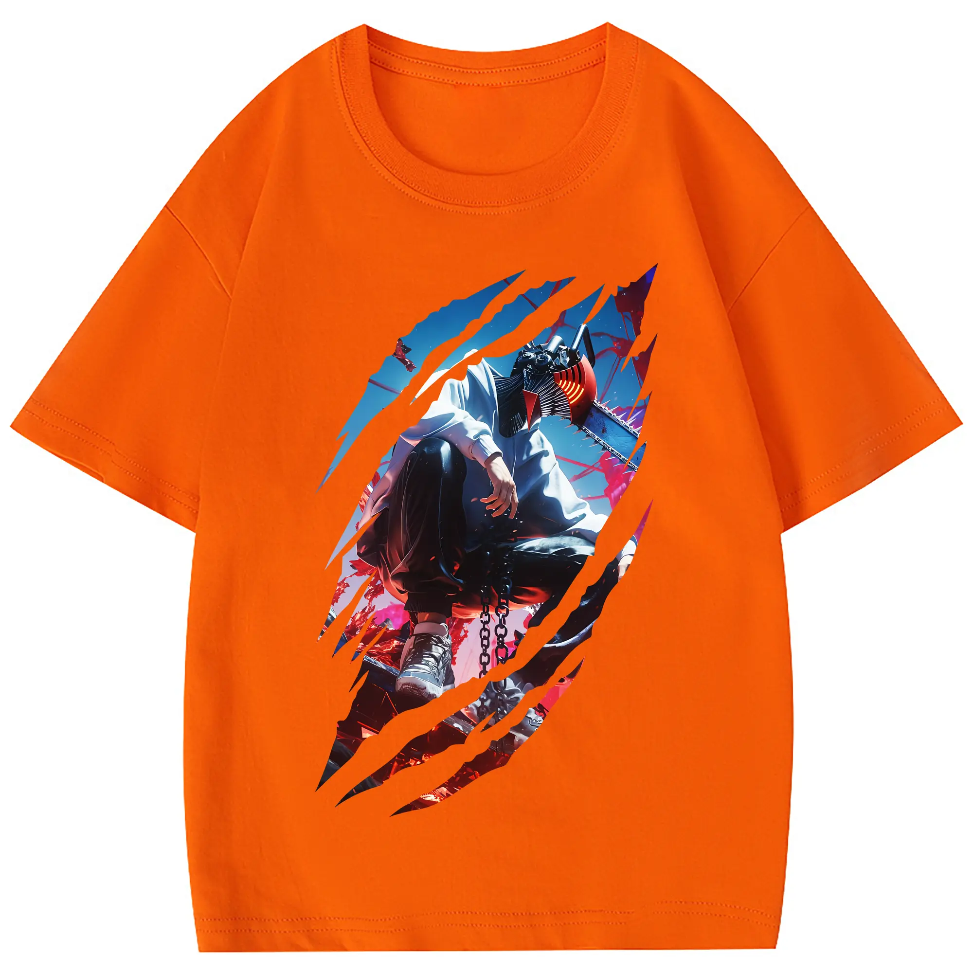 チェンソーマン グッズ,デンジ - 綿100% 半袖Tシャツ ・ フロントプリント ・ 快適 通気性 ・ 日常使い 散歩 スポーツ用