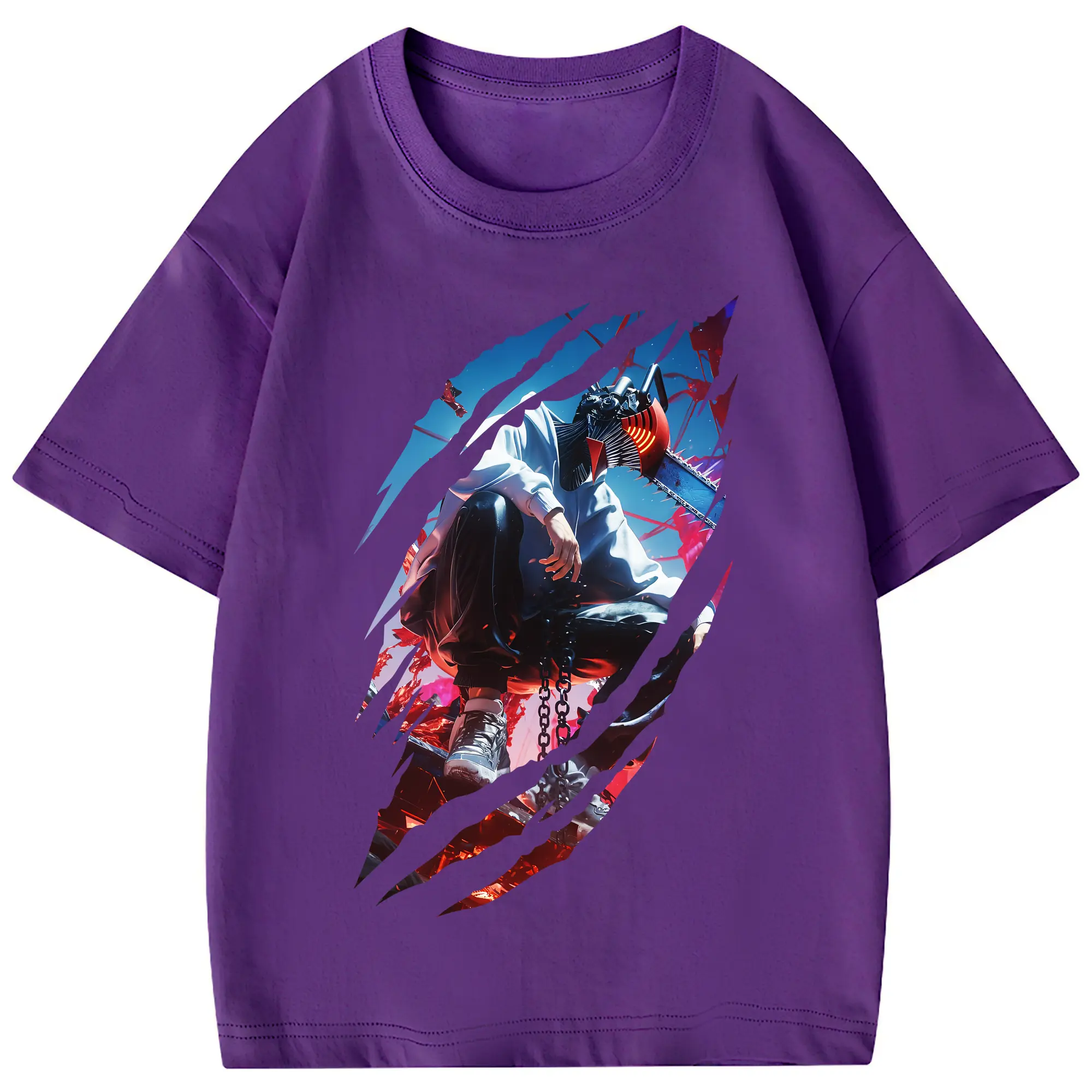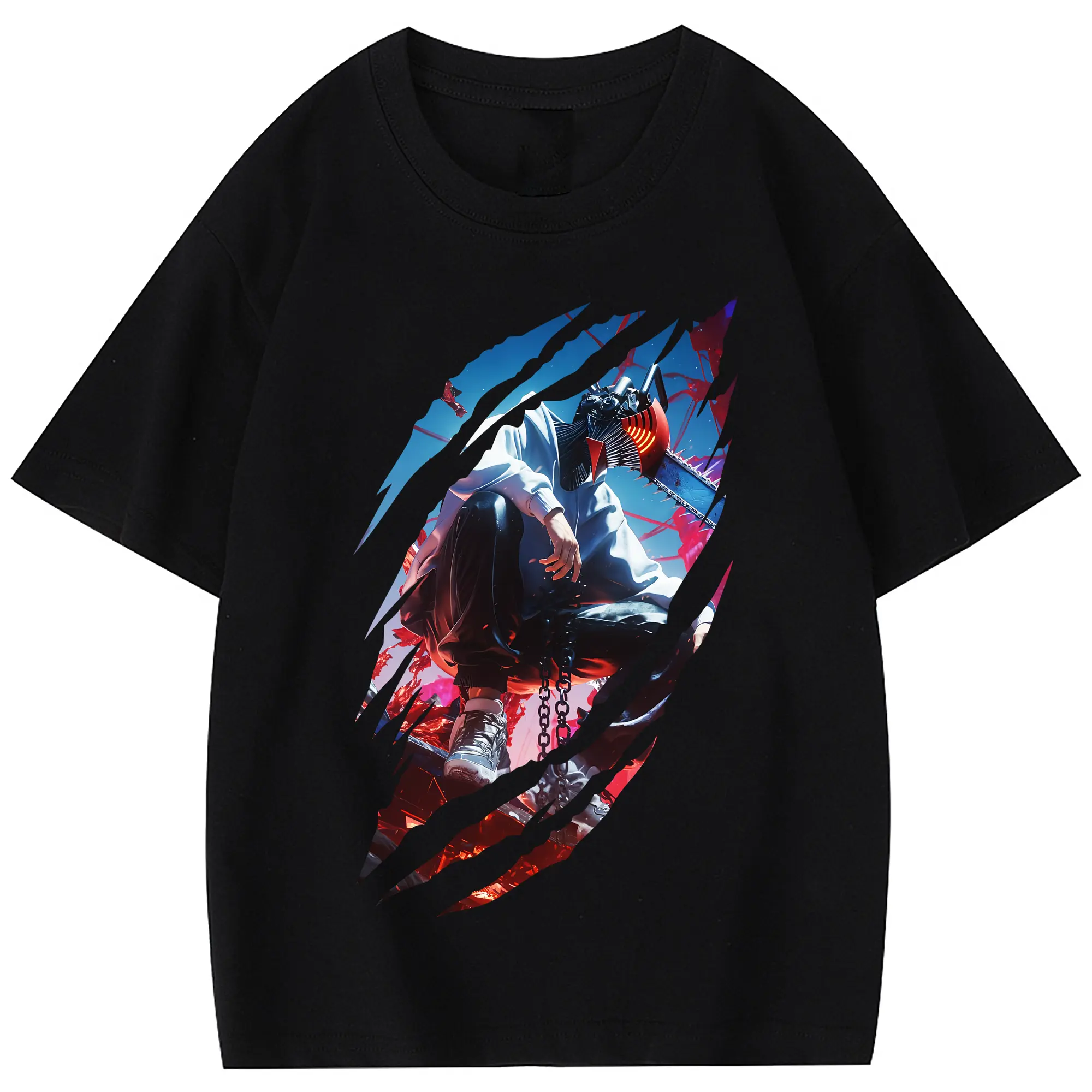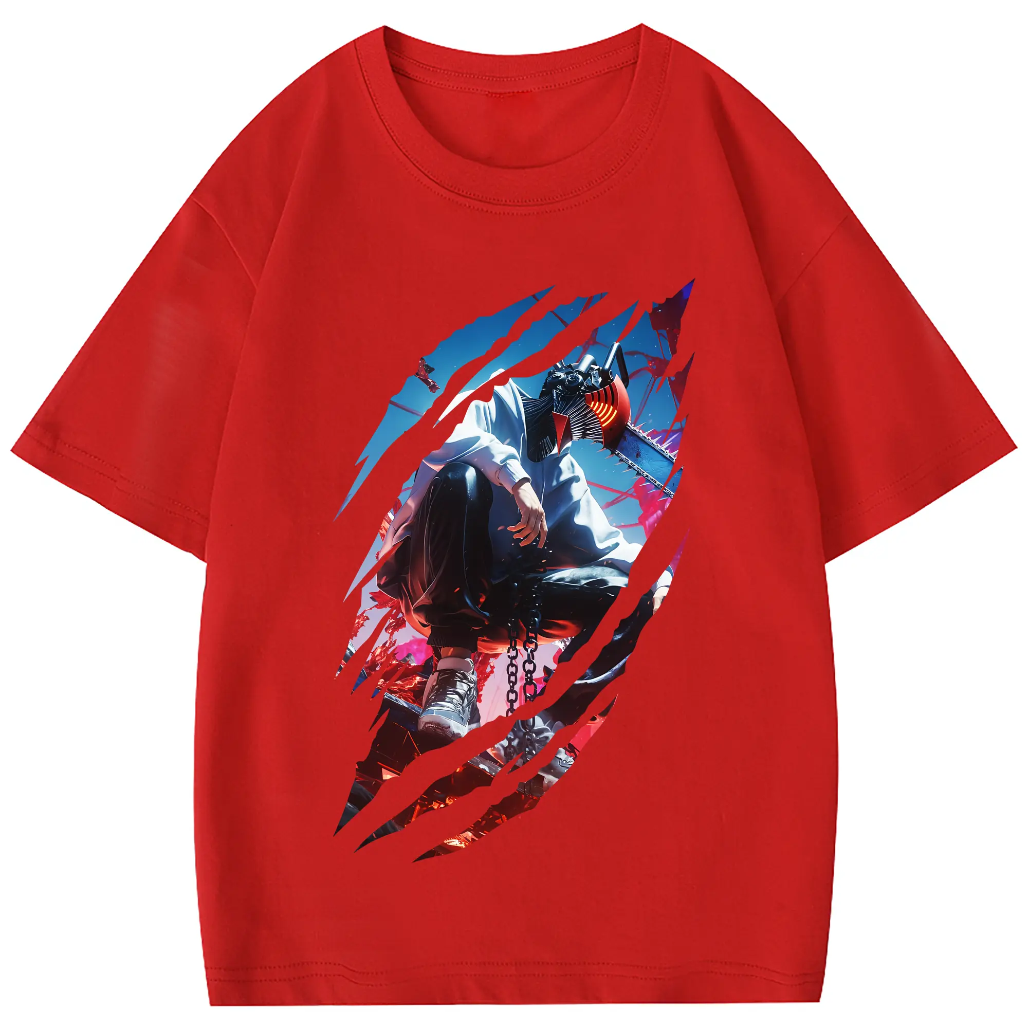 チェンソーマン グッズ,デンジ - 綿100% 半袖Tシャツ ・ フロントプリント ・ 快適 通気性 ・ 日常使い 散歩 スポーツ用