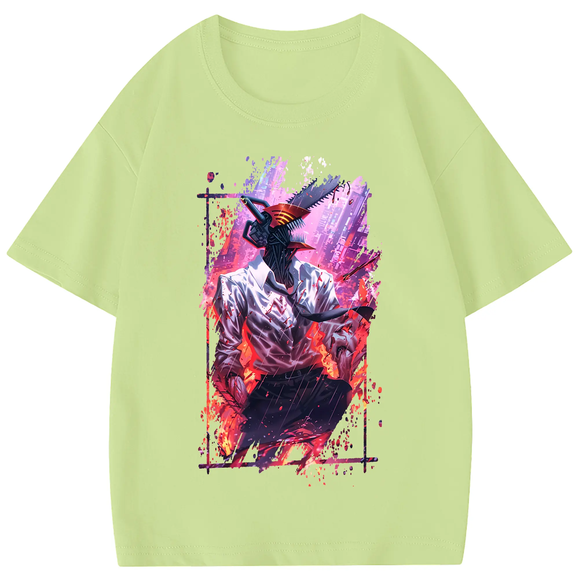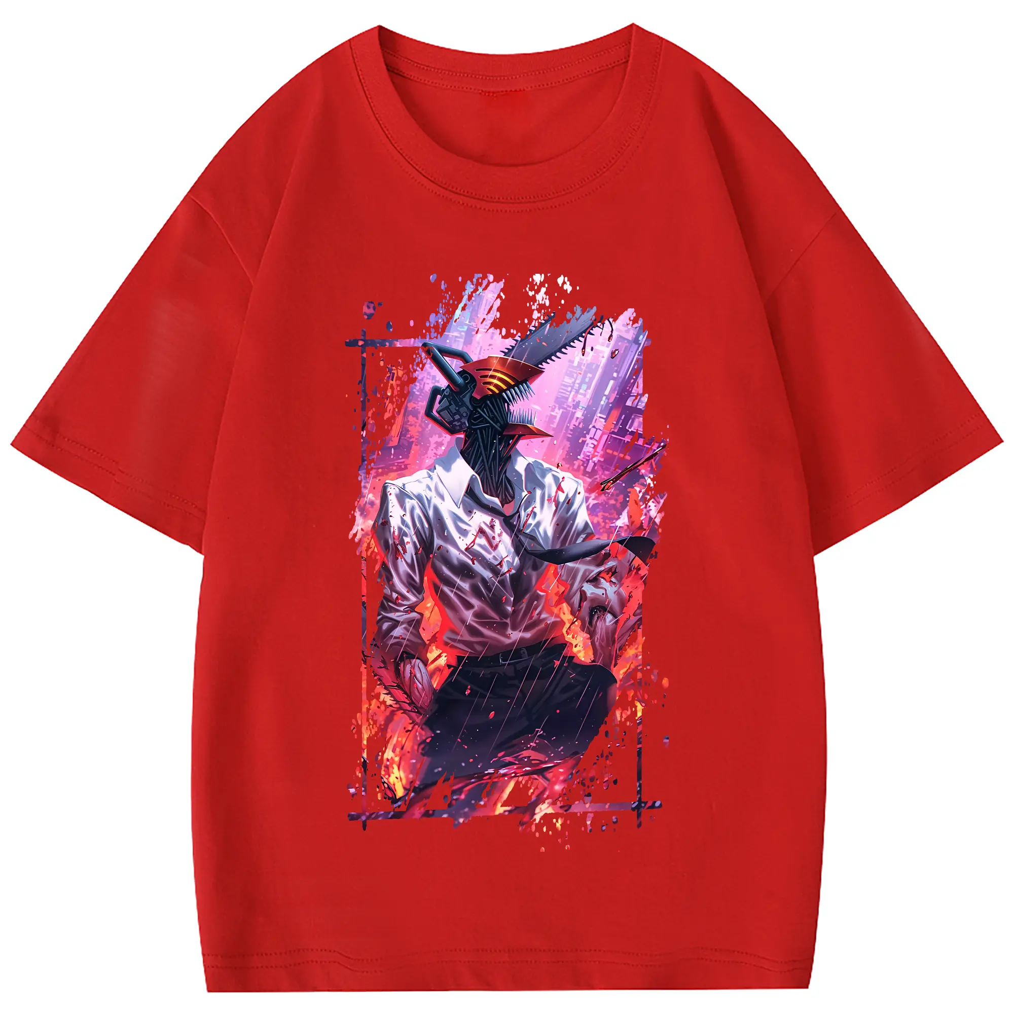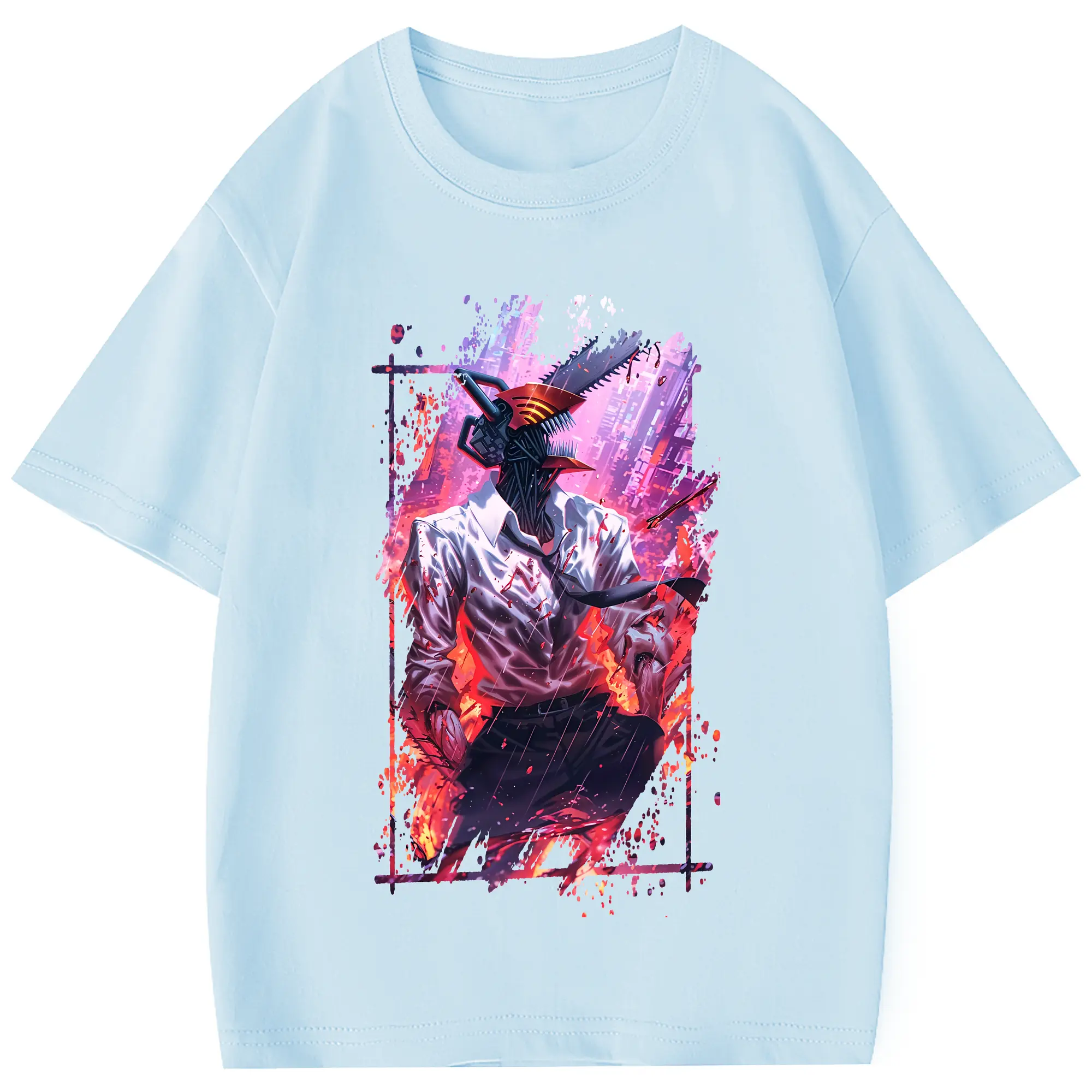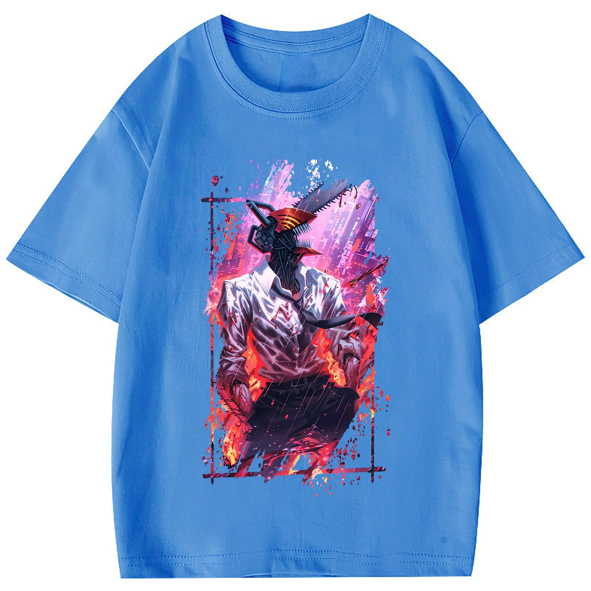 チェンソーマン グッズ,デンジ - 綿100% 半袖Tシャツ ・ フロントプリント ・ 快適 通気性 ・ 日常使い 散歩 スポーツ用