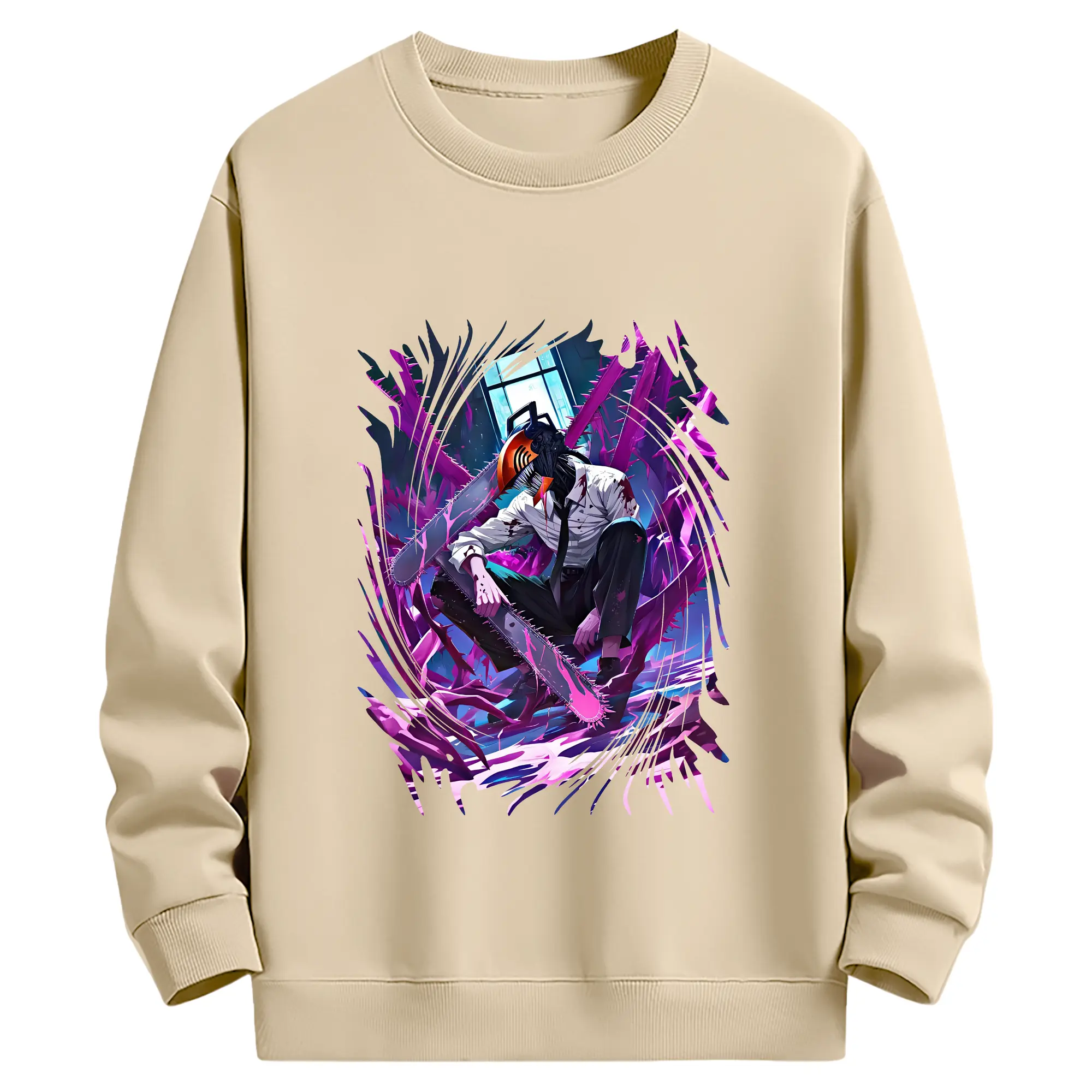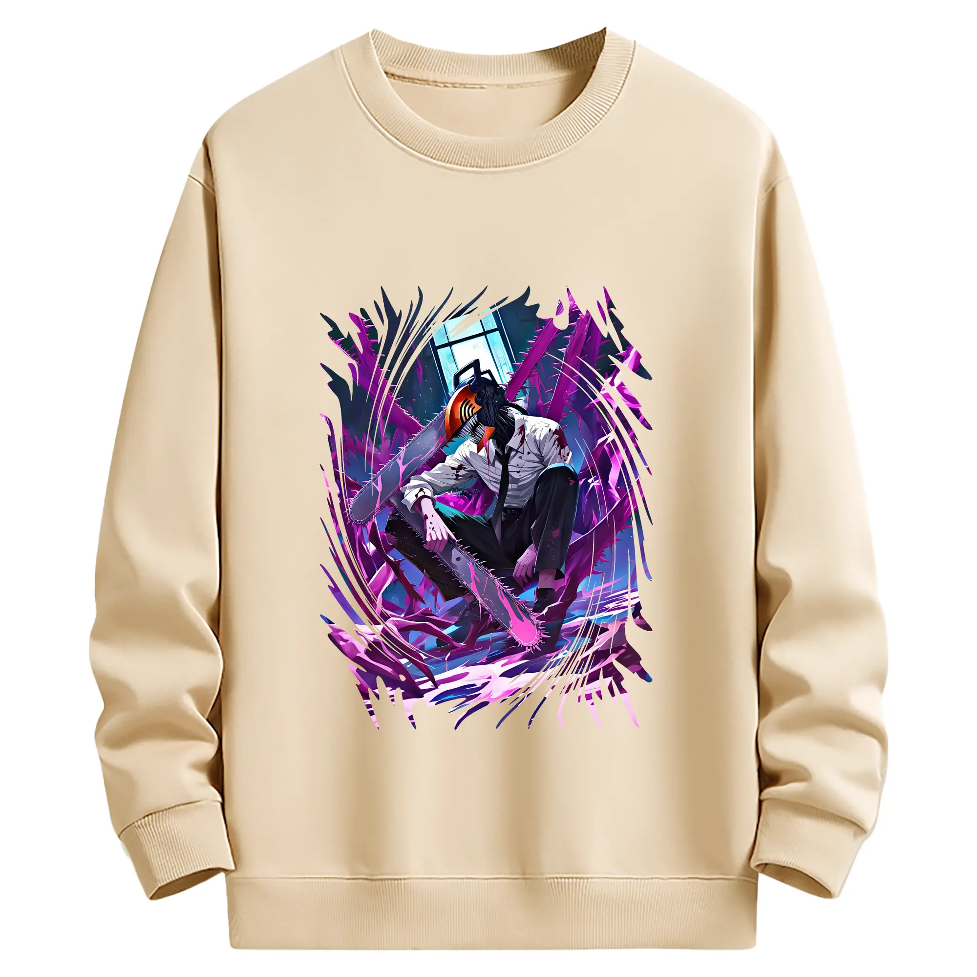 チェンソーマン グッズ,デンジ - 薄手 クルーネック スウェット 裏毛260g · ポリエステル 春秋向け カジュアル 男女兼用 · トレーナー デイリー スポーツ 散歩に最適