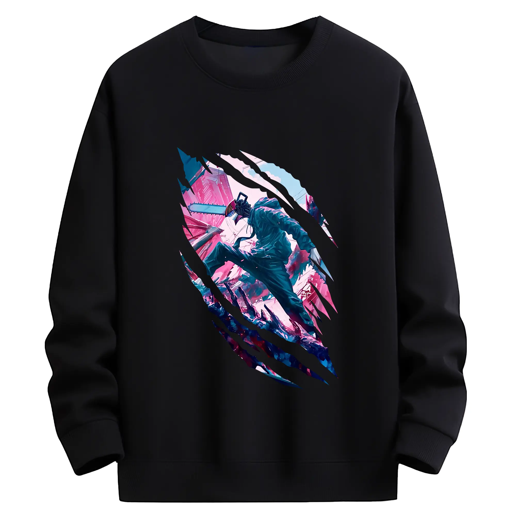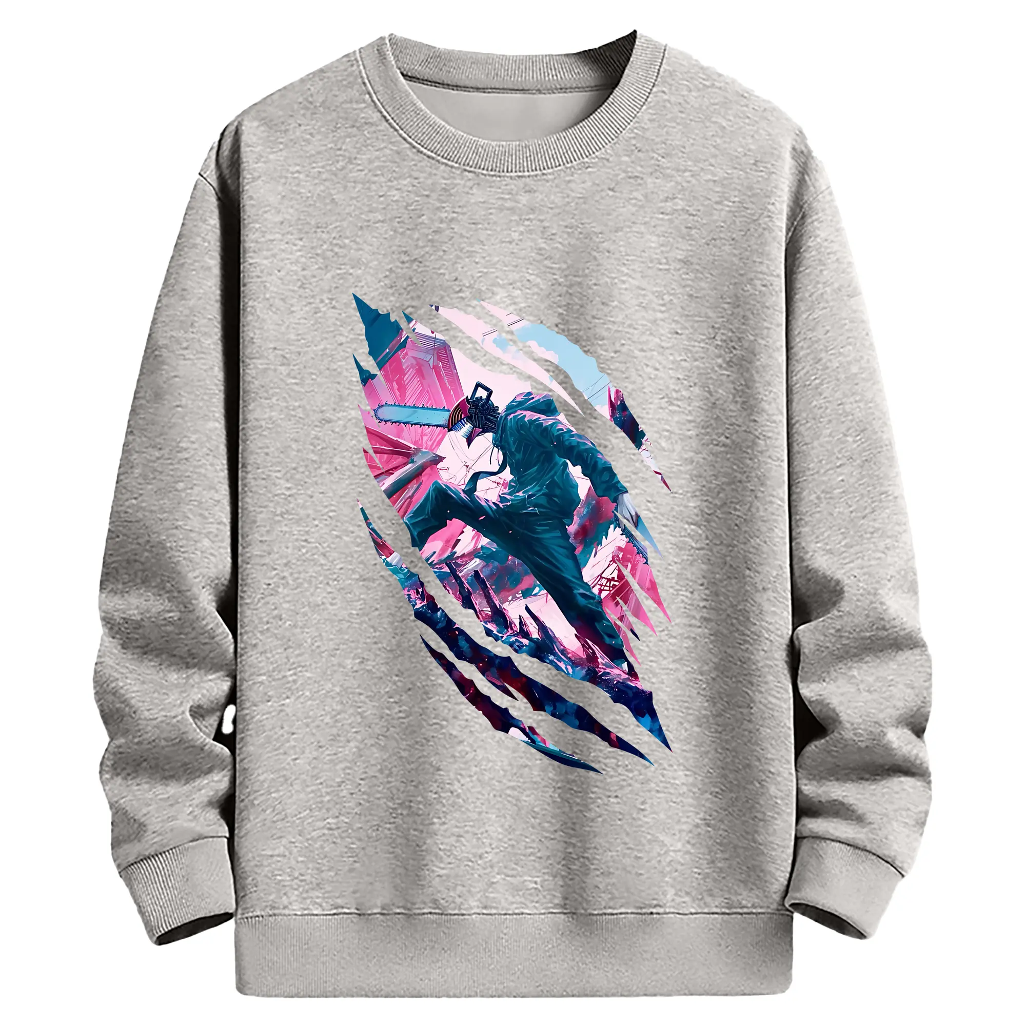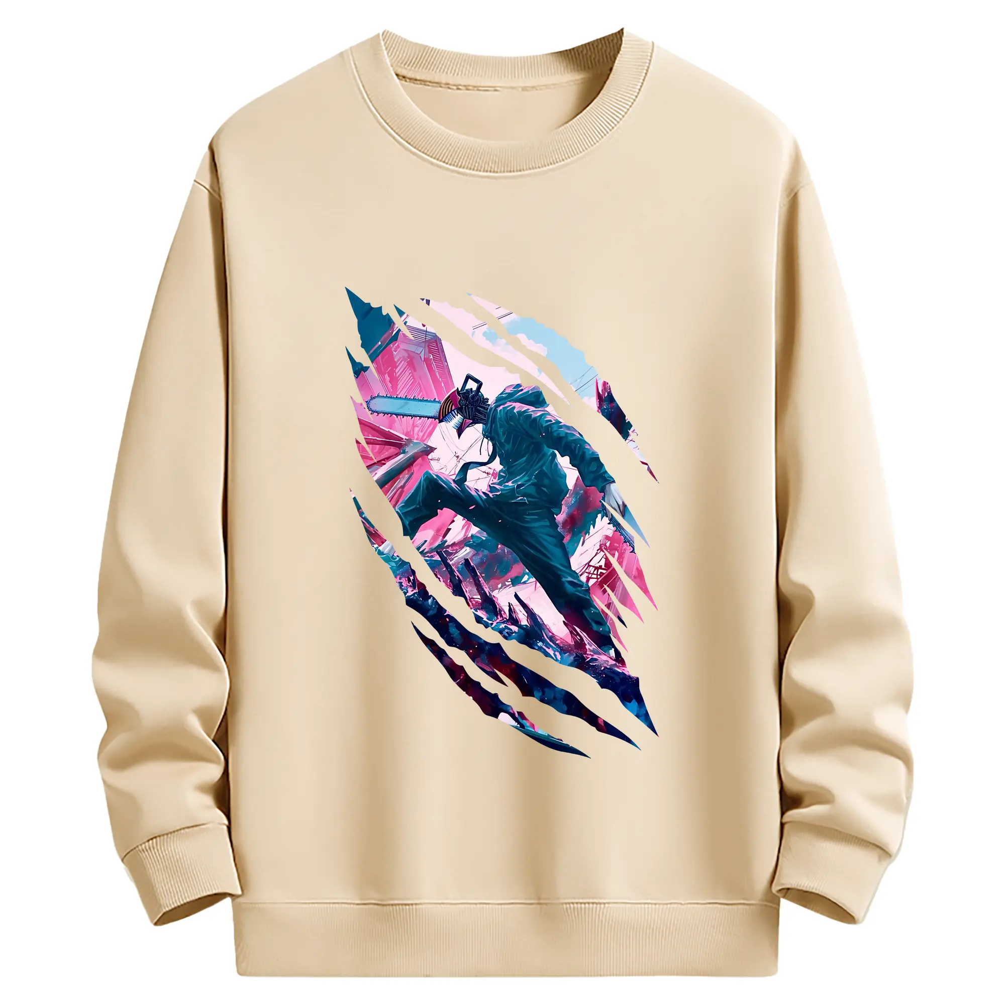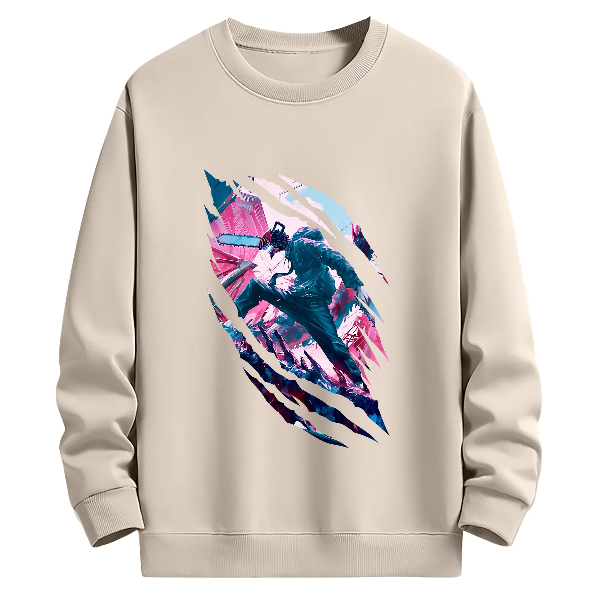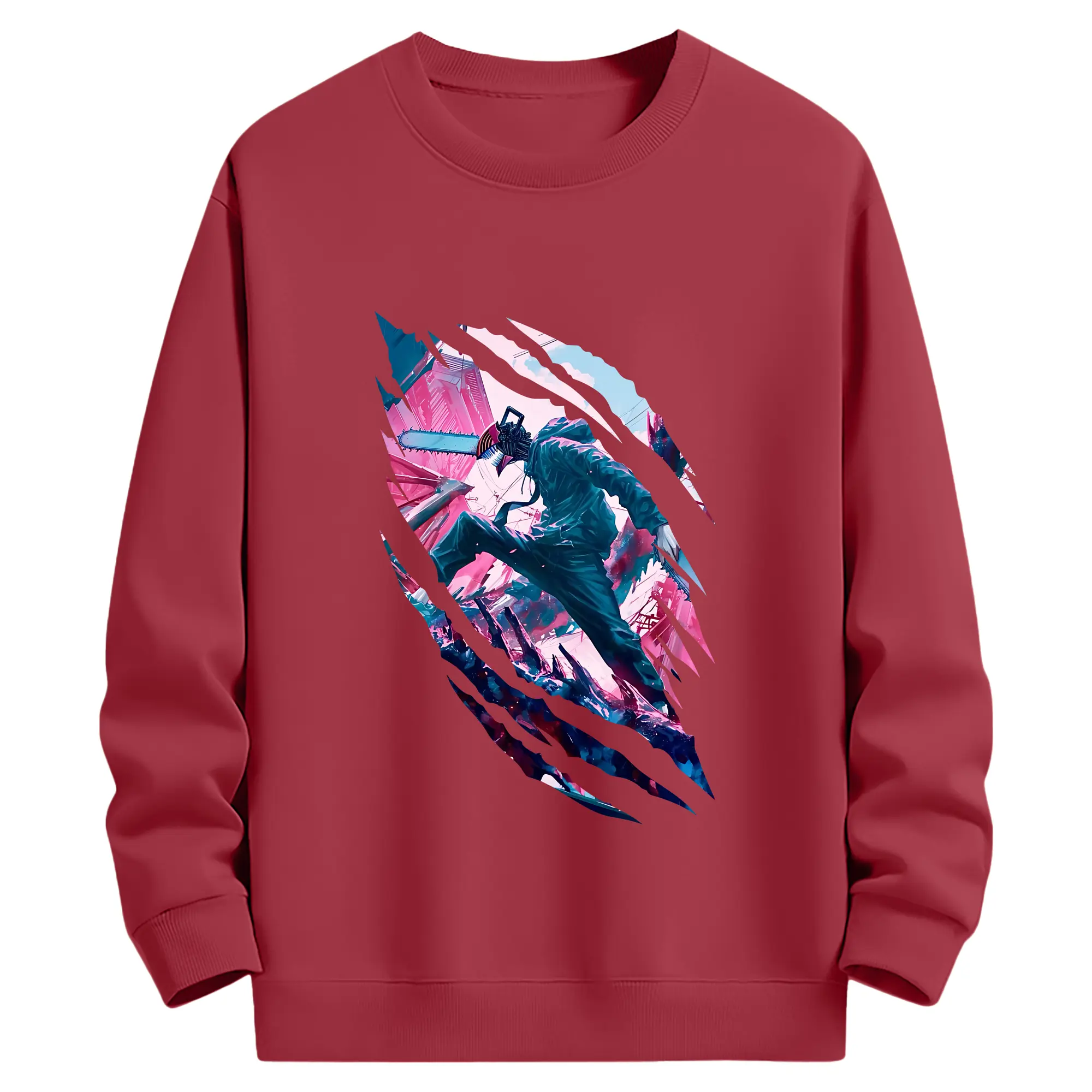 チェンソーマン グッズ,デンジ - 薄手 クルーネック スウェット 裏毛260g · ポリエステル 春秋向け カジュアル 男女兼用 · トレーナー デイリー スポーツ 散歩に最適