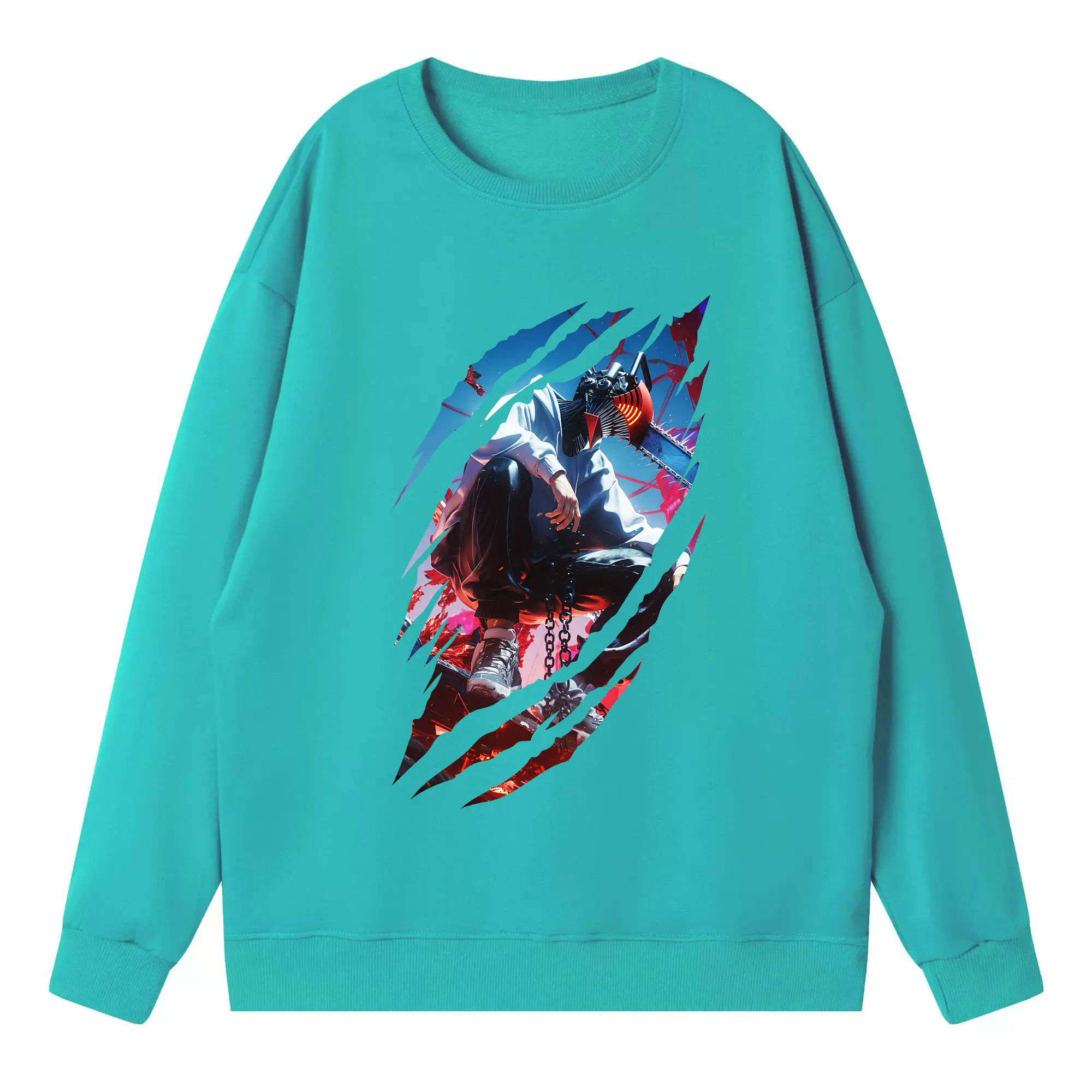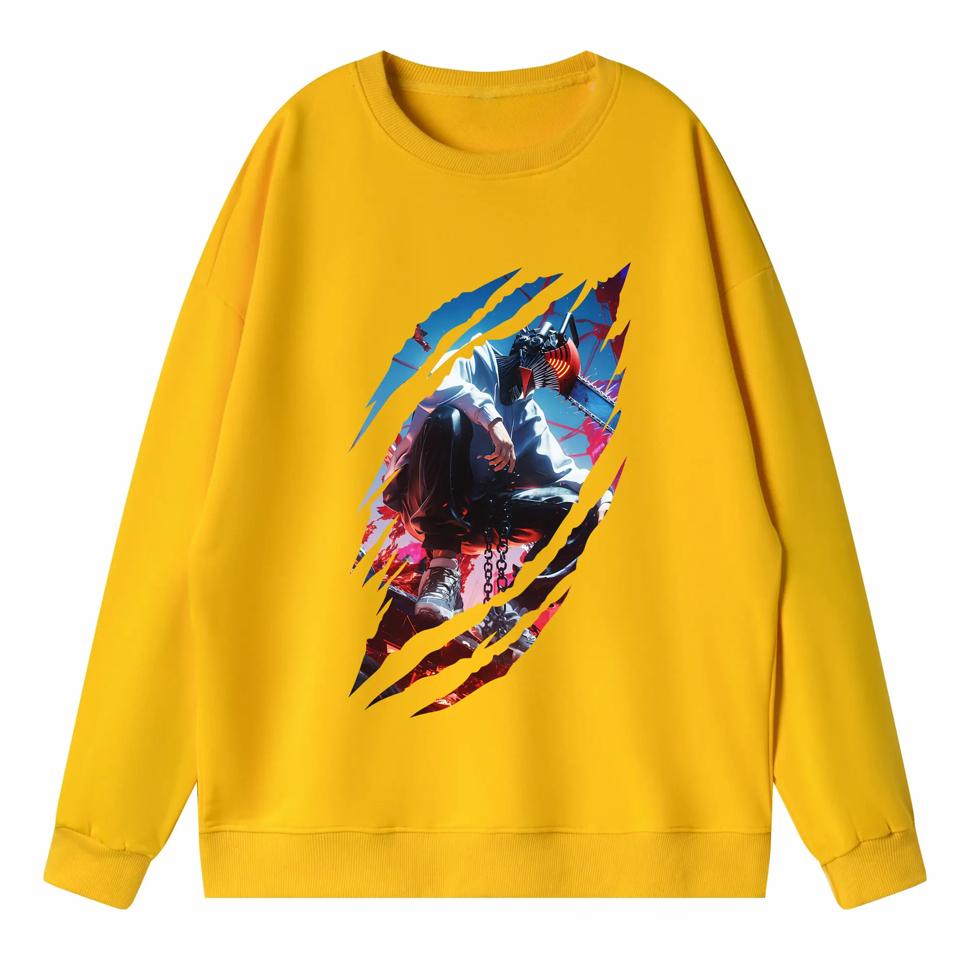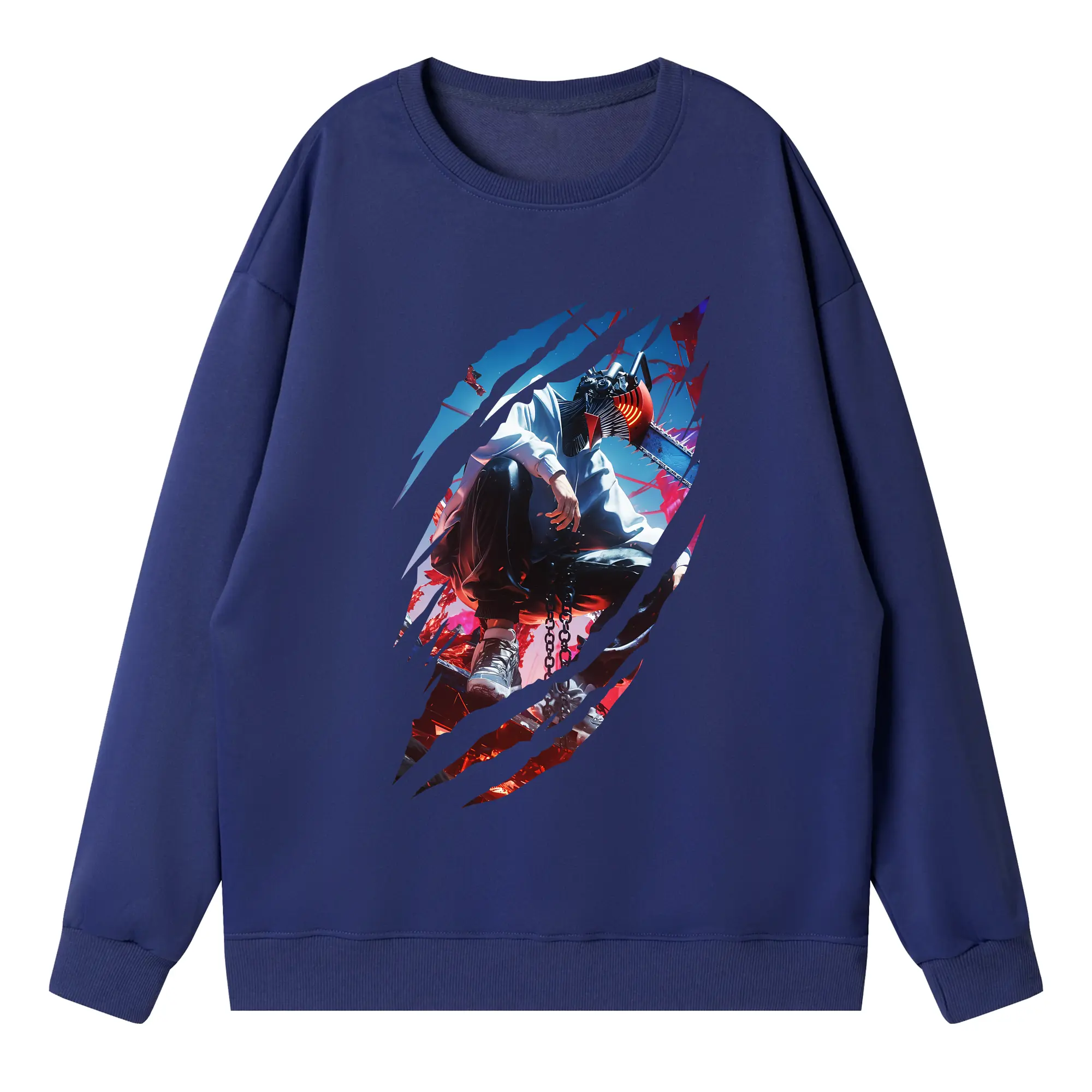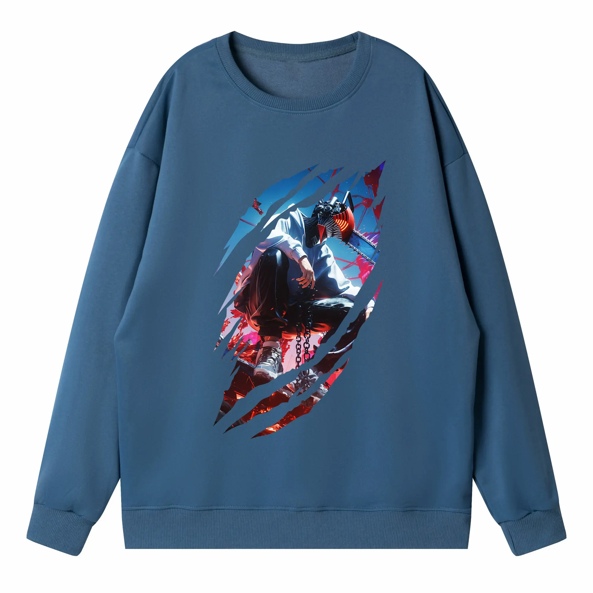 チェンソーマン グッズ,デンジ - 高品質 クルーネック スウェット ・ コットン59% ポリエステル41% ・ ユニセックス 長袖 トレーナー ・ カジュアル デイリー スポーツ 散歩用