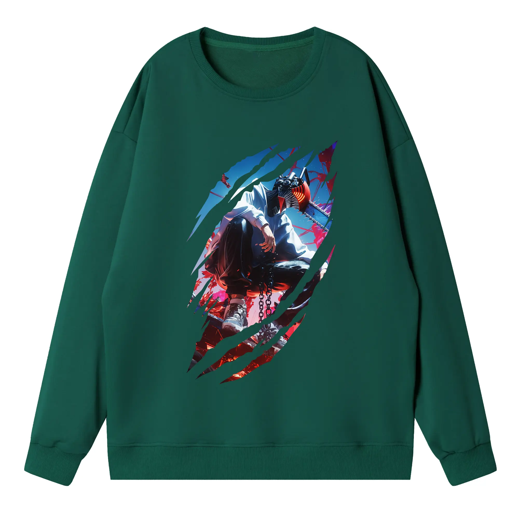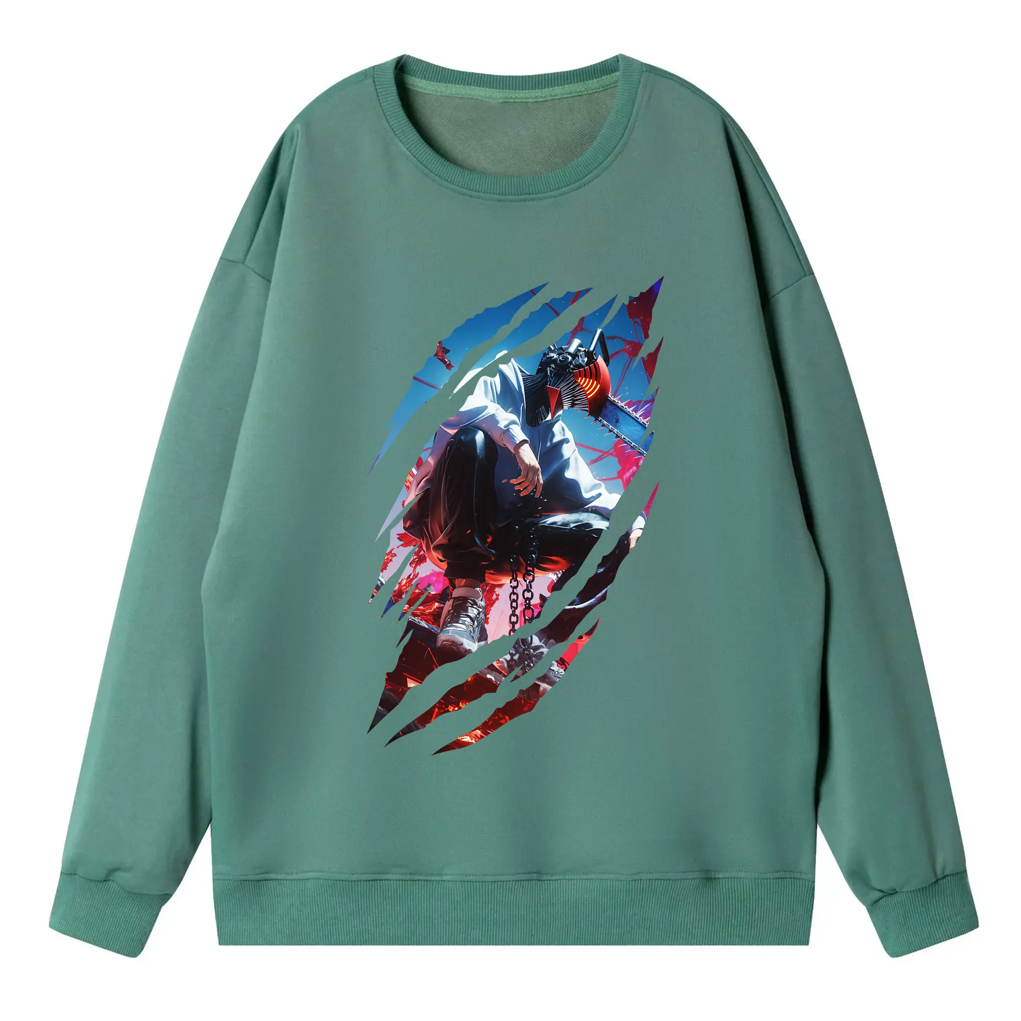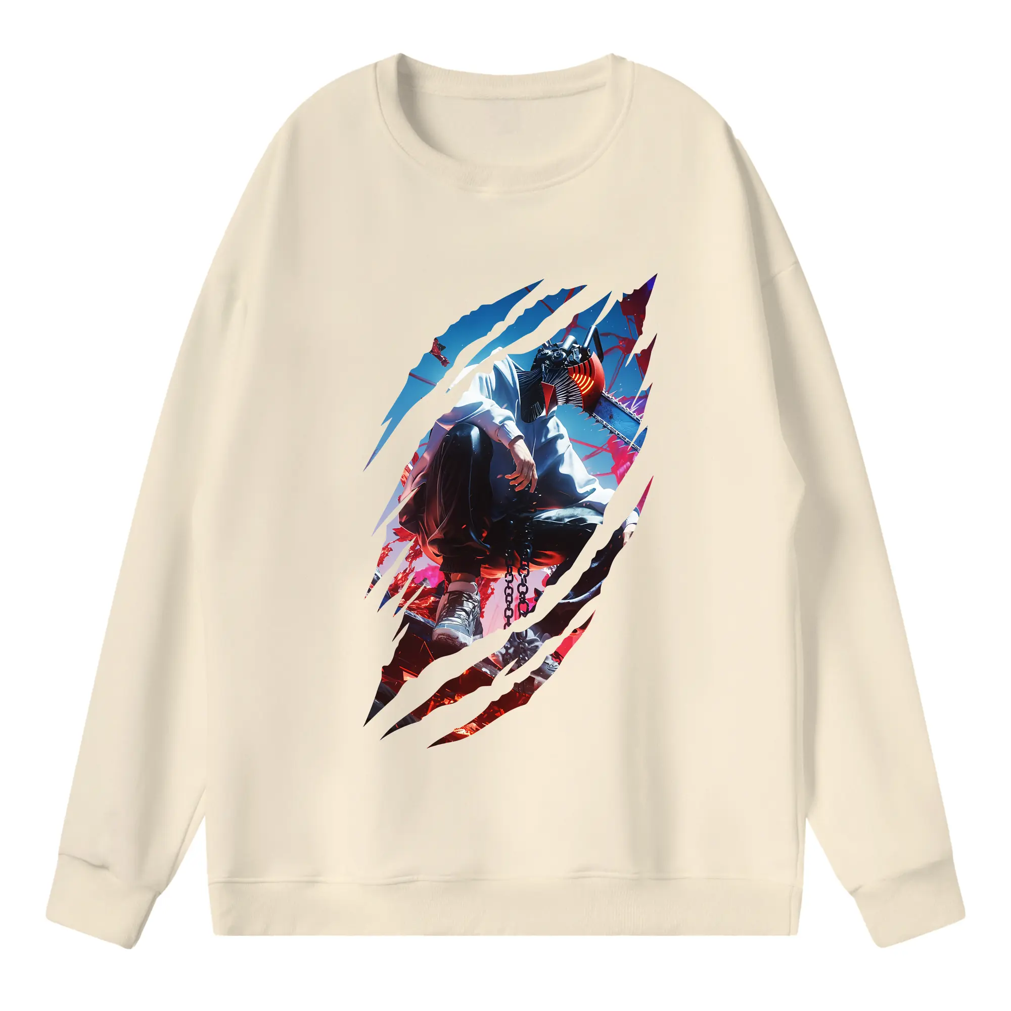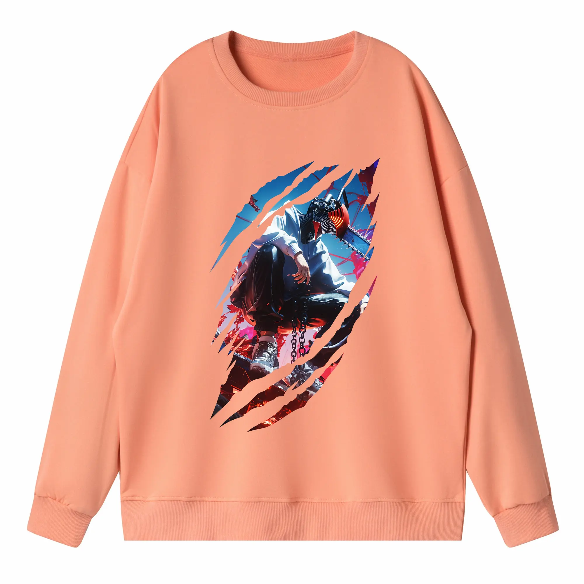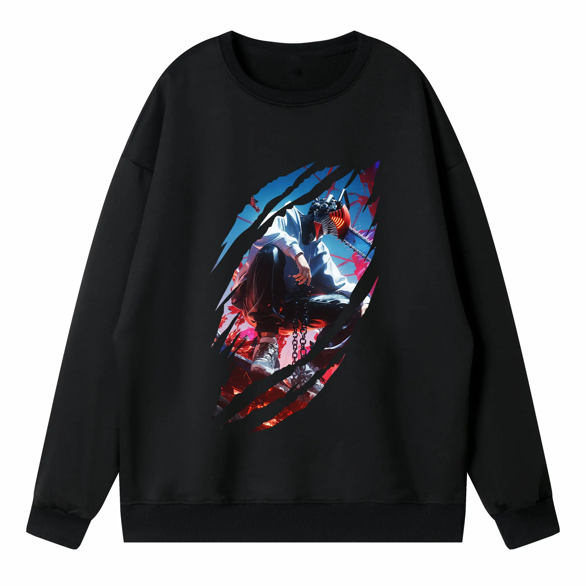 チェンソーマン グッズ,デンジ - 高品質 クルーネック スウェット ・ コットン59% ポリエステル41% ・ ユニセックス 長袖 トレーナー ・ カジュアル デイリー スポーツ 散歩用