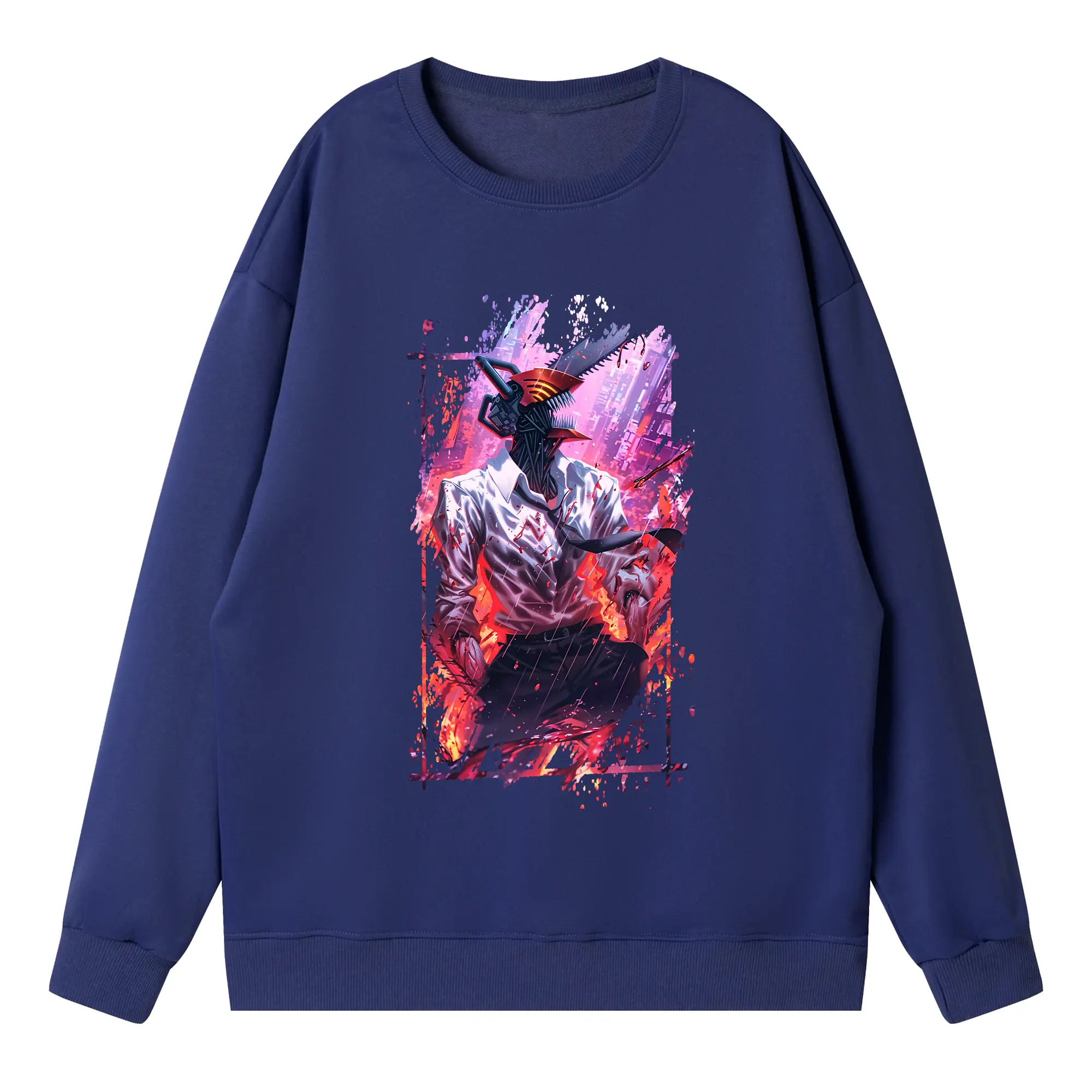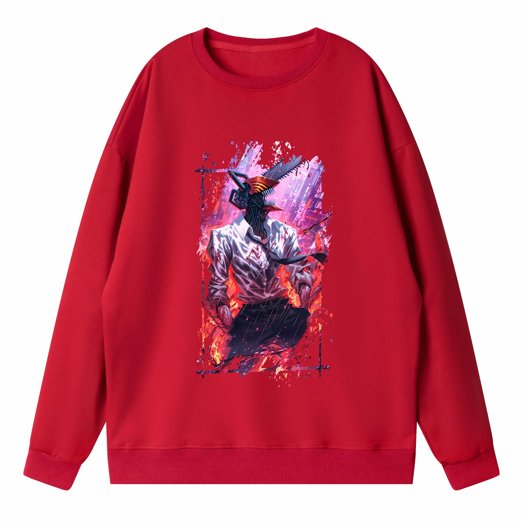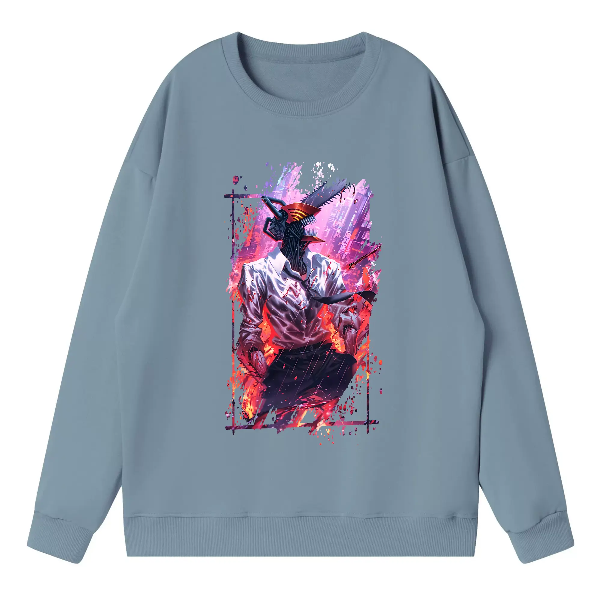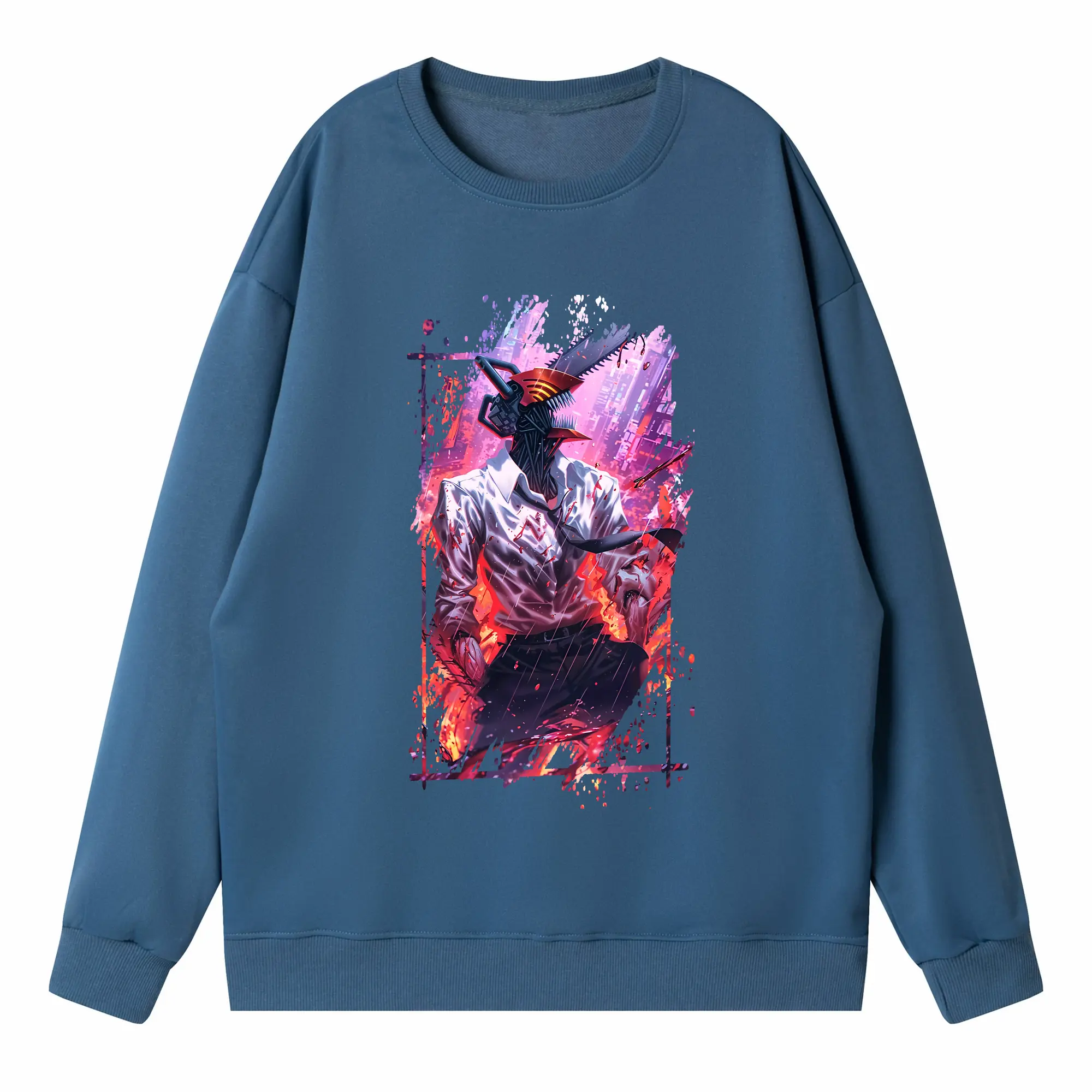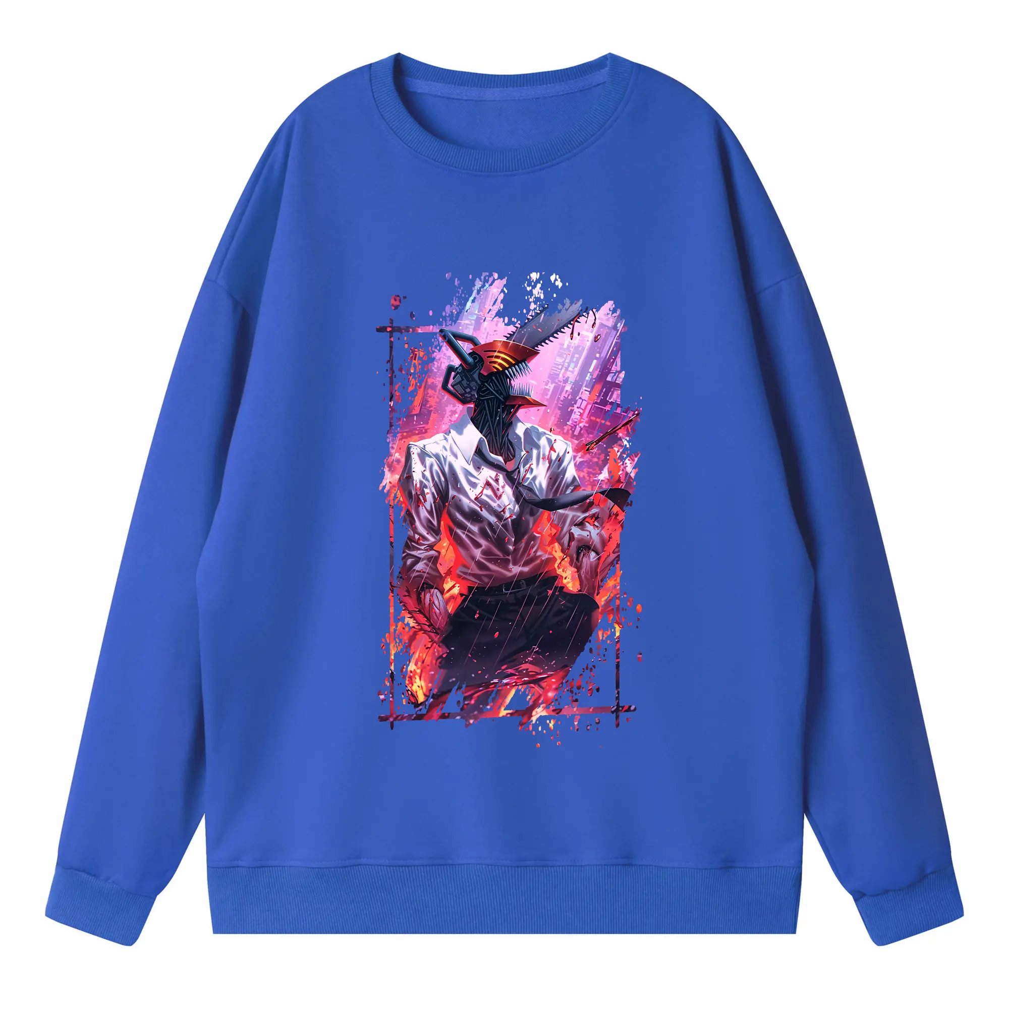 チェンソーマン グッズ,デンジ - 高品質 クルーネック スウェット ・ コットン59% ポリエステル41% ・ ユニセックス 長袖 トレーナー ・ カジュアル デイリー スポーツ 散歩用