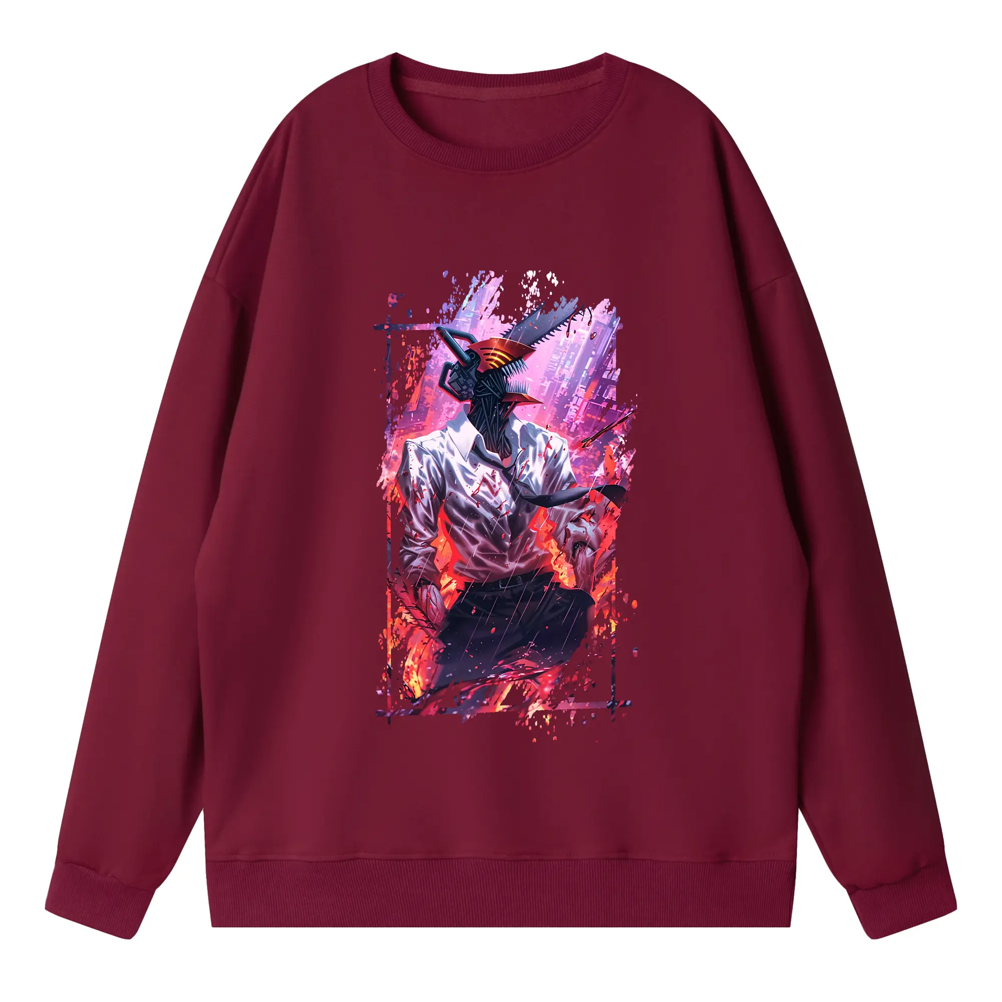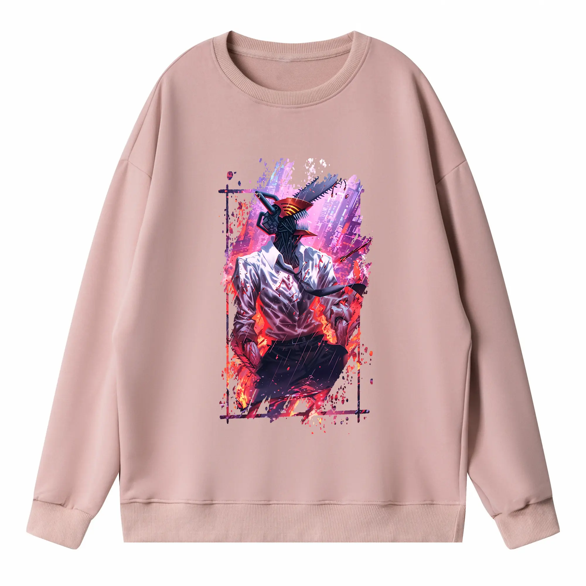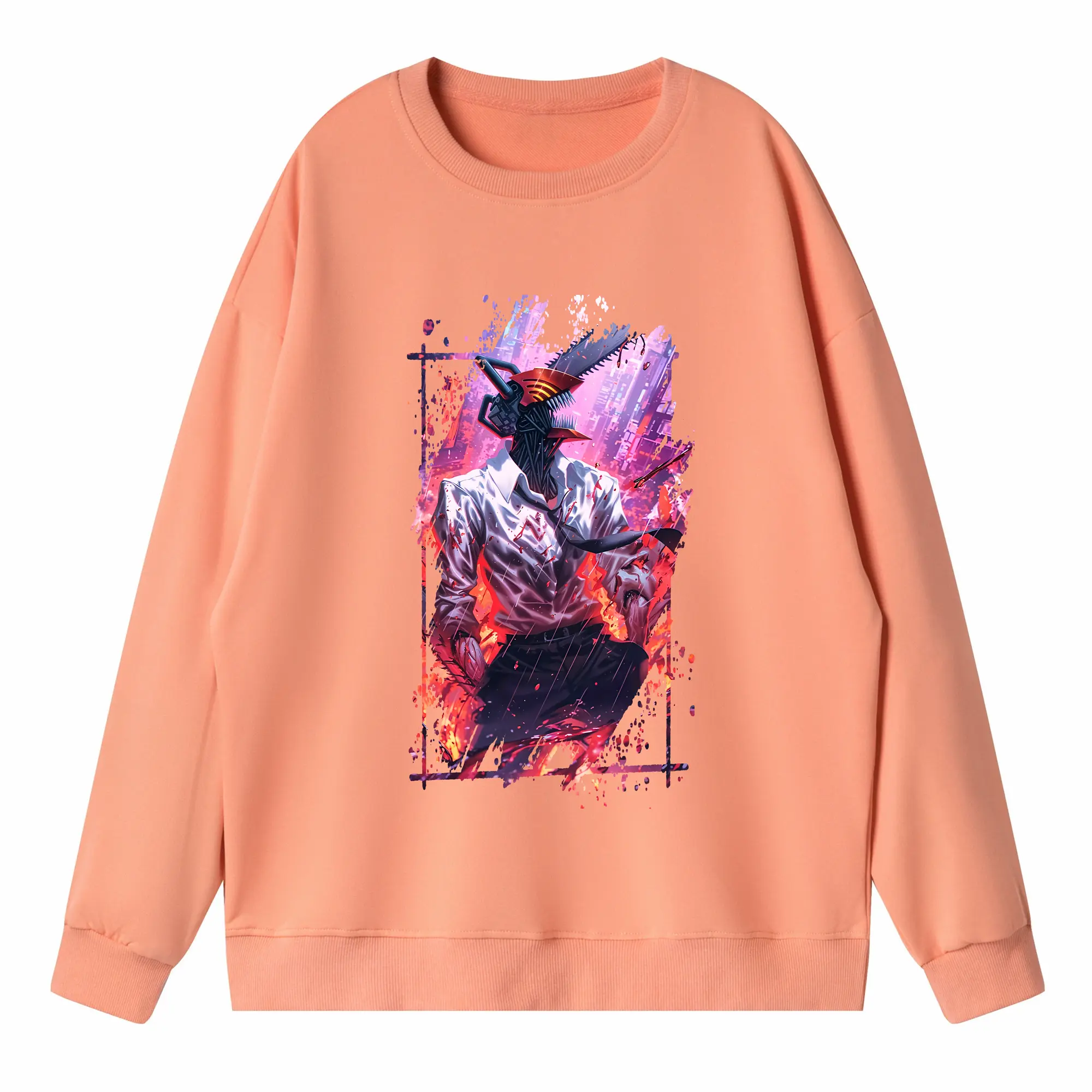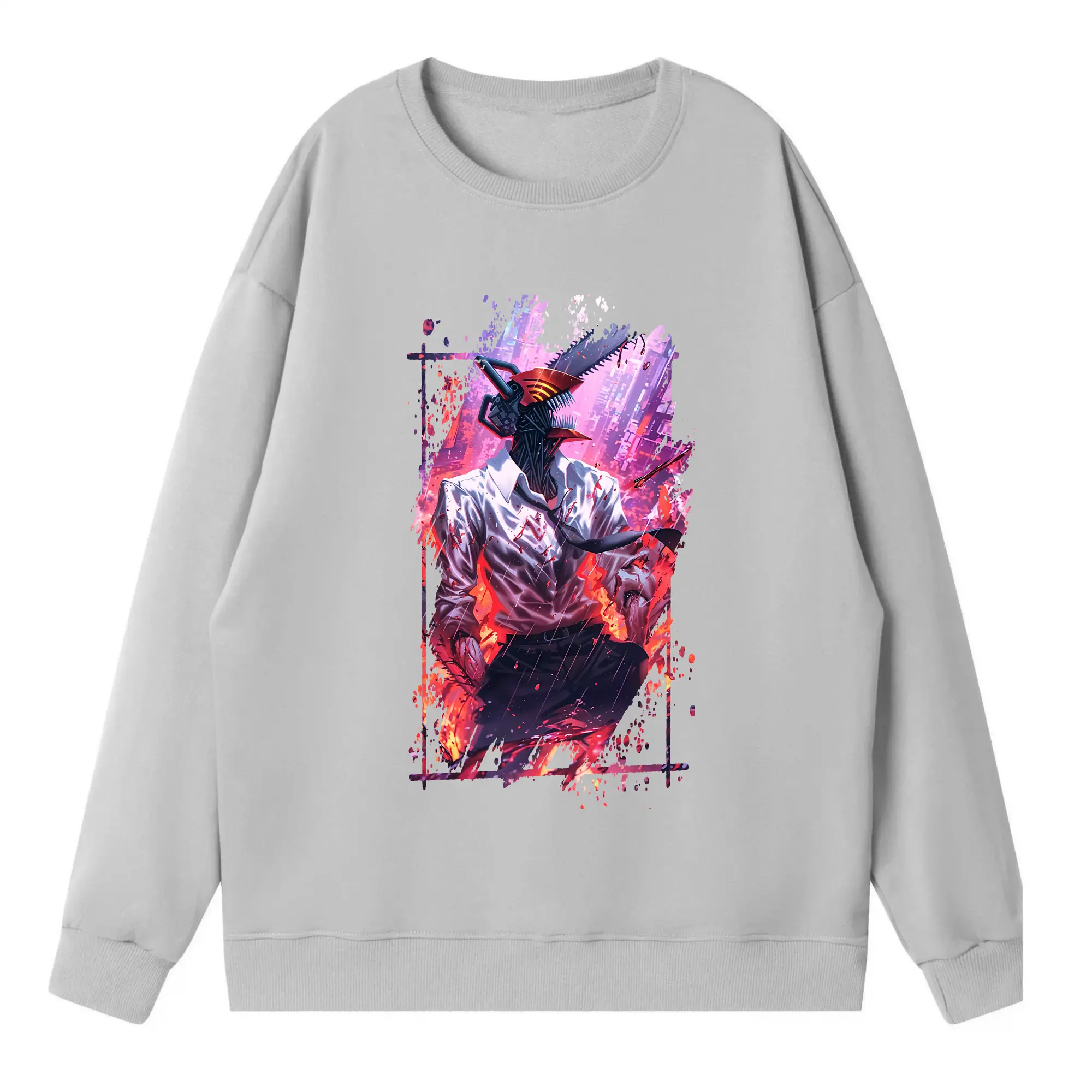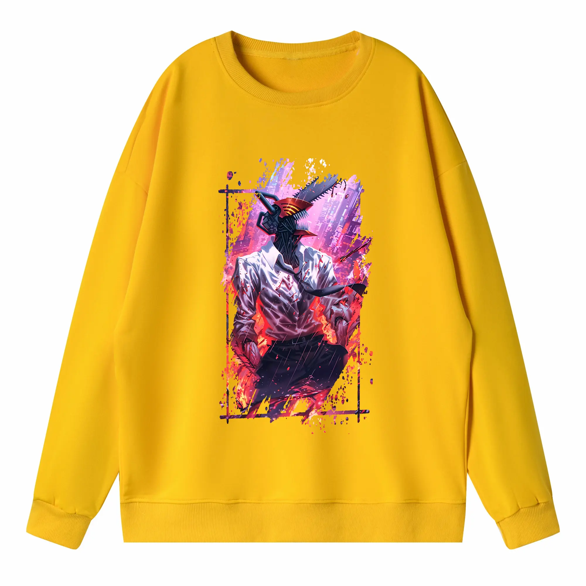 チェンソーマン グッズ,デンジ - 高品質 クルーネック スウェット ・ コットン59% ポリエステル41% ・ ユニセックス 長袖 トレーナー ・ カジュアル デイリー スポーツ 散歩用