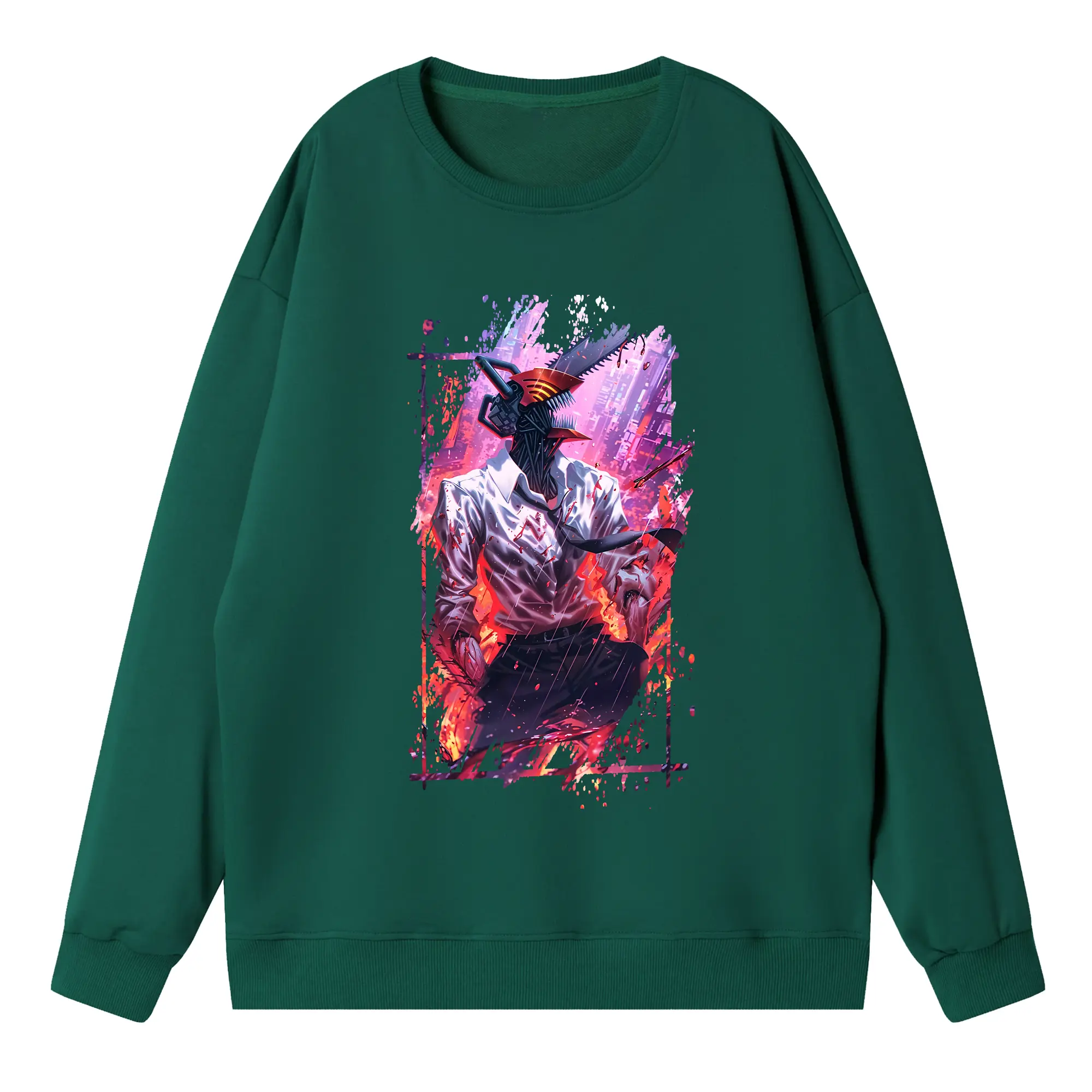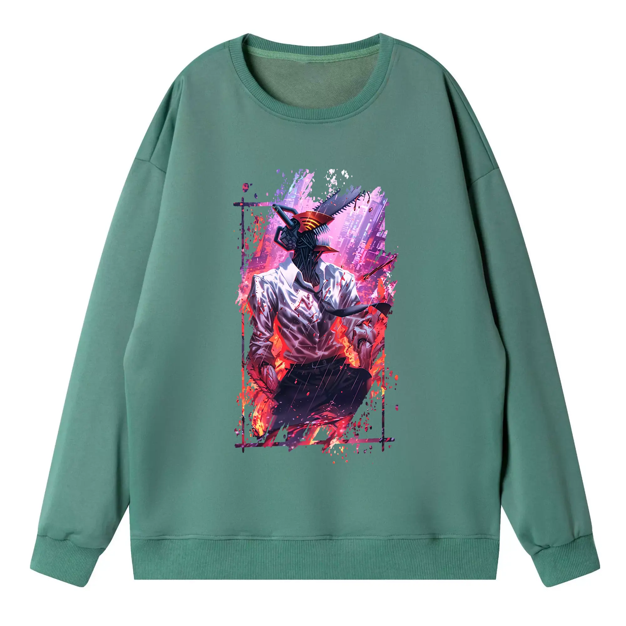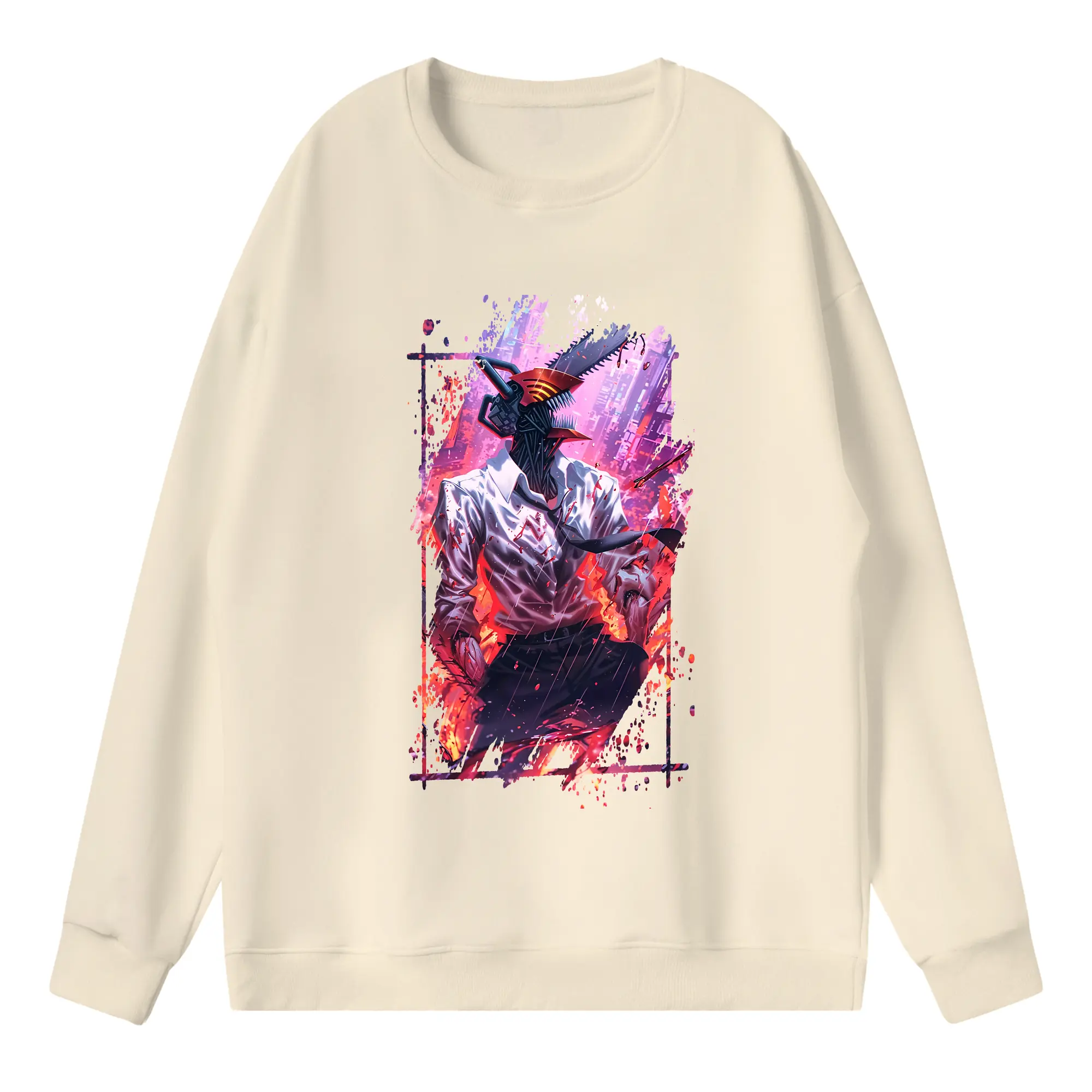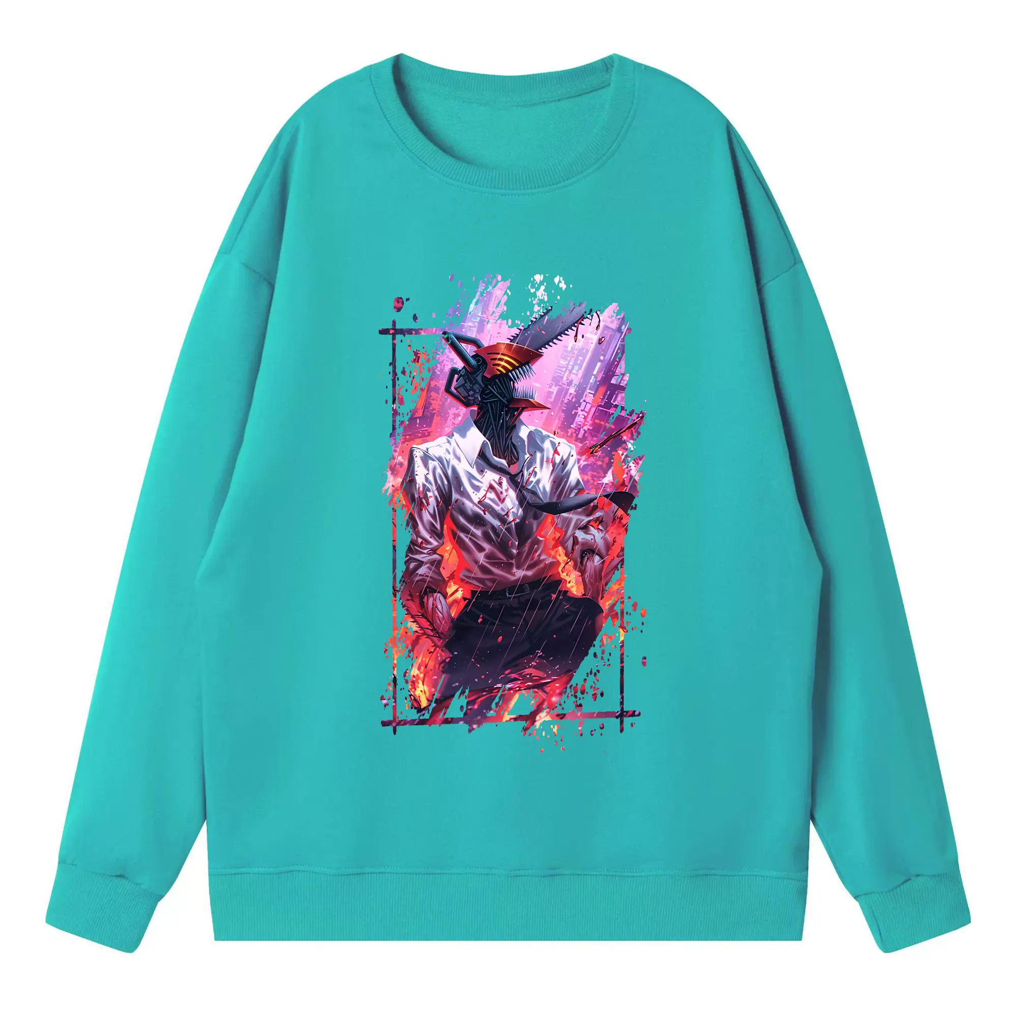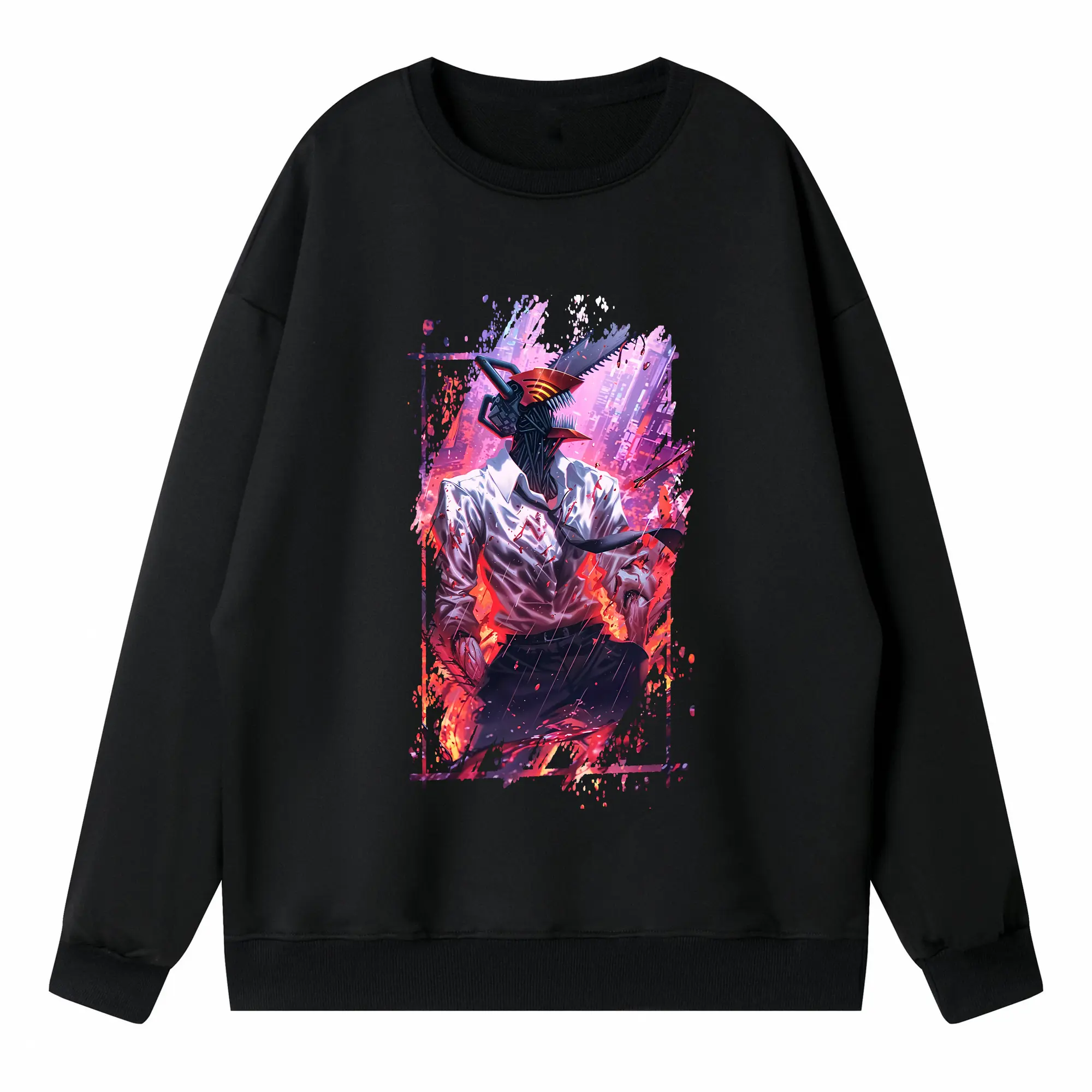 チェンソーマン グッズ,デンジ - 高品質 クルーネック スウェット ・ コットン59% ポリエステル41% ・ ユニセックス 長袖 トレーナー ・ カジュアル デイリー スポーツ 散歩用