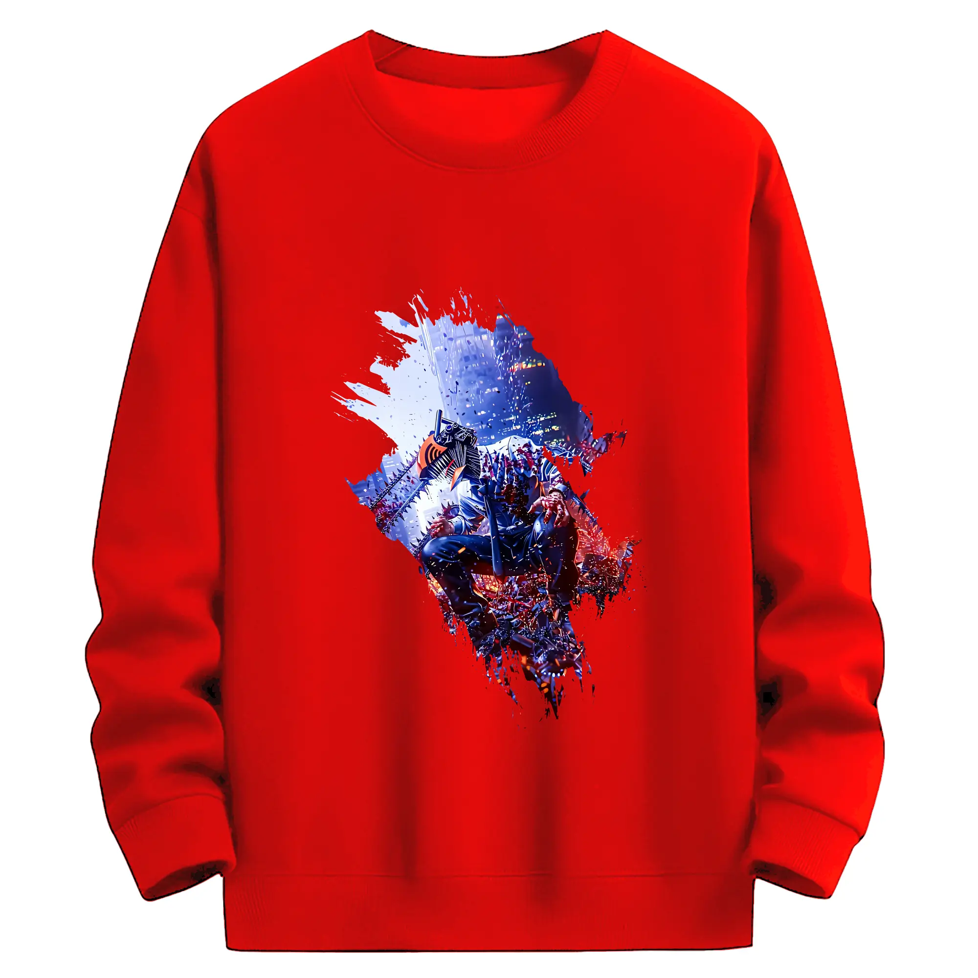 チェンソーマン グッズ,デンジ - 高品質 クルーネック スウェット ・ コットン59% ポリエステル41% ・ ユニセックス 長袖 トレーナー ・ カジュアル デイリー スポーツ 散歩用