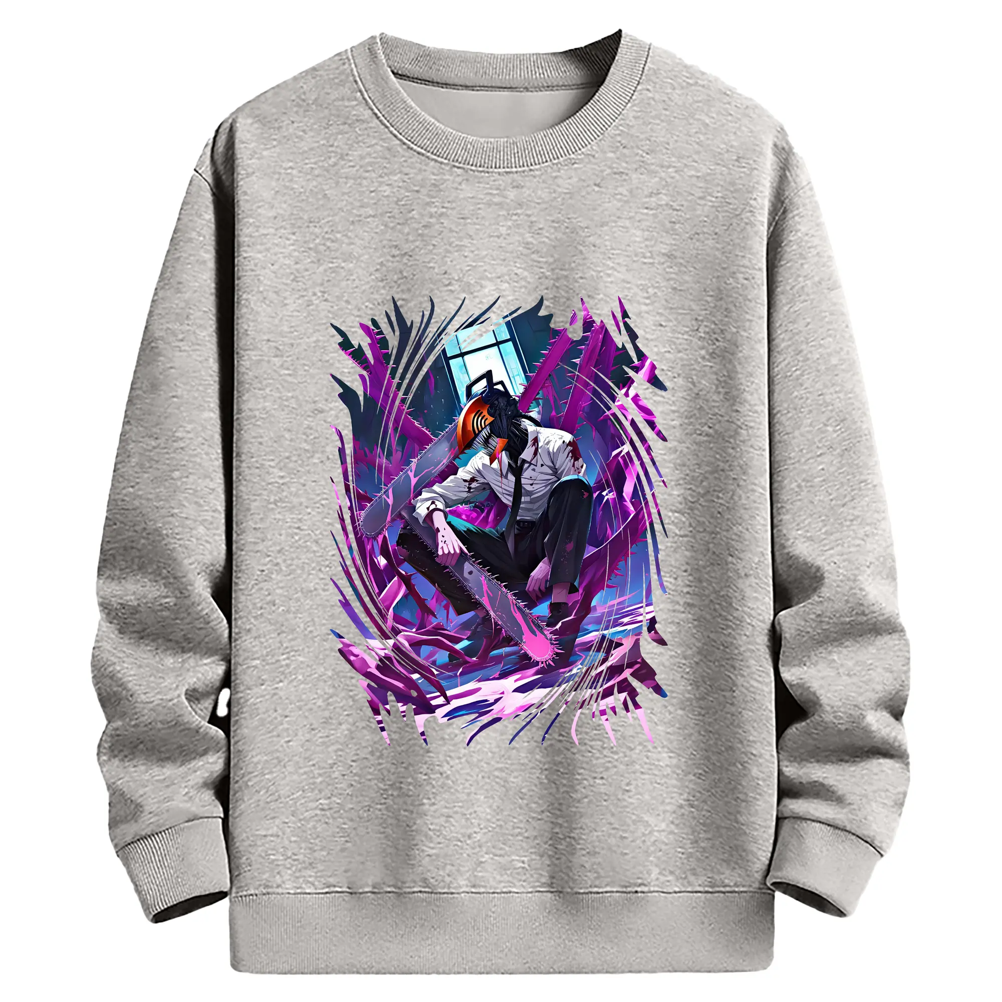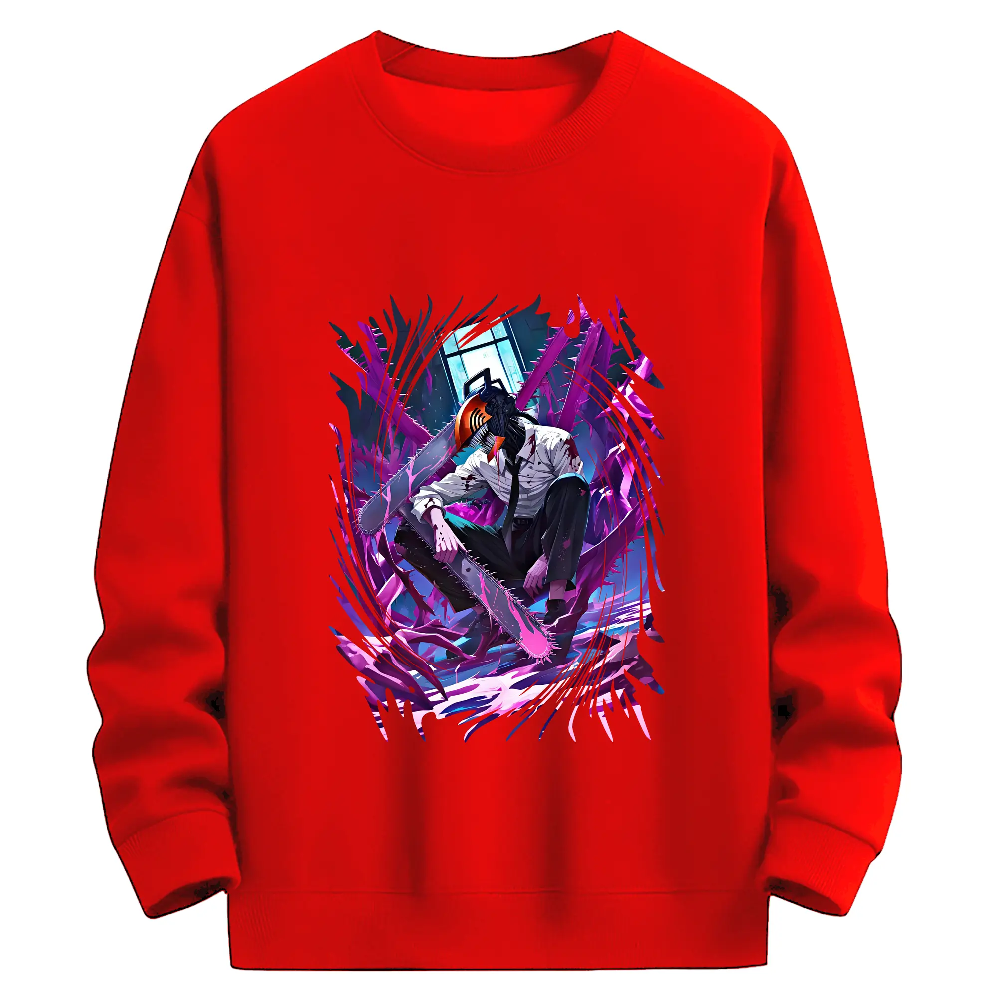 チェンソーマン グッズ,デンジ - 高品質 クルーネック スウェット ・ コットン59% ポリエステル41% ・ ユニセックス 長袖 トレーナー ・ カジュアル デイリー スポーツ 散歩用