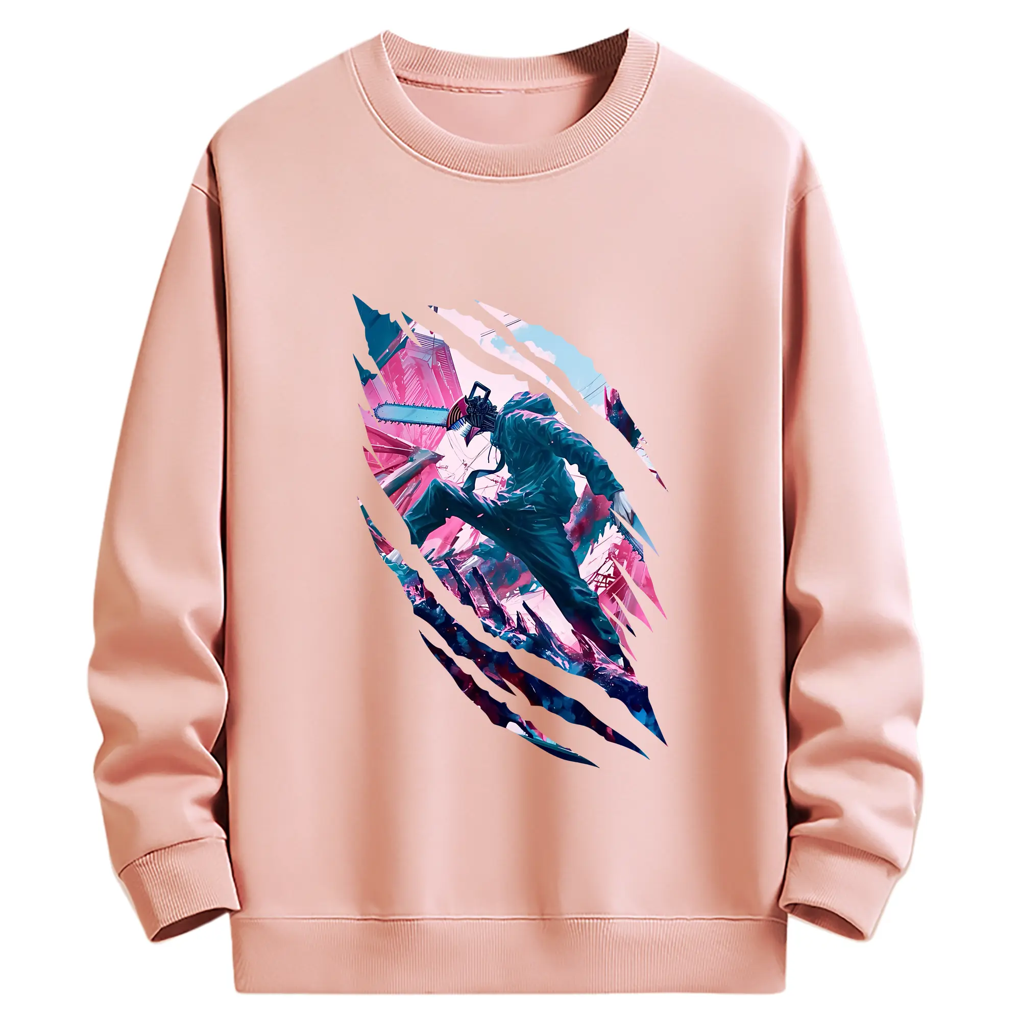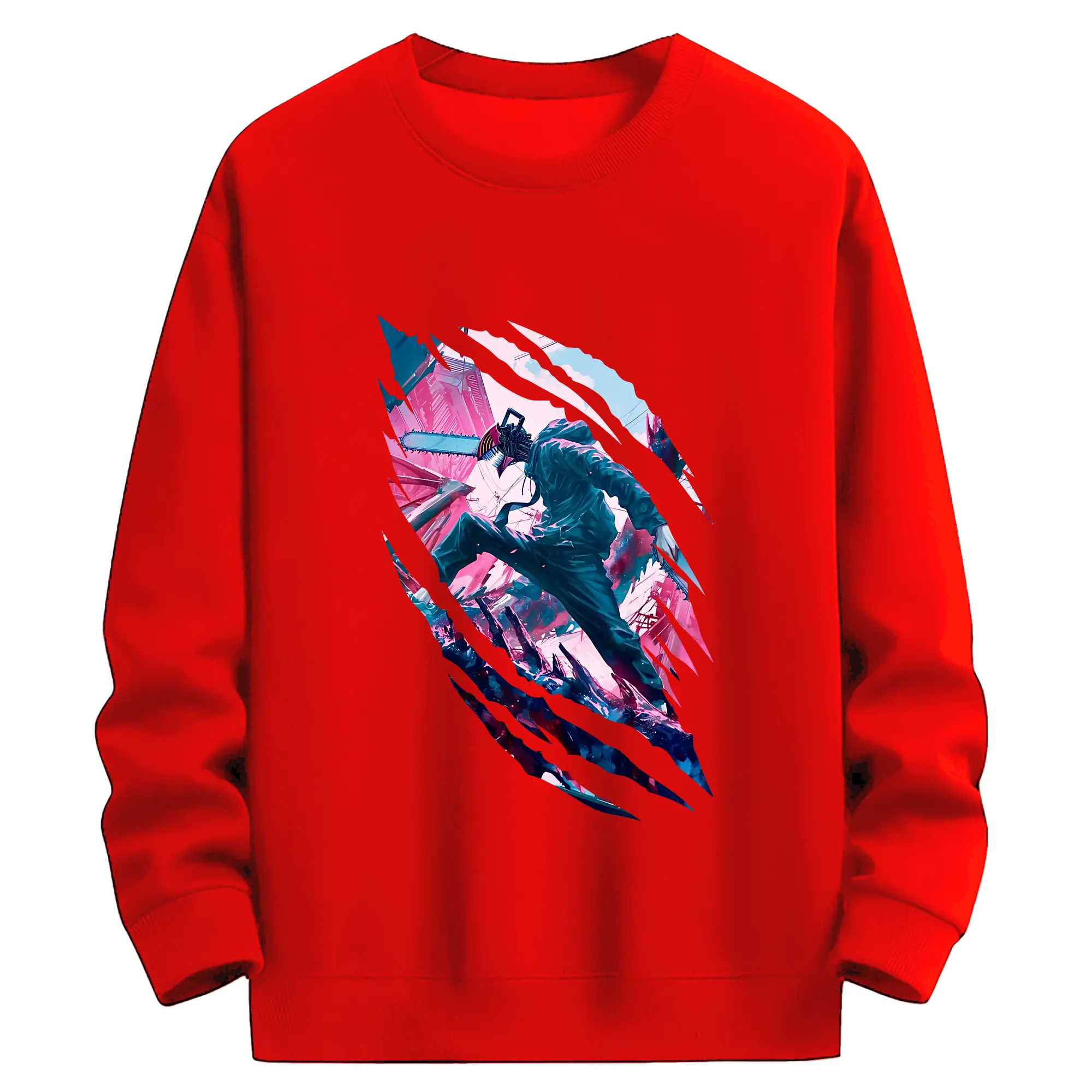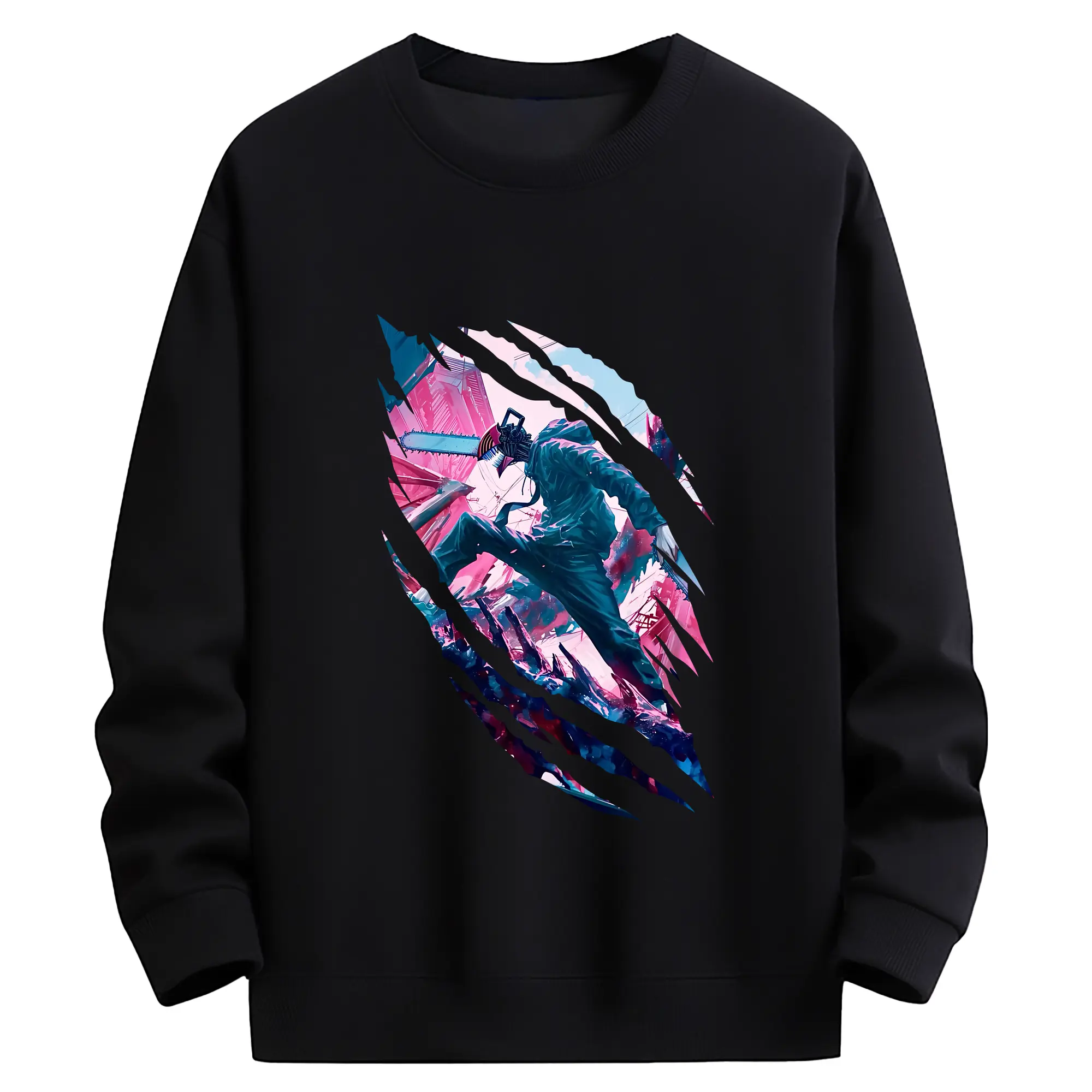 チェンソーマン グッズ,デンジ - 高品質 クルーネック スウェット ・ コットン59% ポリエステル41% ・ ユニセックス 長袖 トレーナー ・ カジュアル デイリー スポーツ 散歩用