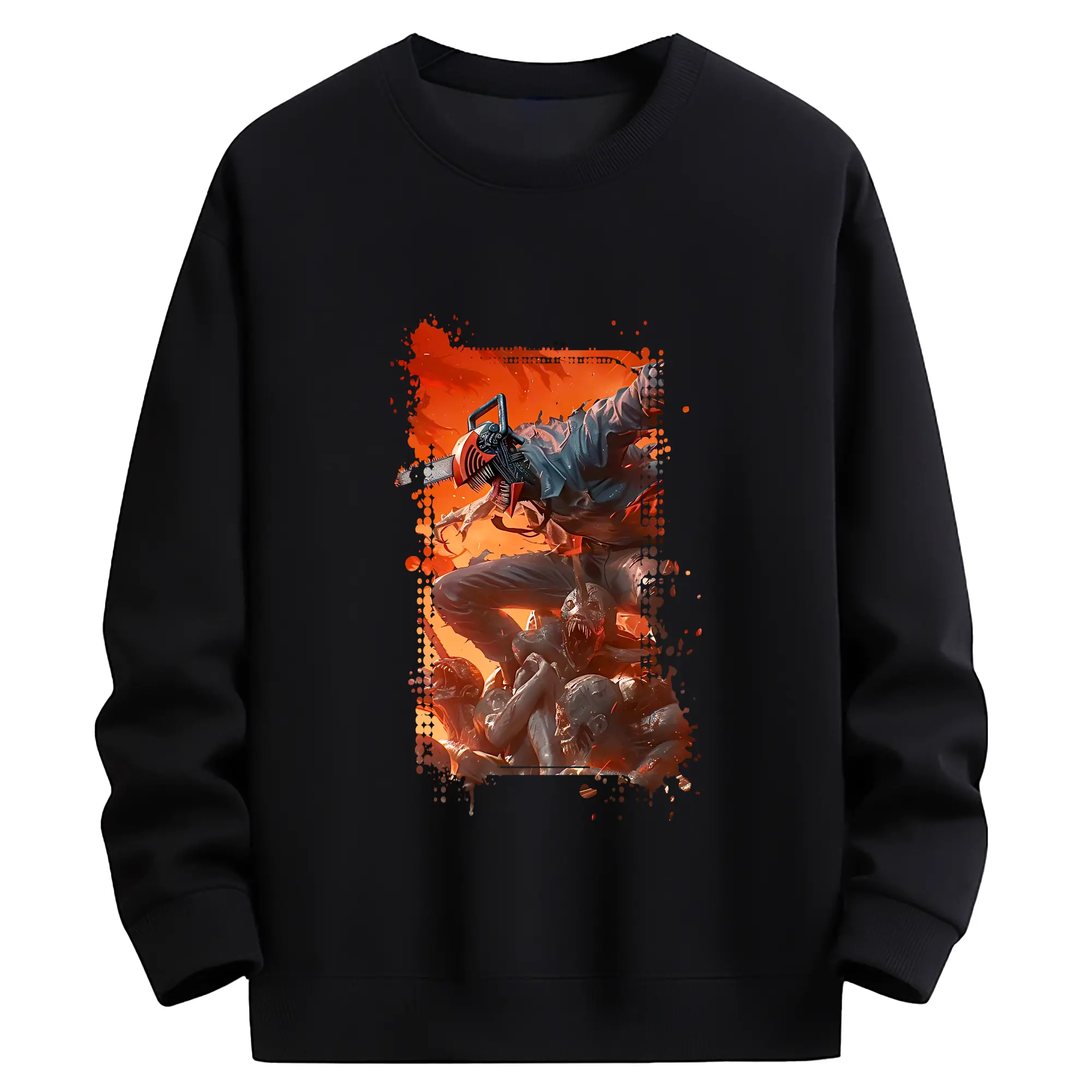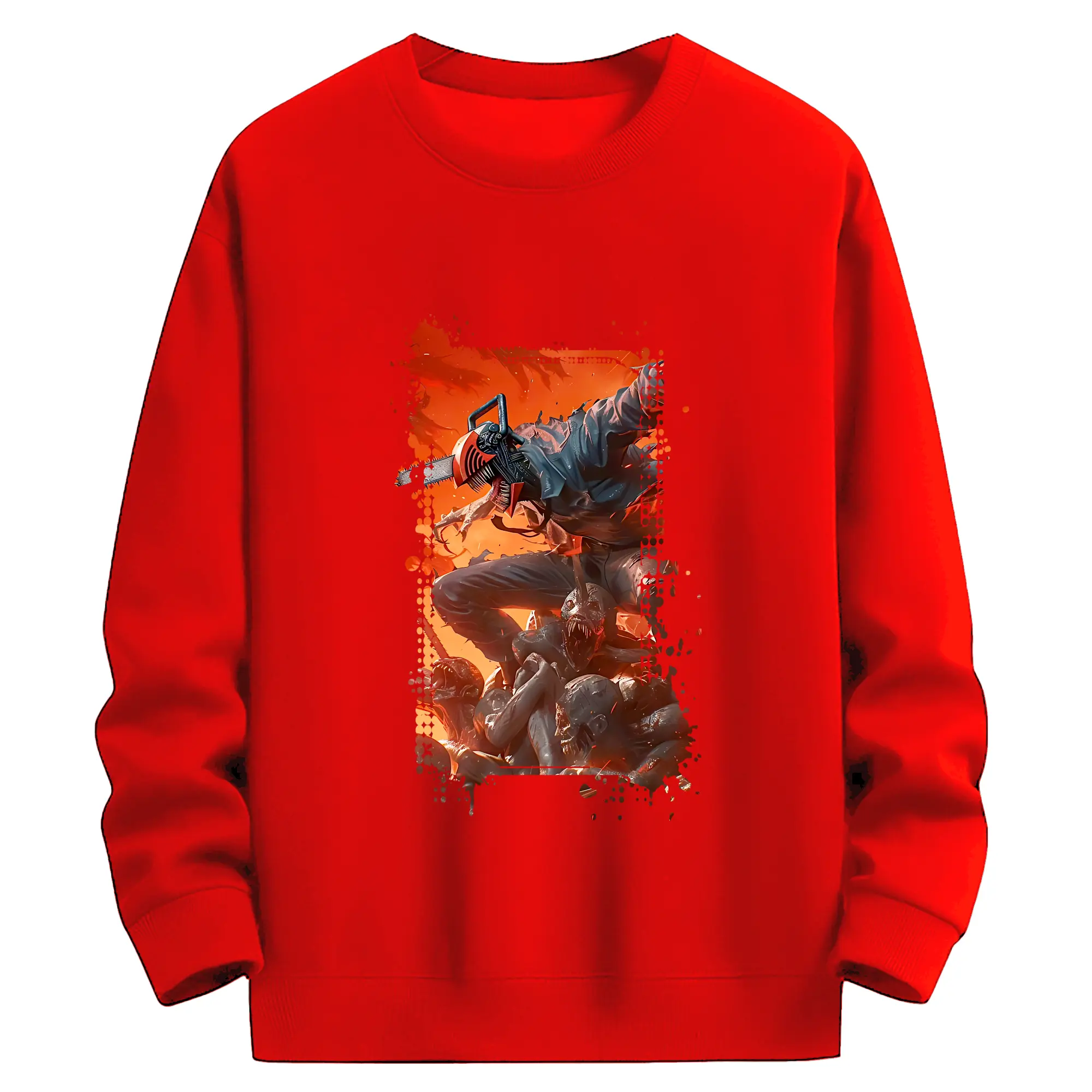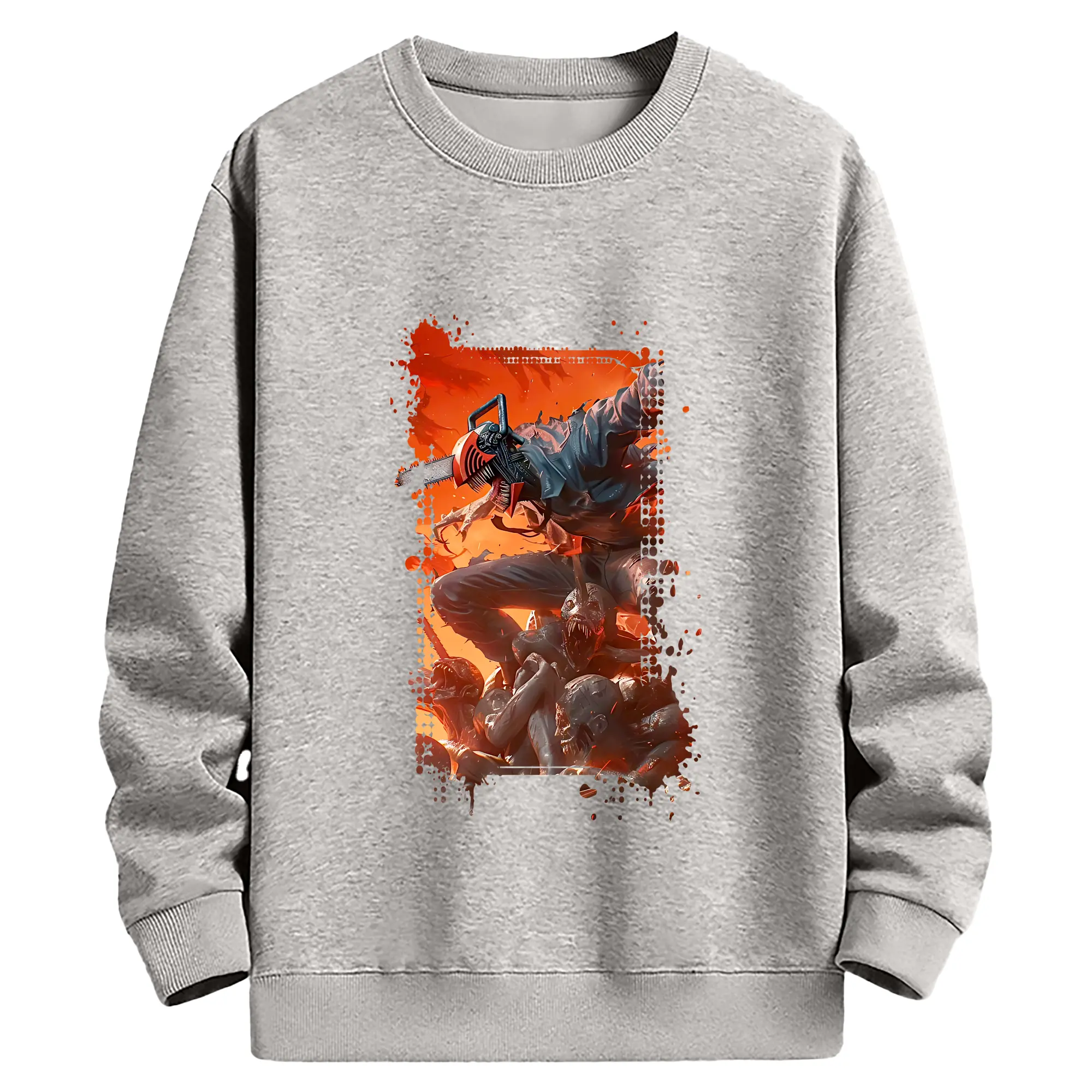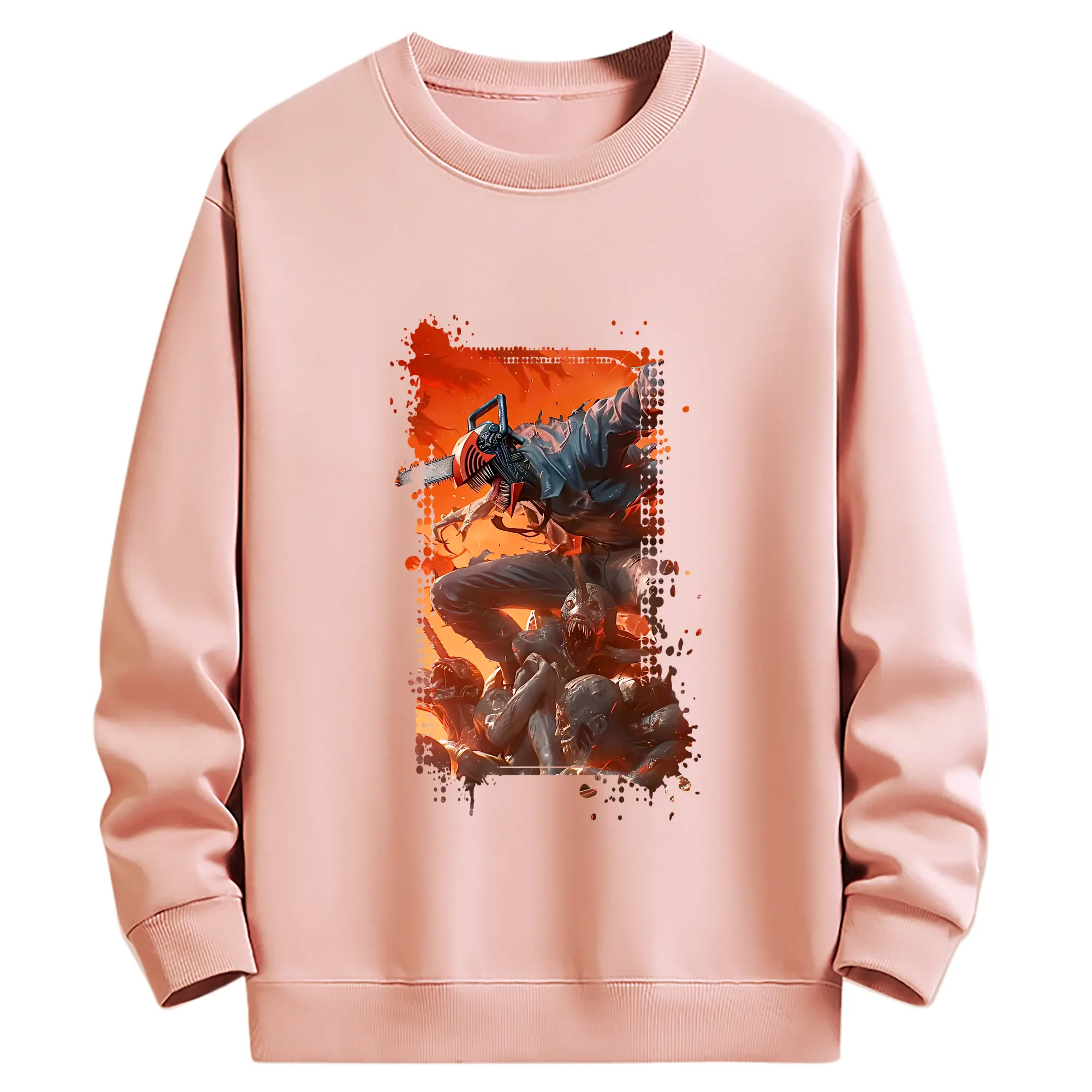 チェンソーマン グッズ,デンジ - 高品質 クルーネック スウェット ・ コットン59% ポリエステル41% ・ ユニセックス 長袖 トレーナー ・ カジュアル デイリー スポーツ 散歩用
