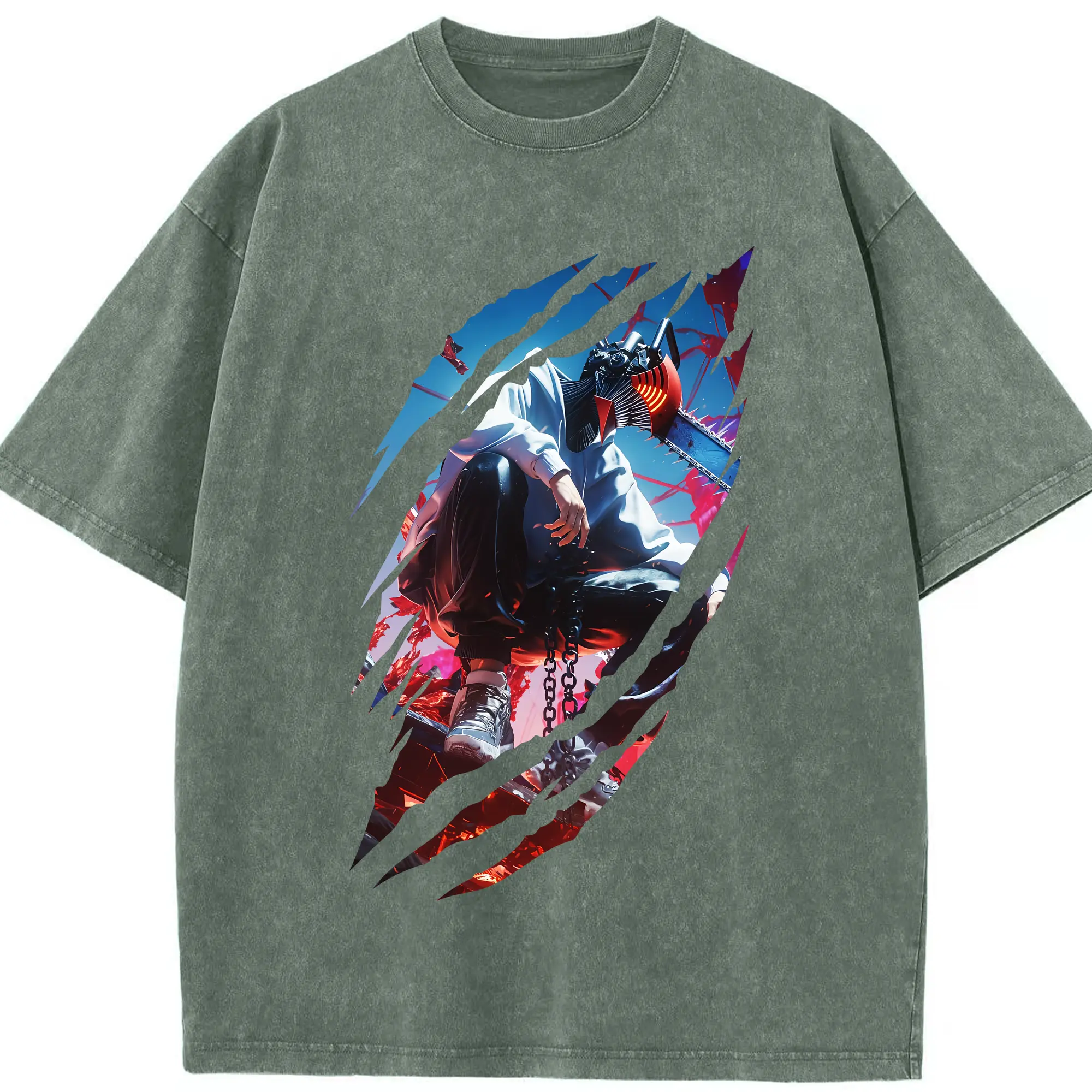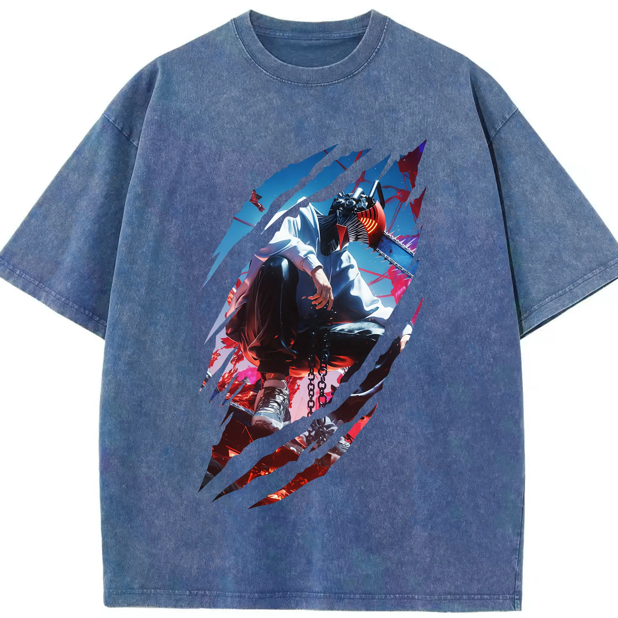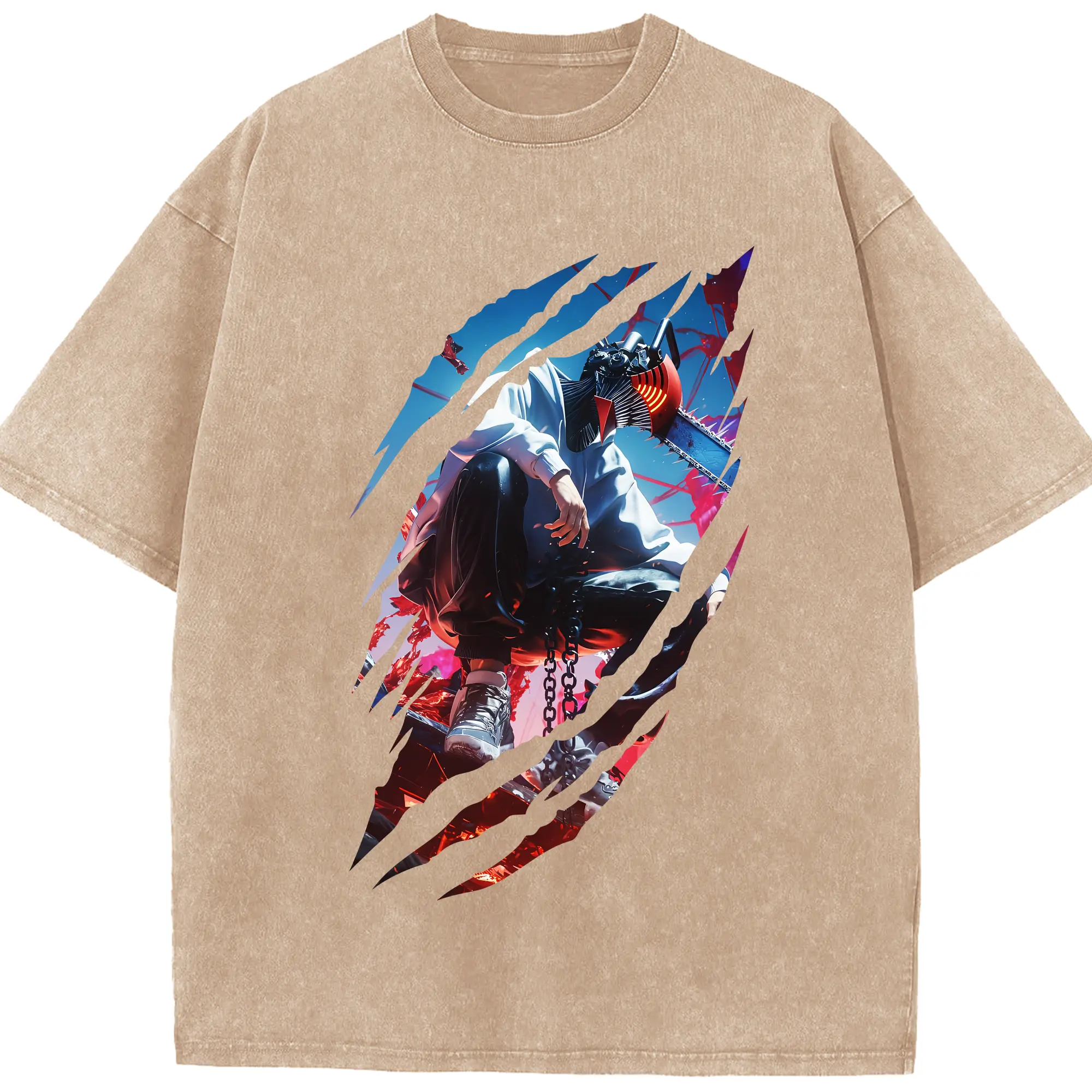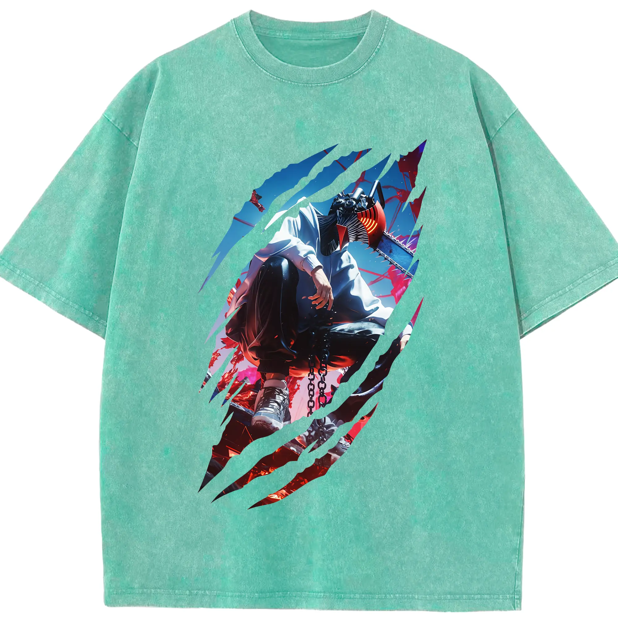 チェンソーマン グッズ,デンジ - 綿100% ヴィンテージ風 半袖Tシャツ ・ 背面プリント ・ 柔らか肌触り ・ 通気性 快適 ・ スポーツ カジュアル 外出用
