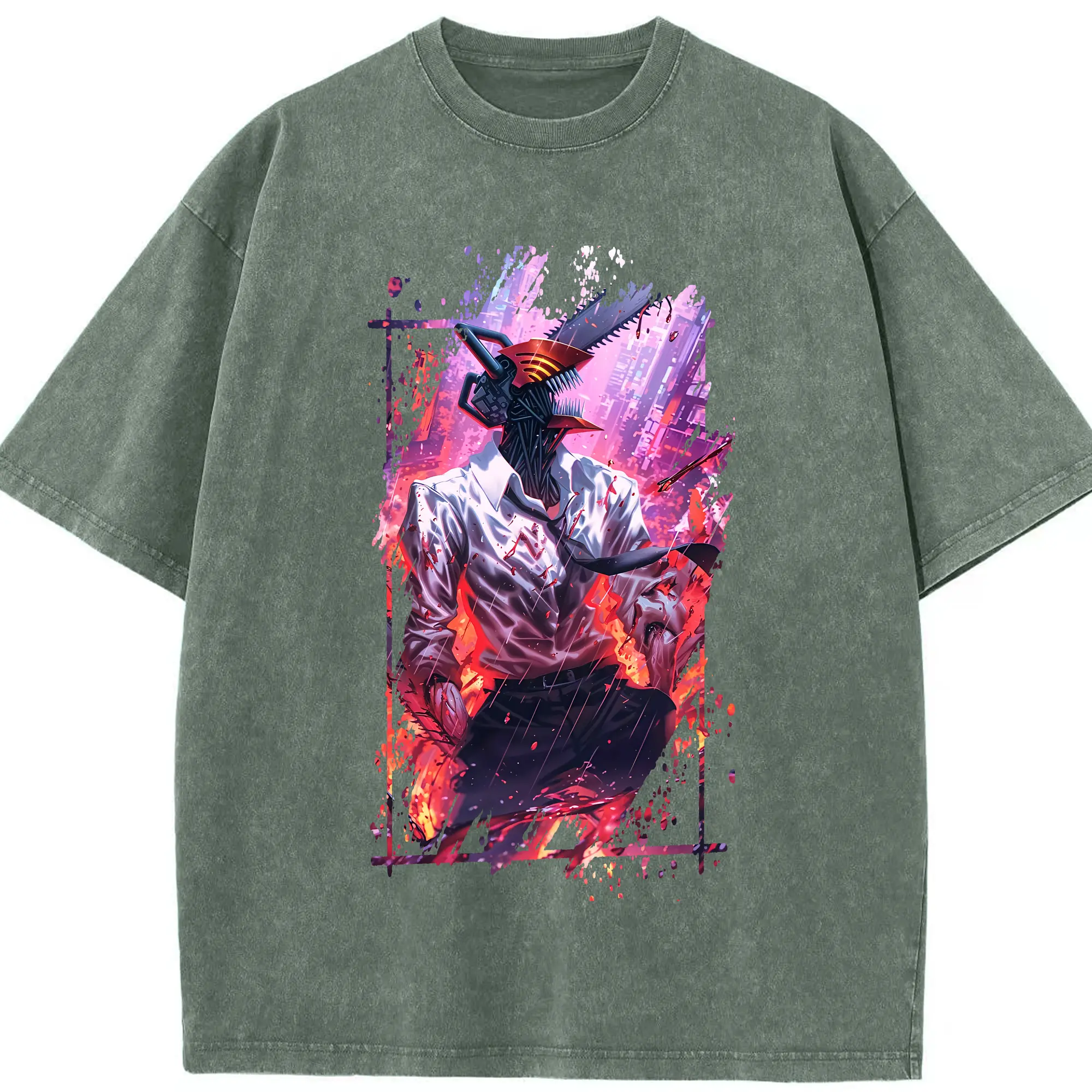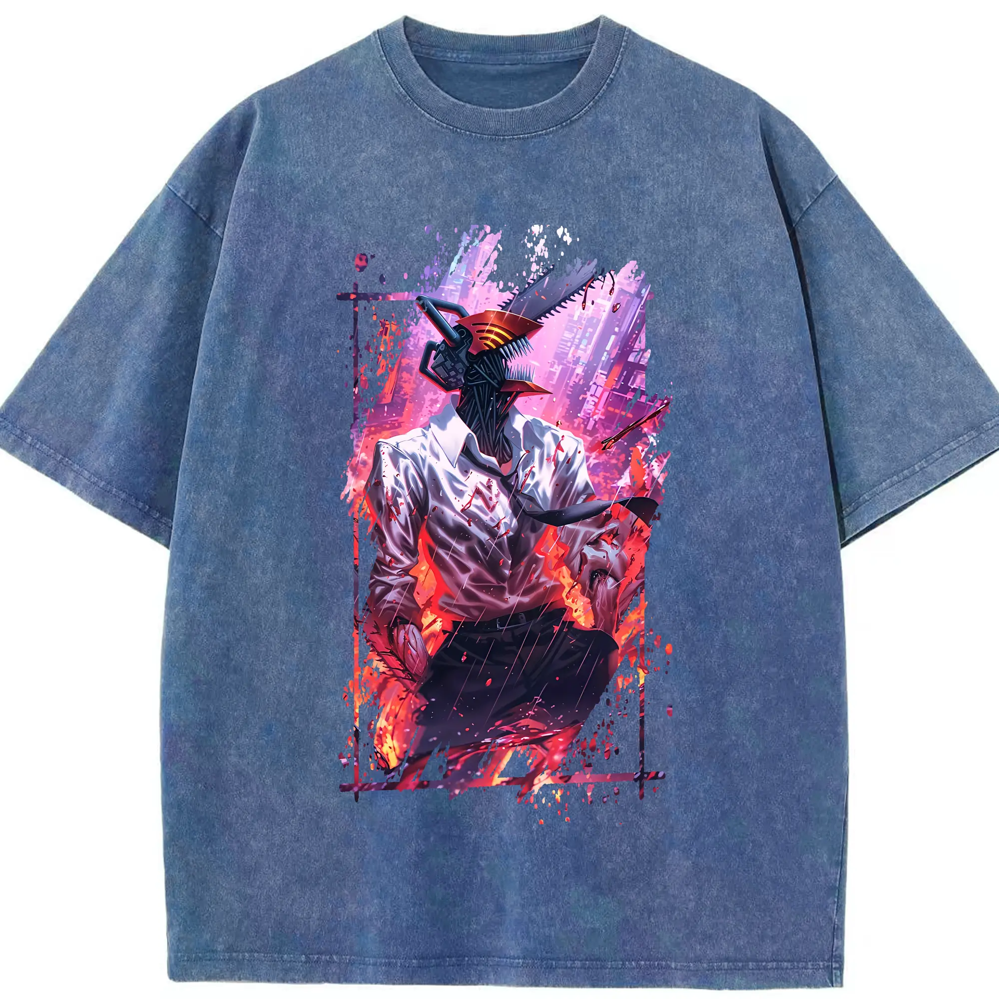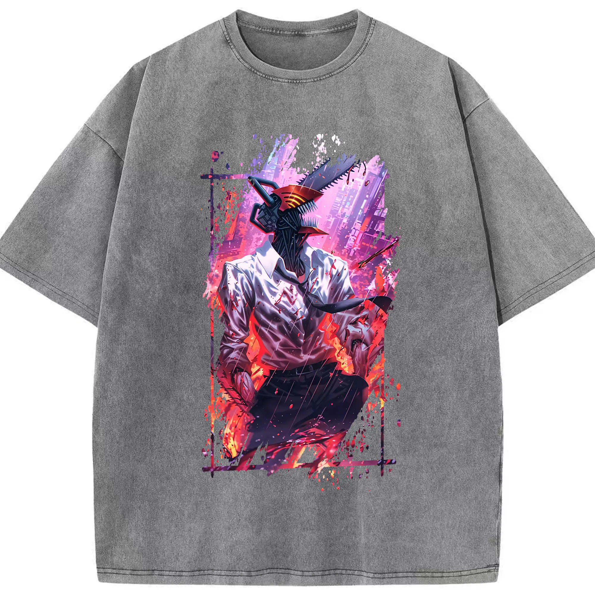 チェンソーマン グッズ,デンジ - 綿100% ヴィンテージ風 半袖Tシャツ ・ 背面プリント ・ 柔らか肌触り ・ 通気性 快適 ・ スポーツ カジュアル 外出用