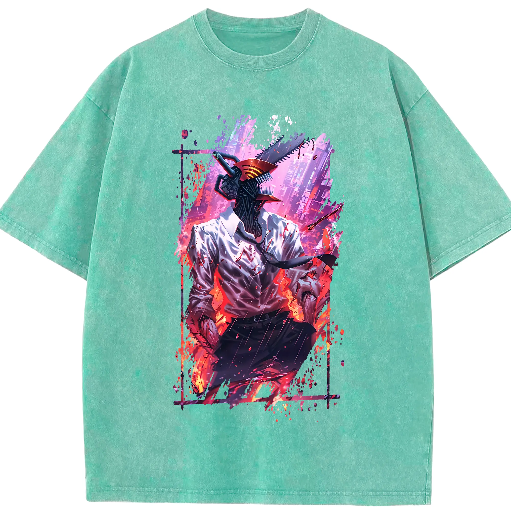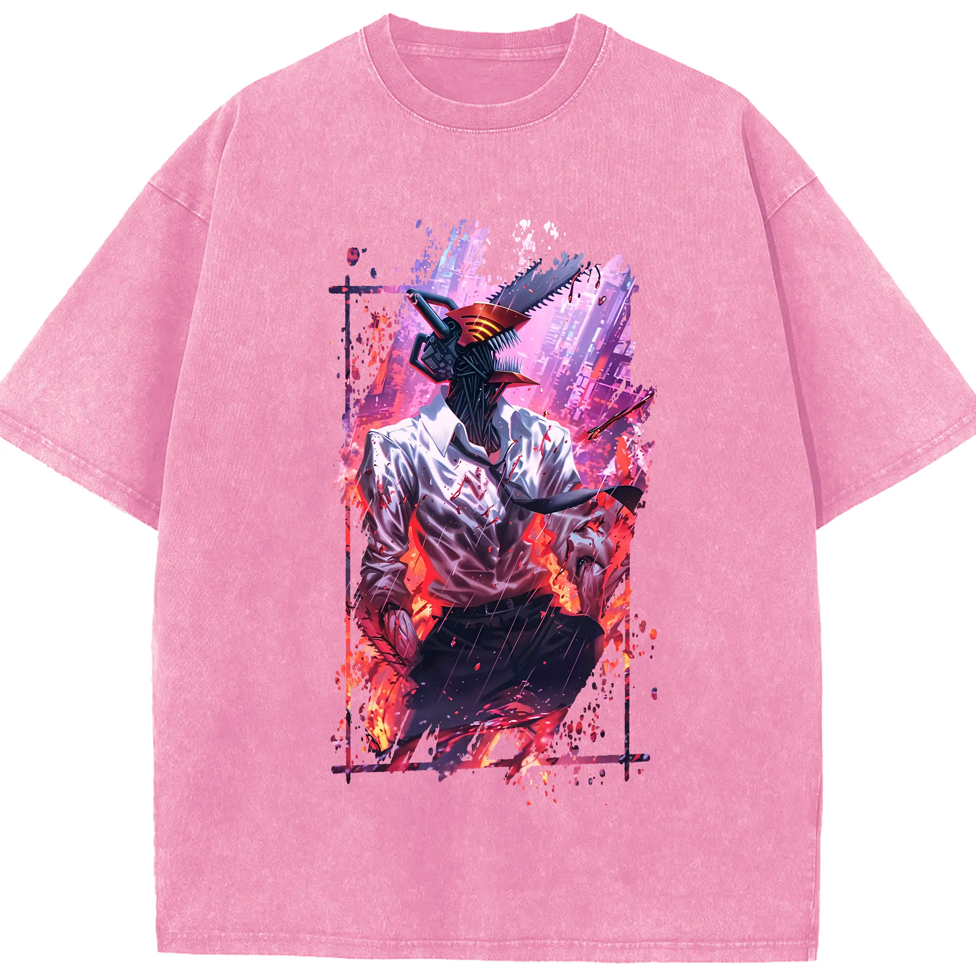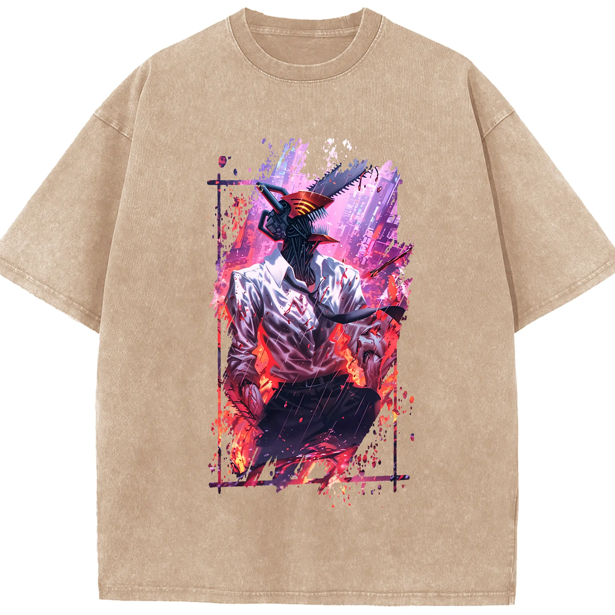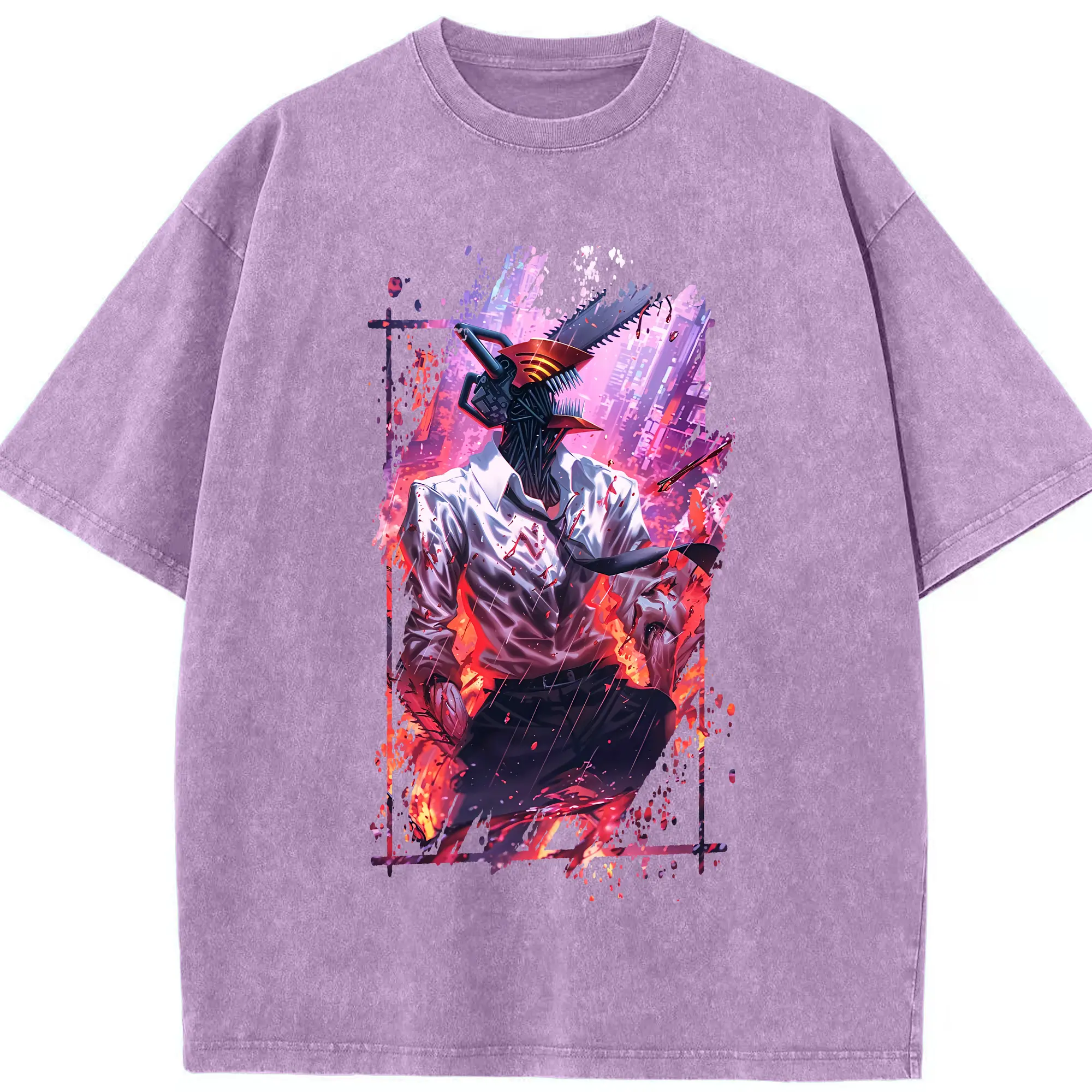 チェンソーマン グッズ,デンジ - 綿100% ヴィンテージ風 半袖Tシャツ ・ 背面プリント ・ 柔らか肌触り ・ 通気性 快適 ・ スポーツ カジュアル 外出用