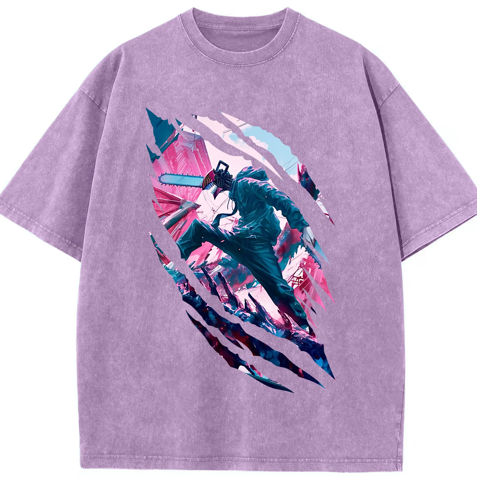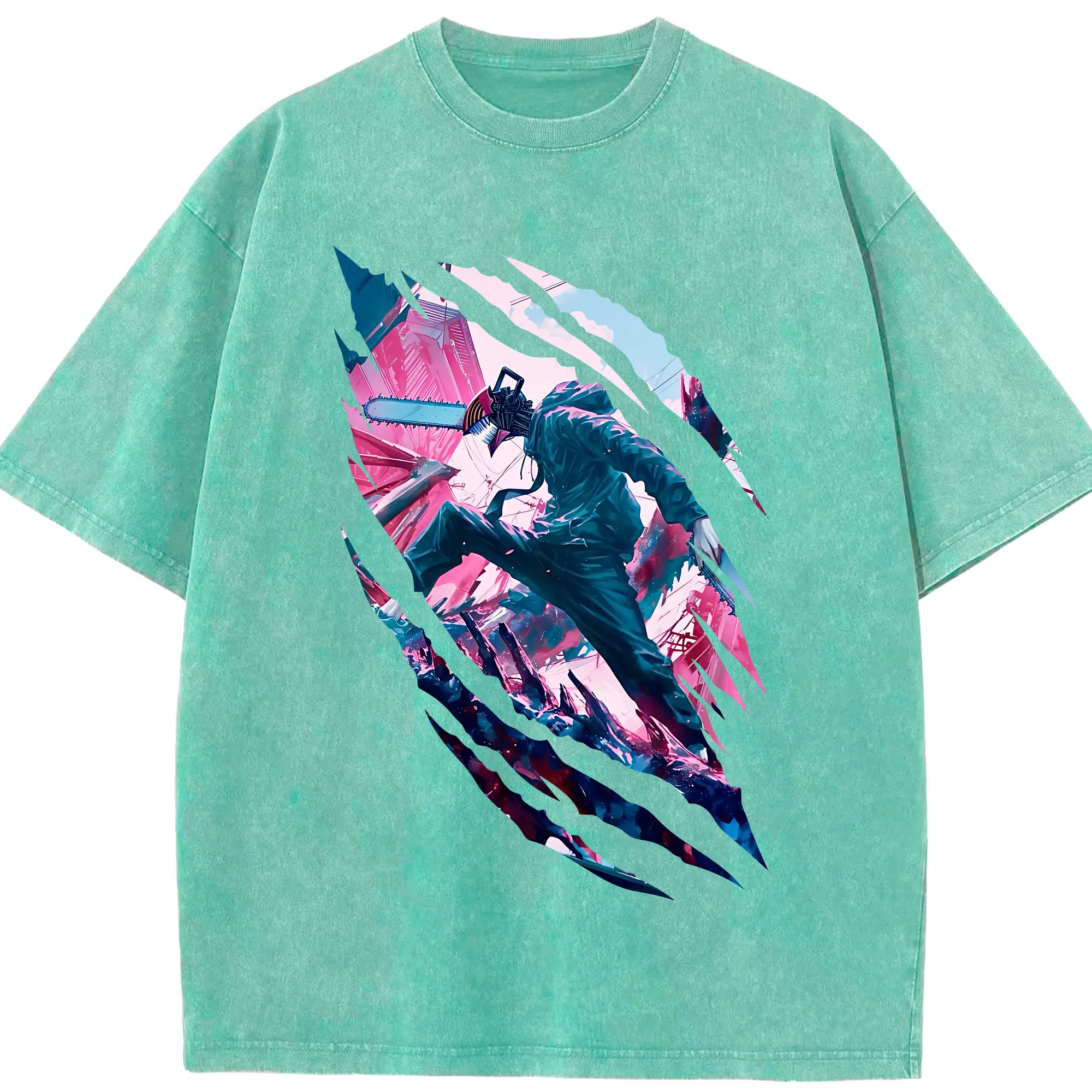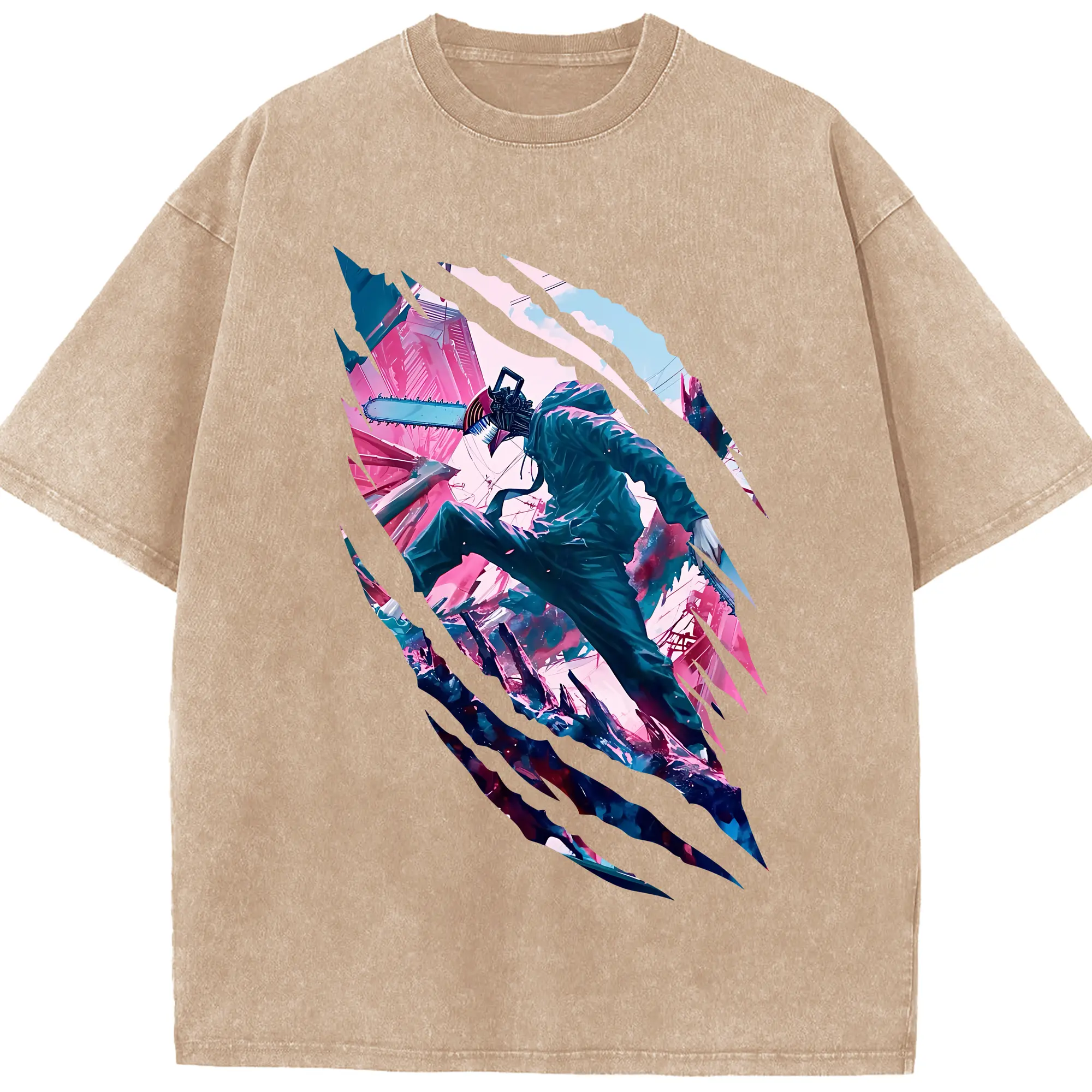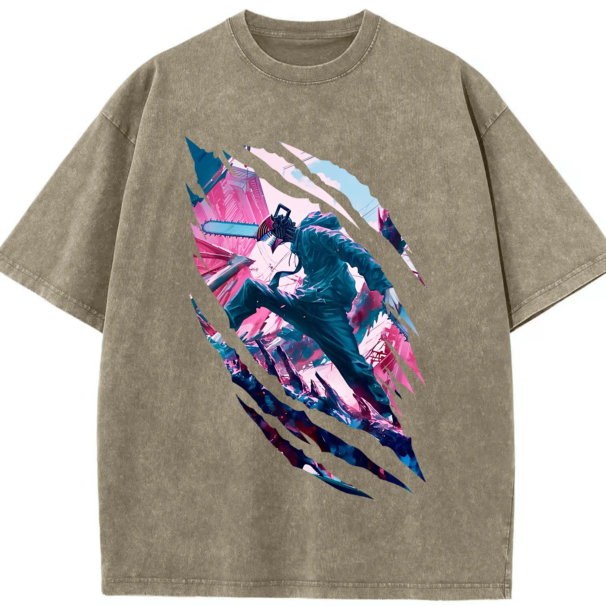 チェンソーマン グッズ,デンジ - 綿100% ヴィンテージ風 半袖Tシャツ ・ 背面プリント ・ 柔らか肌触り ・ 通気性 快適 ・ スポーツ カジュアル 外出用