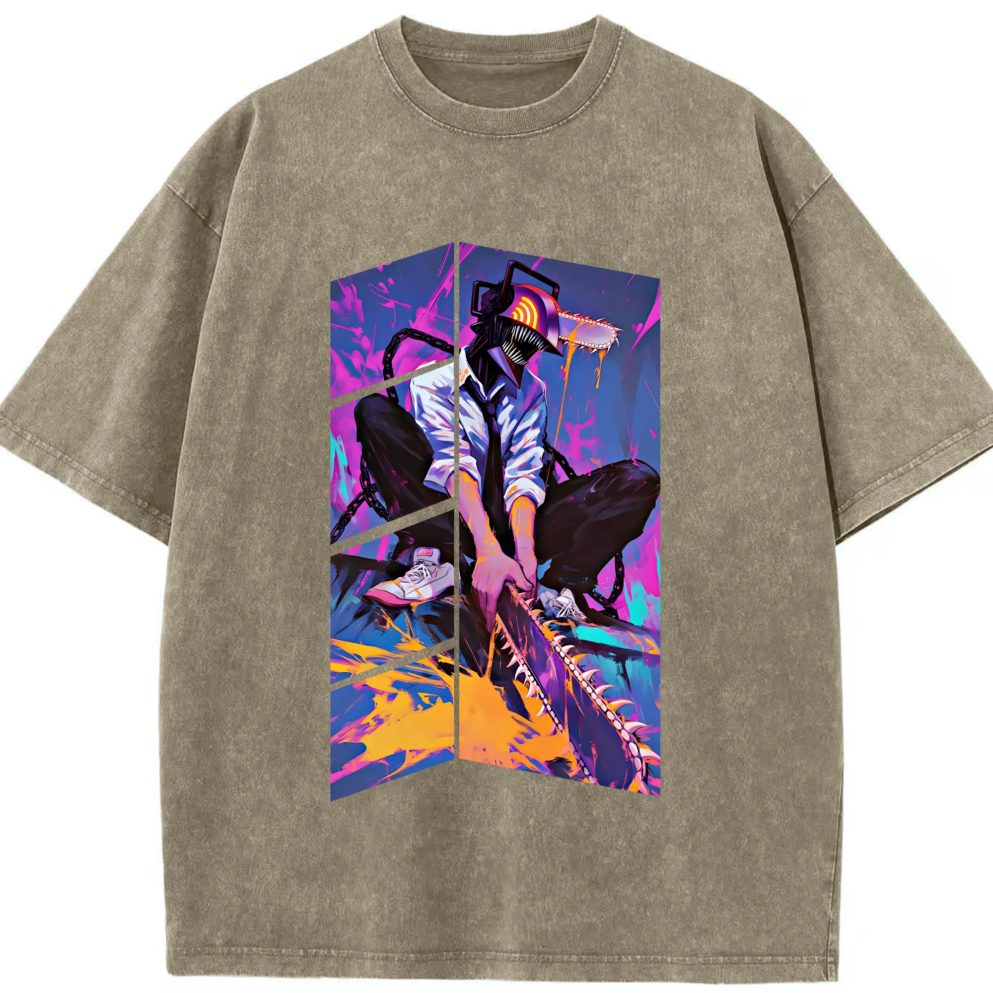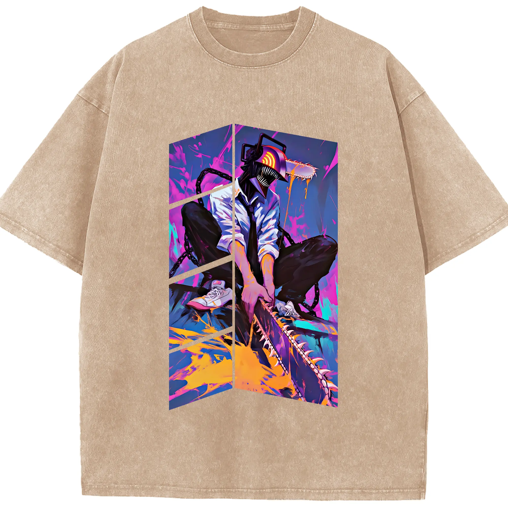 チェンソーマン グッズ,デンジ - 綿100% ヴィンテージ風 半袖Tシャツ ・ 背面プリント ・ 柔らか肌触り ・ 通気性 快適 ・ スポーツ カジュアル 外出用
