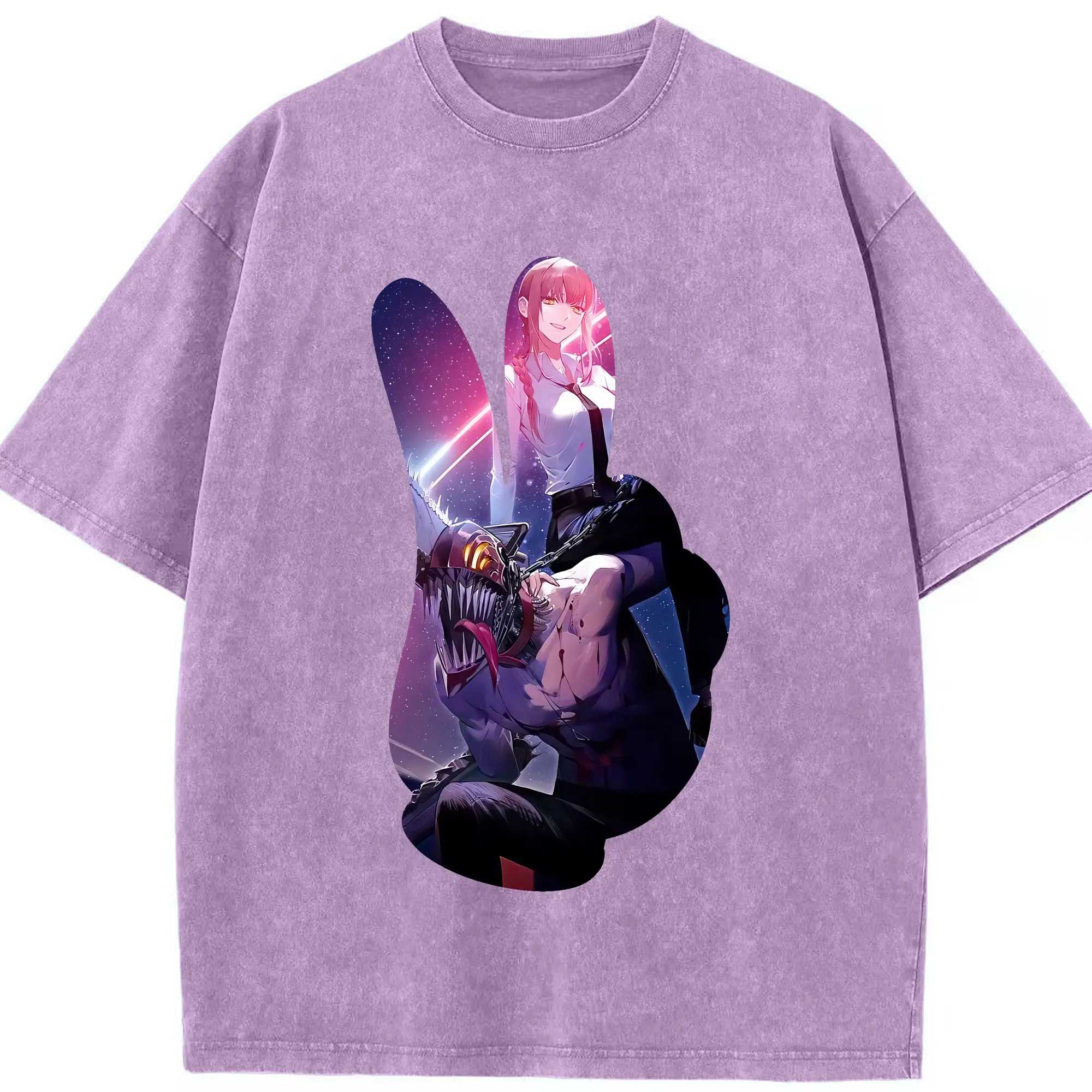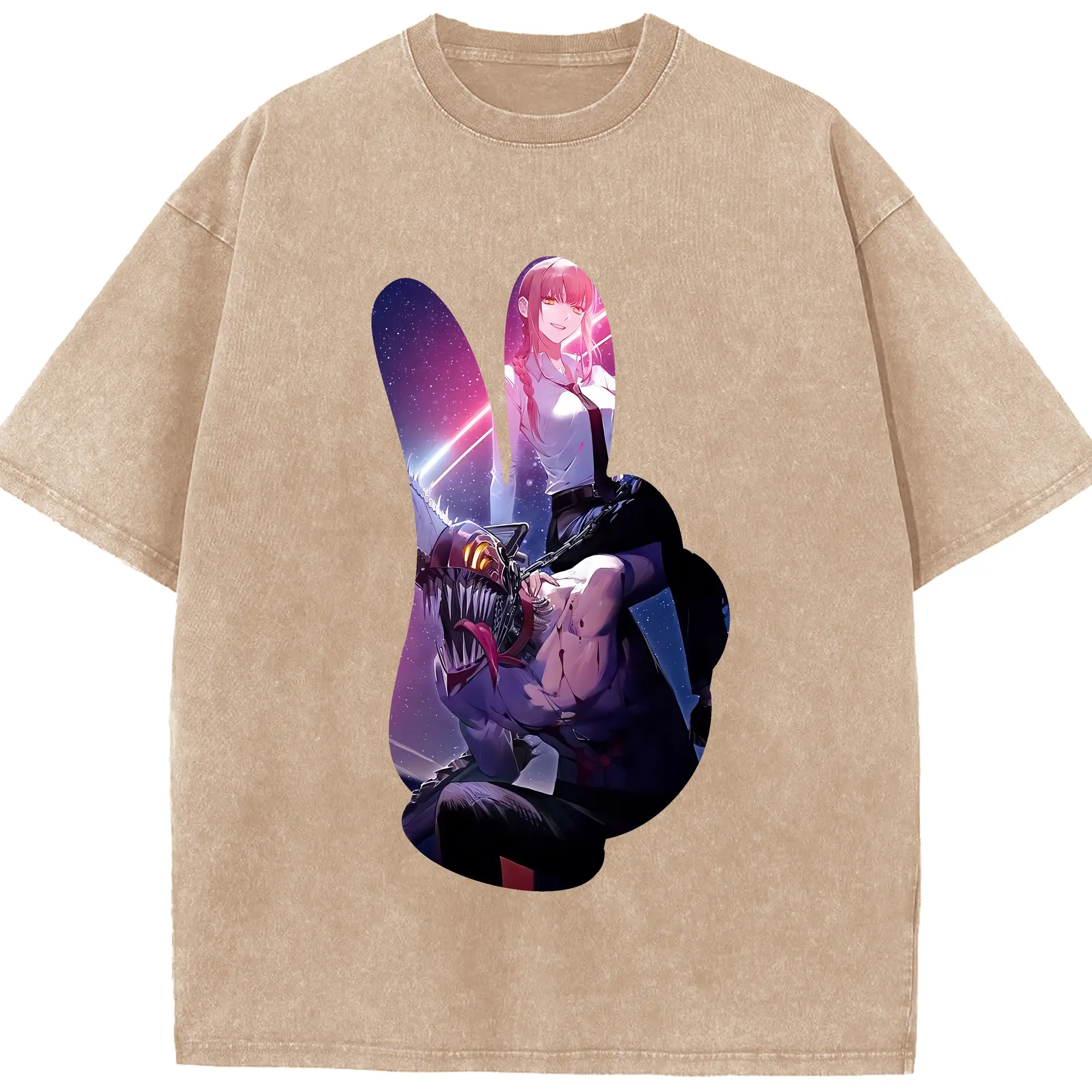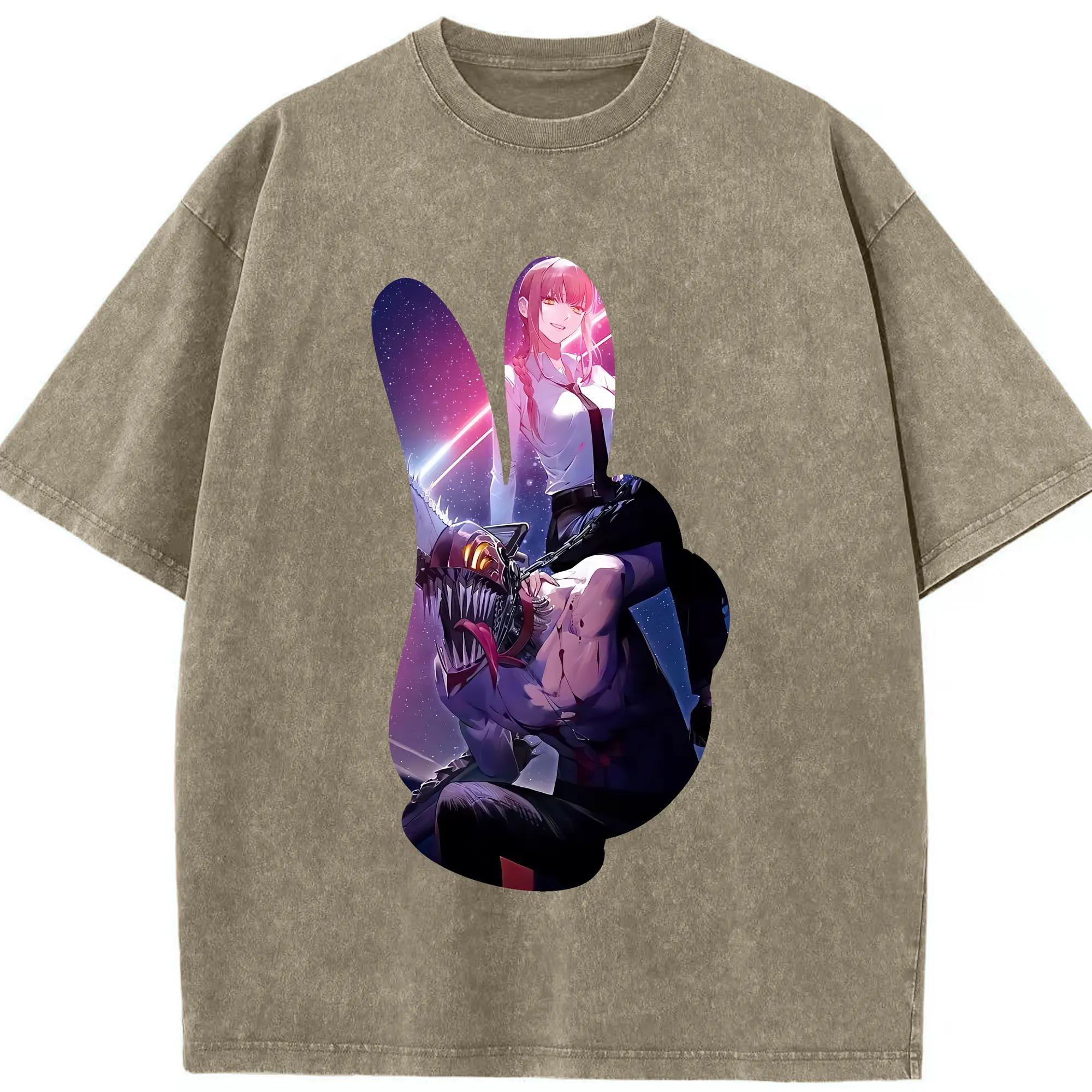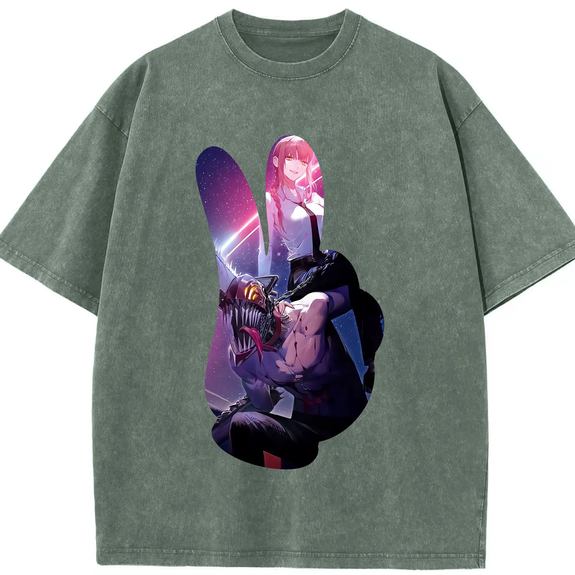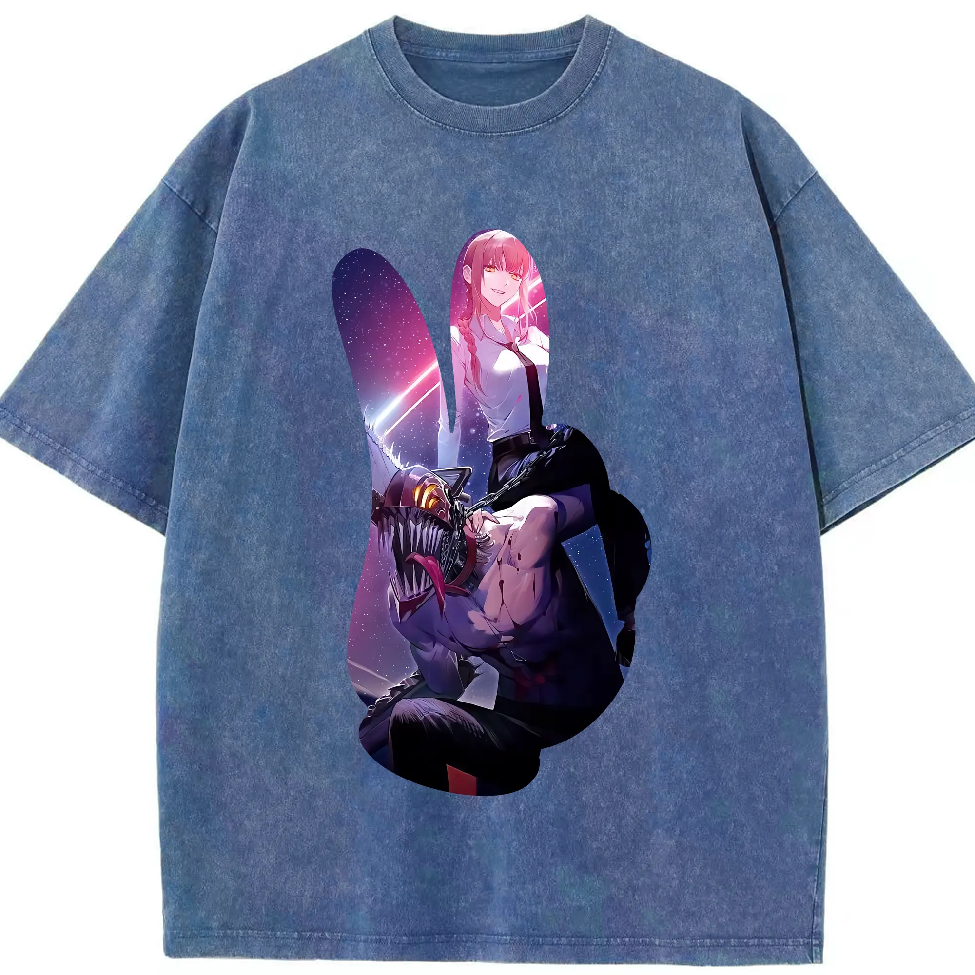 チェンソーマン グッズ,デンジ - 綿100% ヴィンテージ風 半袖Tシャツ ・ 背面プリント ・ 柔らか肌触り ・ 通気性 快適 ・ スポーツ カジュアル 外出用