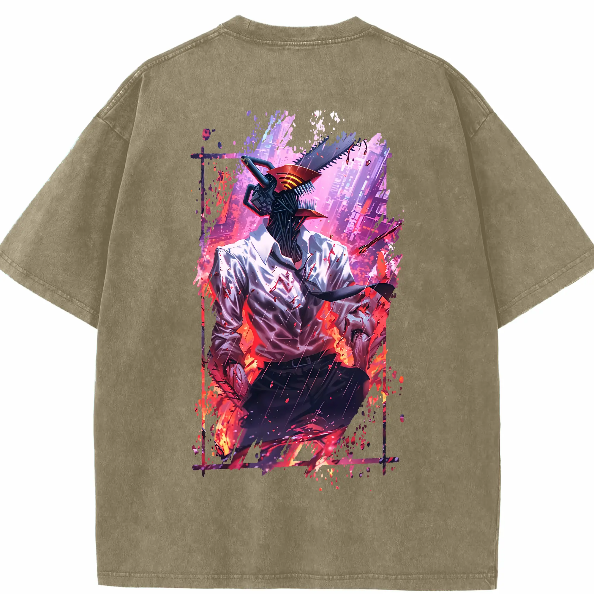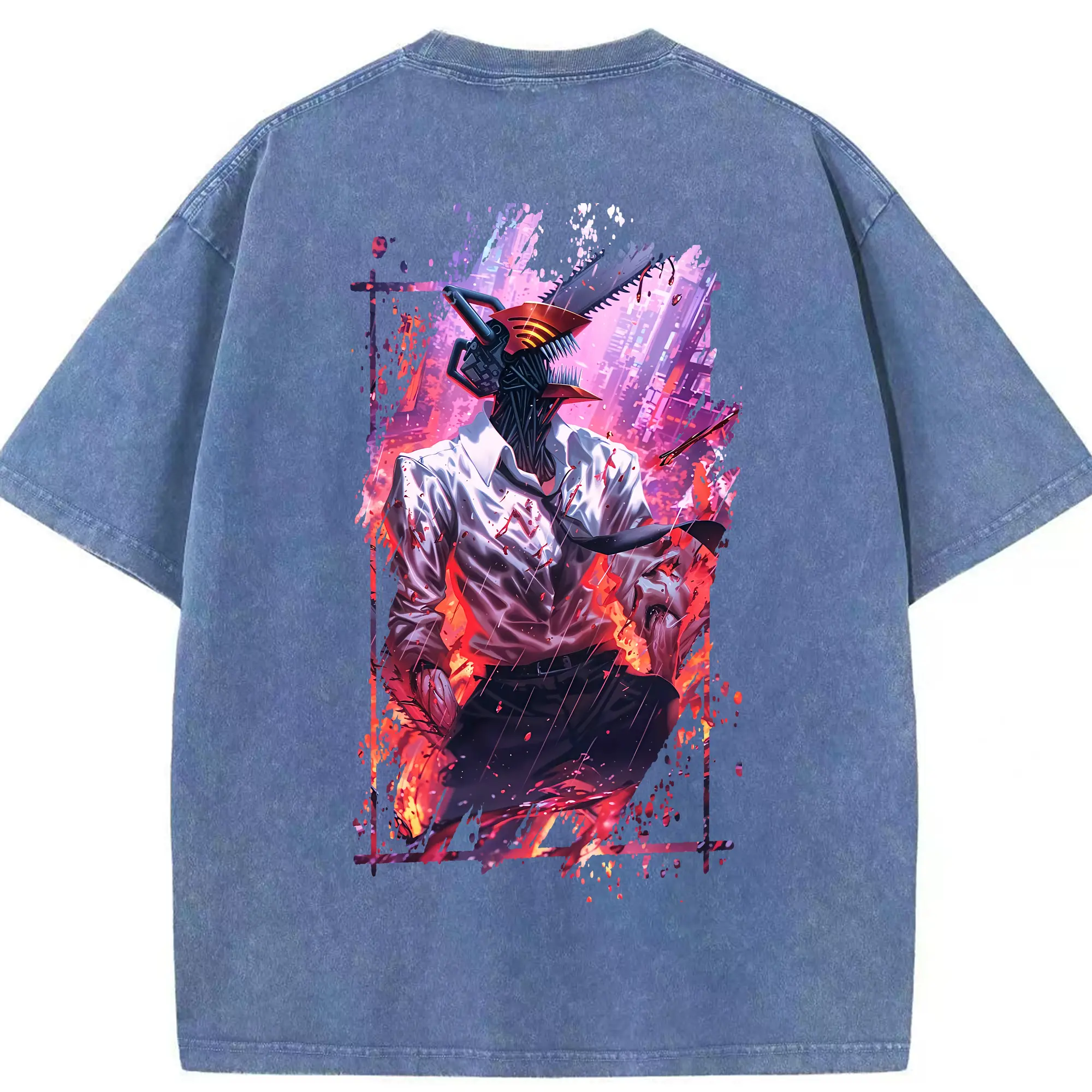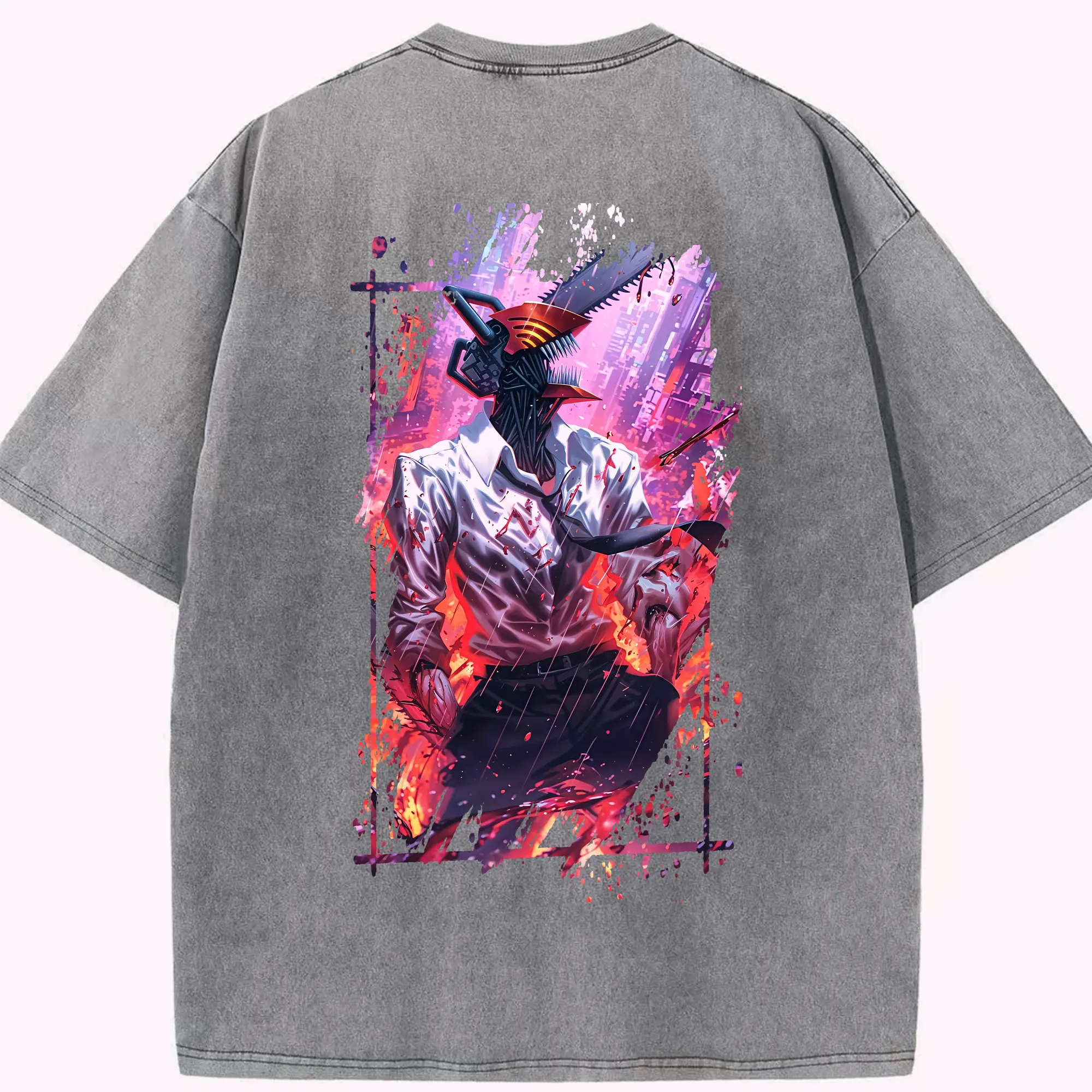チェンソーマン グッズ,デンジ - 綿100% ヴィンテージ風 半袖Tシャツ ・ フロントプリント ・ 柔らか肌触り ・ 通気性 快適 ・ スポーツ カジュアル 外出用