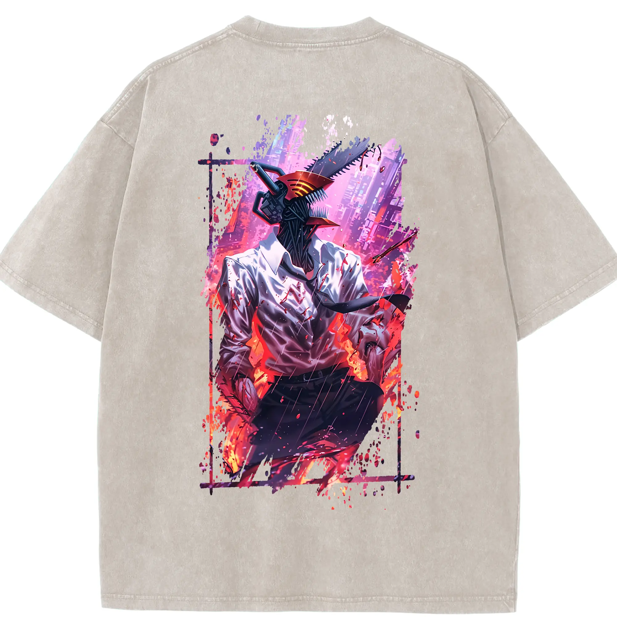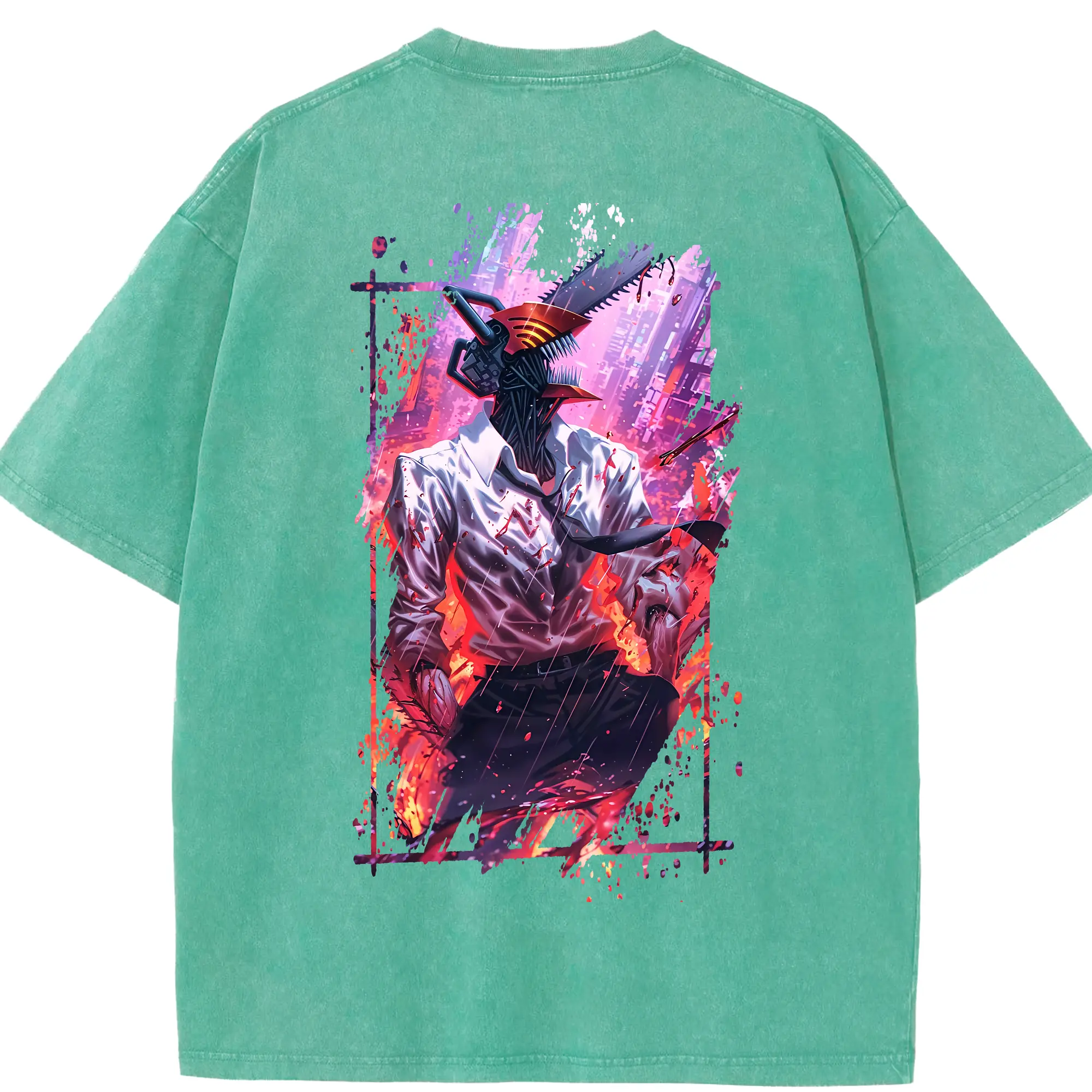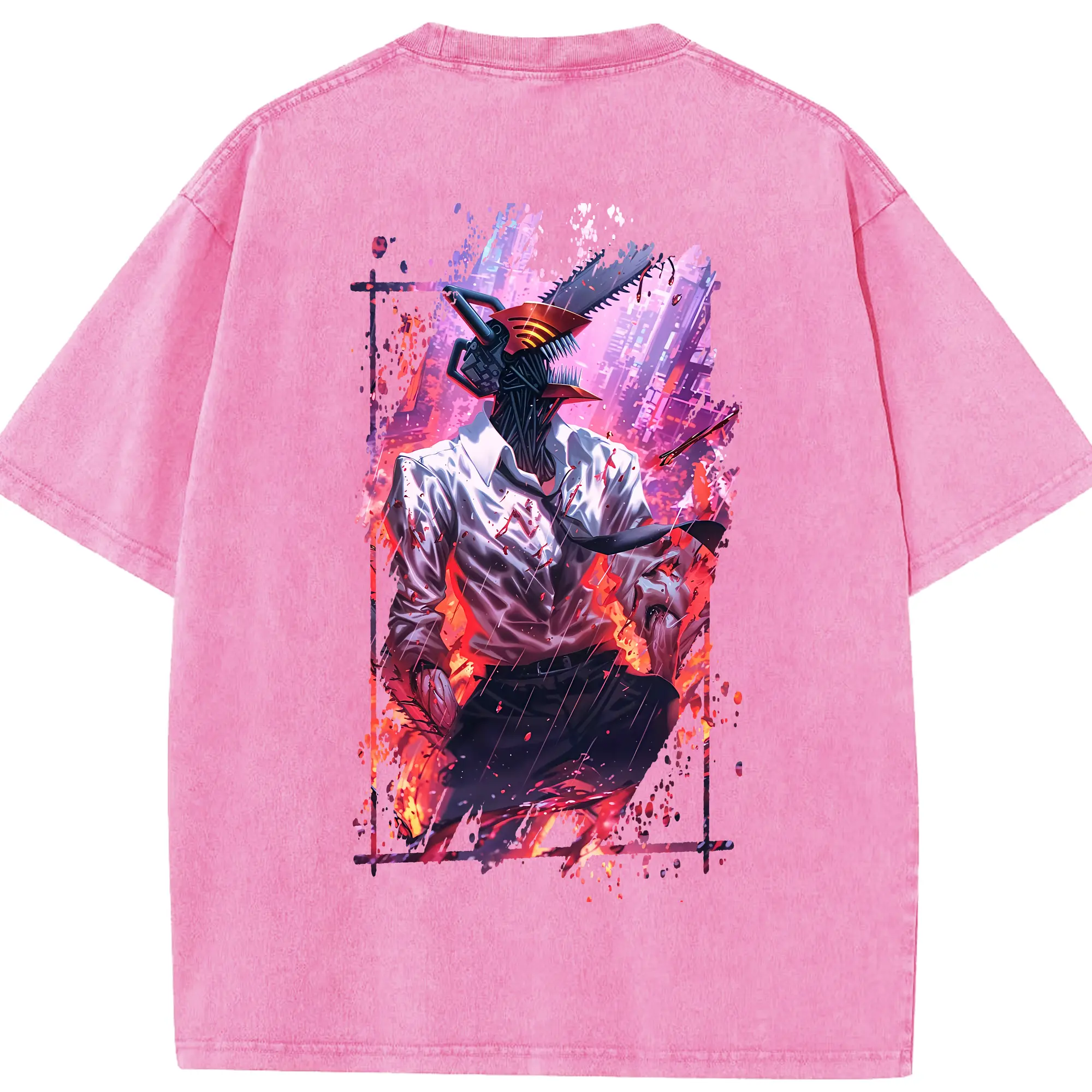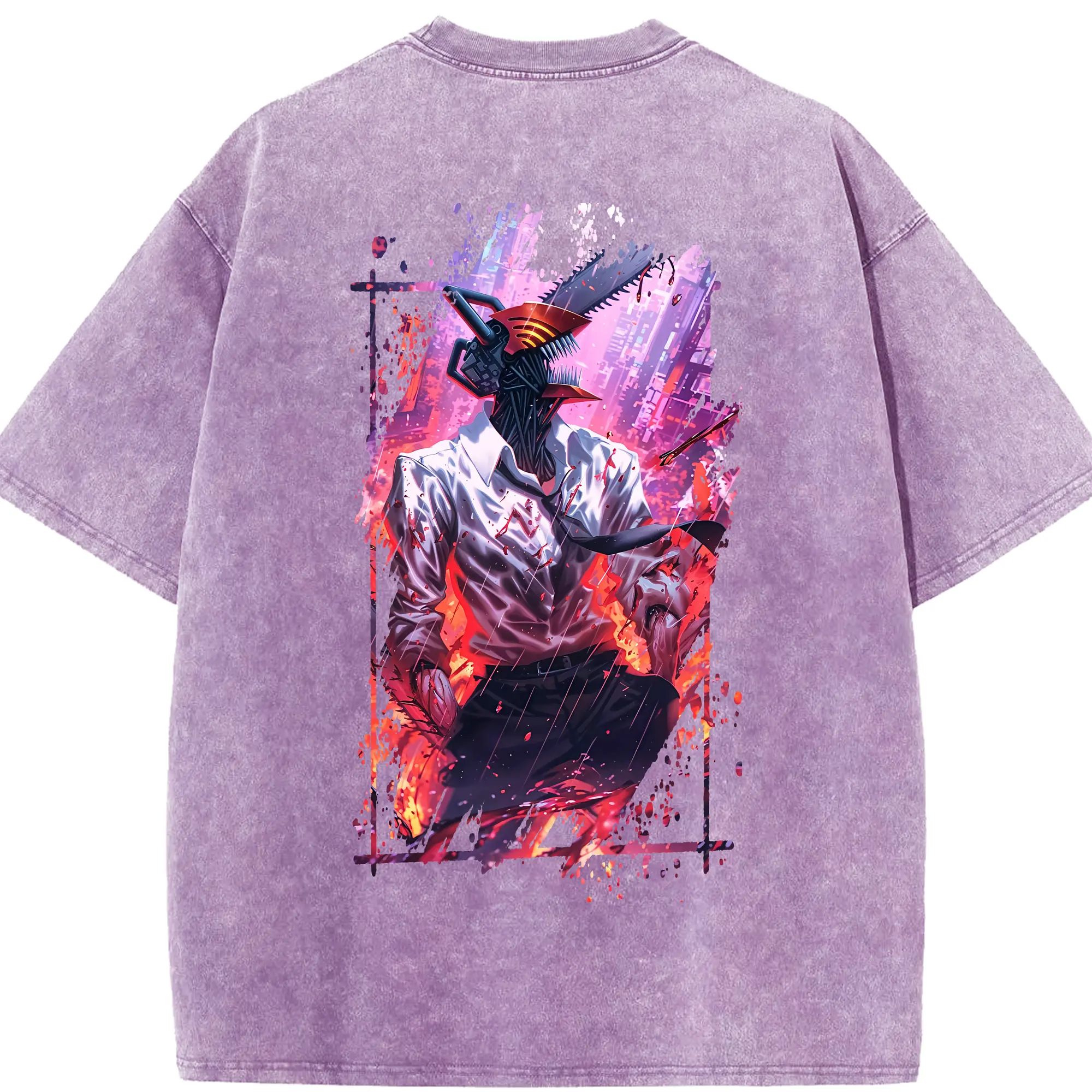 チェンソーマン グッズ,デンジ - 綿100% ヴィンテージ風 半袖Tシャツ ・ フロントプリント ・ 柔らか肌触り ・ 通気性 快適 ・ スポーツ カジュアル 外出用