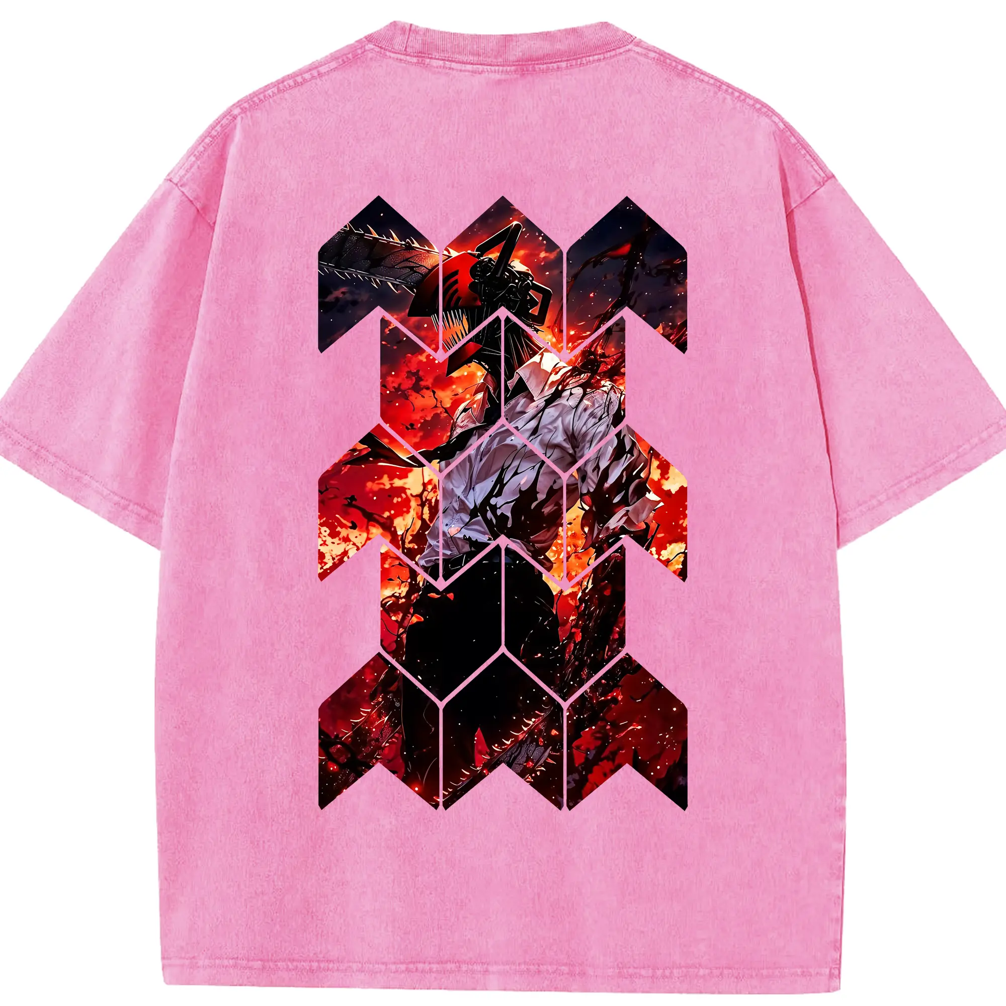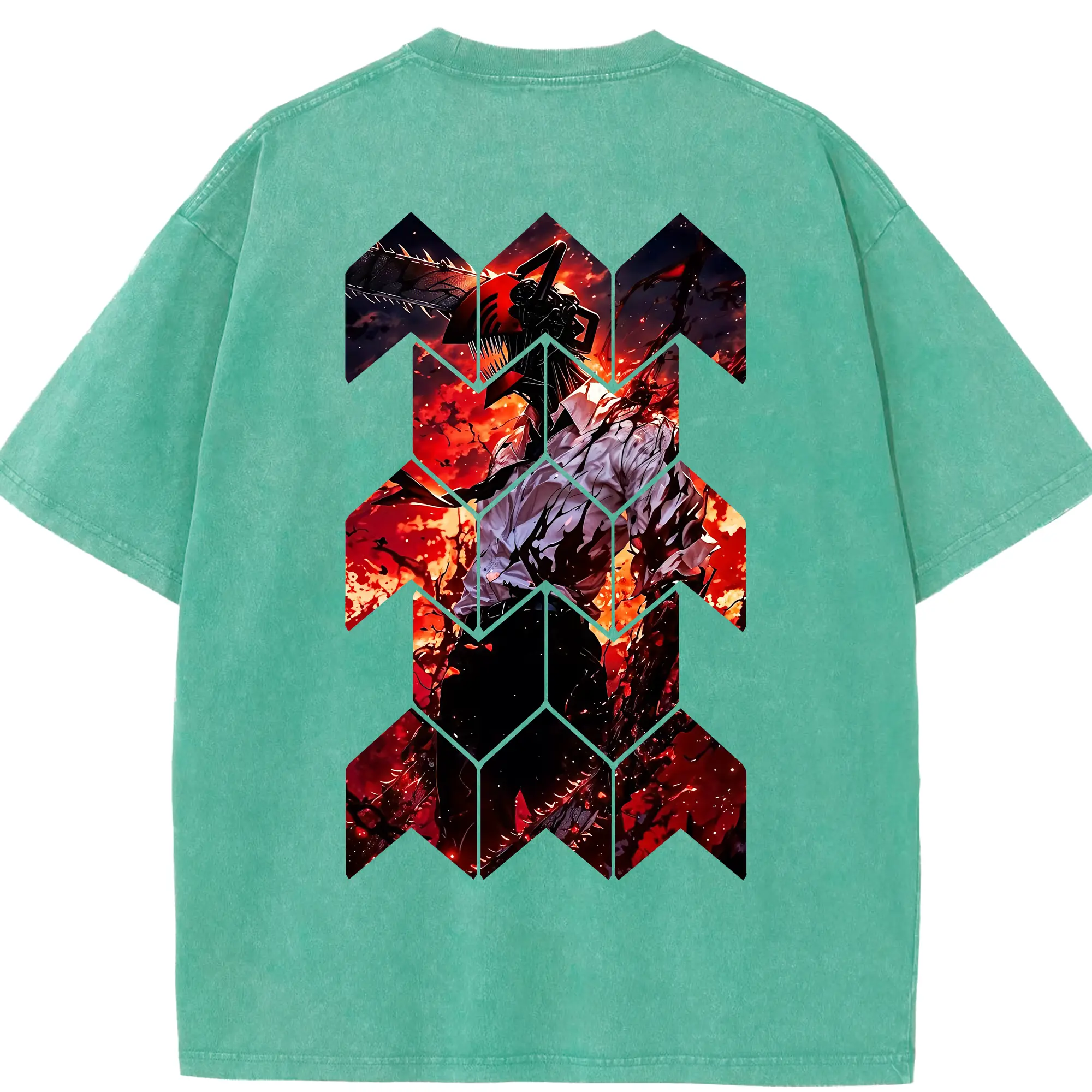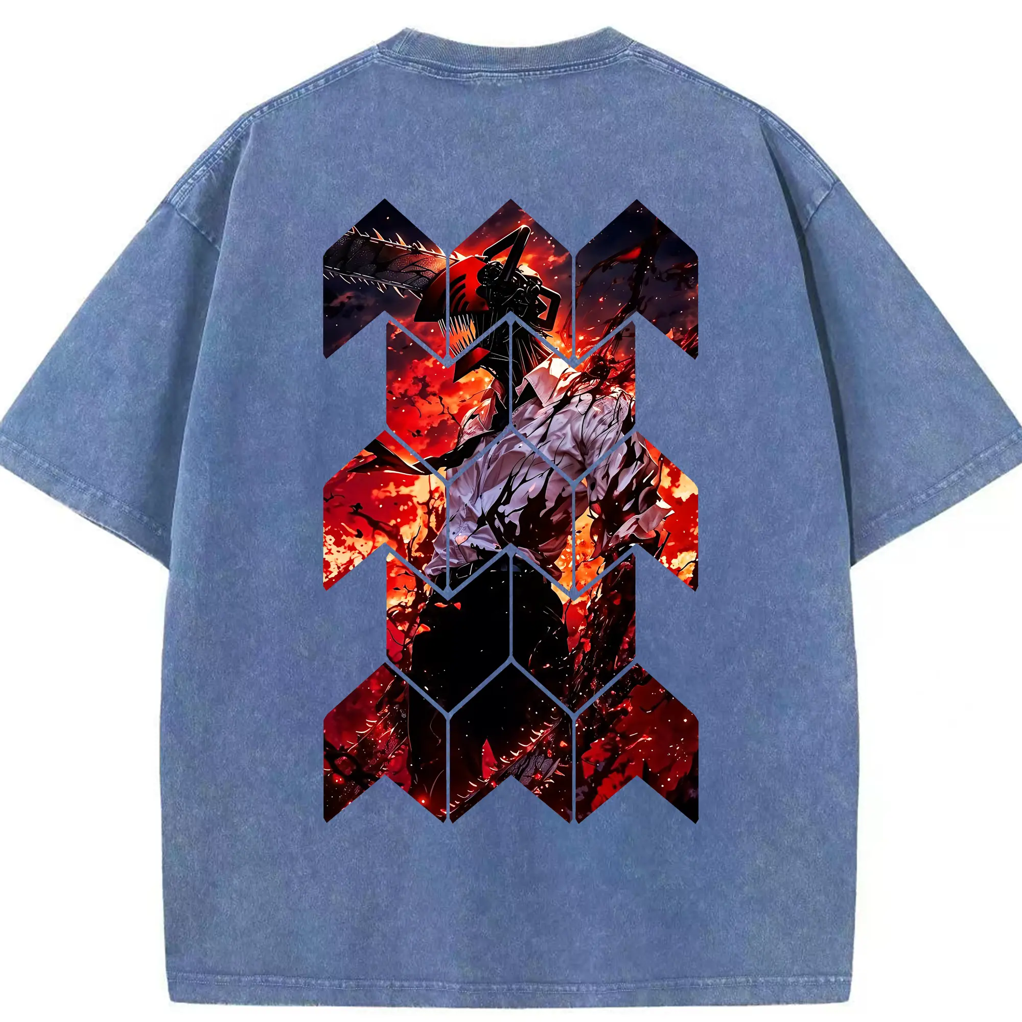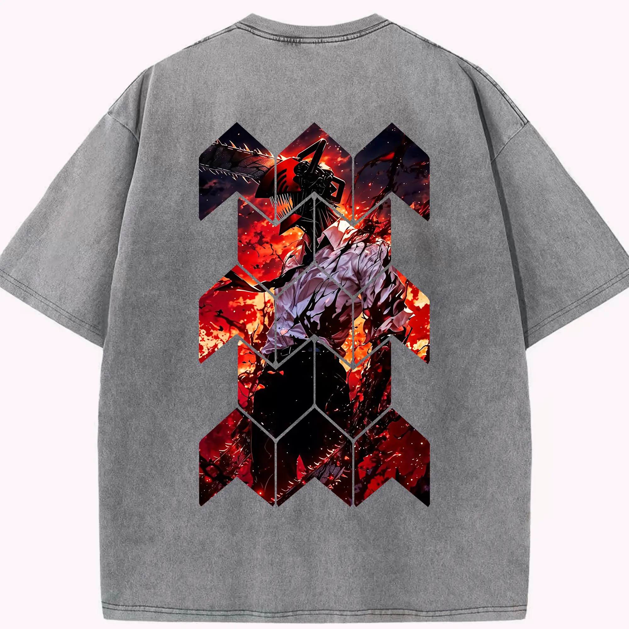 チェンソーマン グッズ,デンジ - 綿100% ヴィンテージ風 半袖Tシャツ ・ フロントプリント ・ 柔らか肌触り ・ 通気性 快適 ・ スポーツ カジュアル 外出用