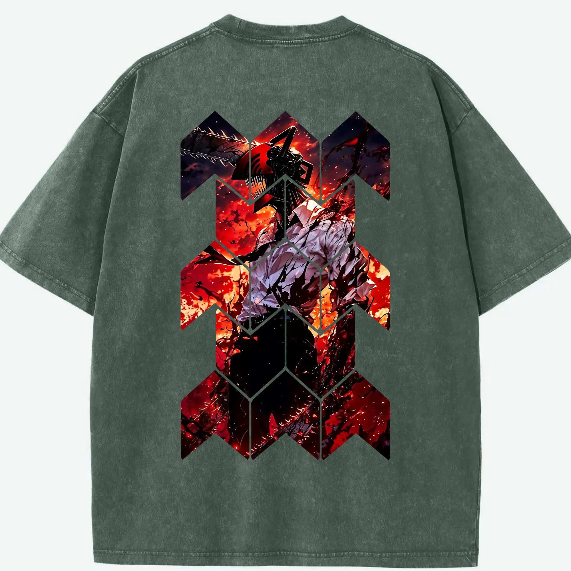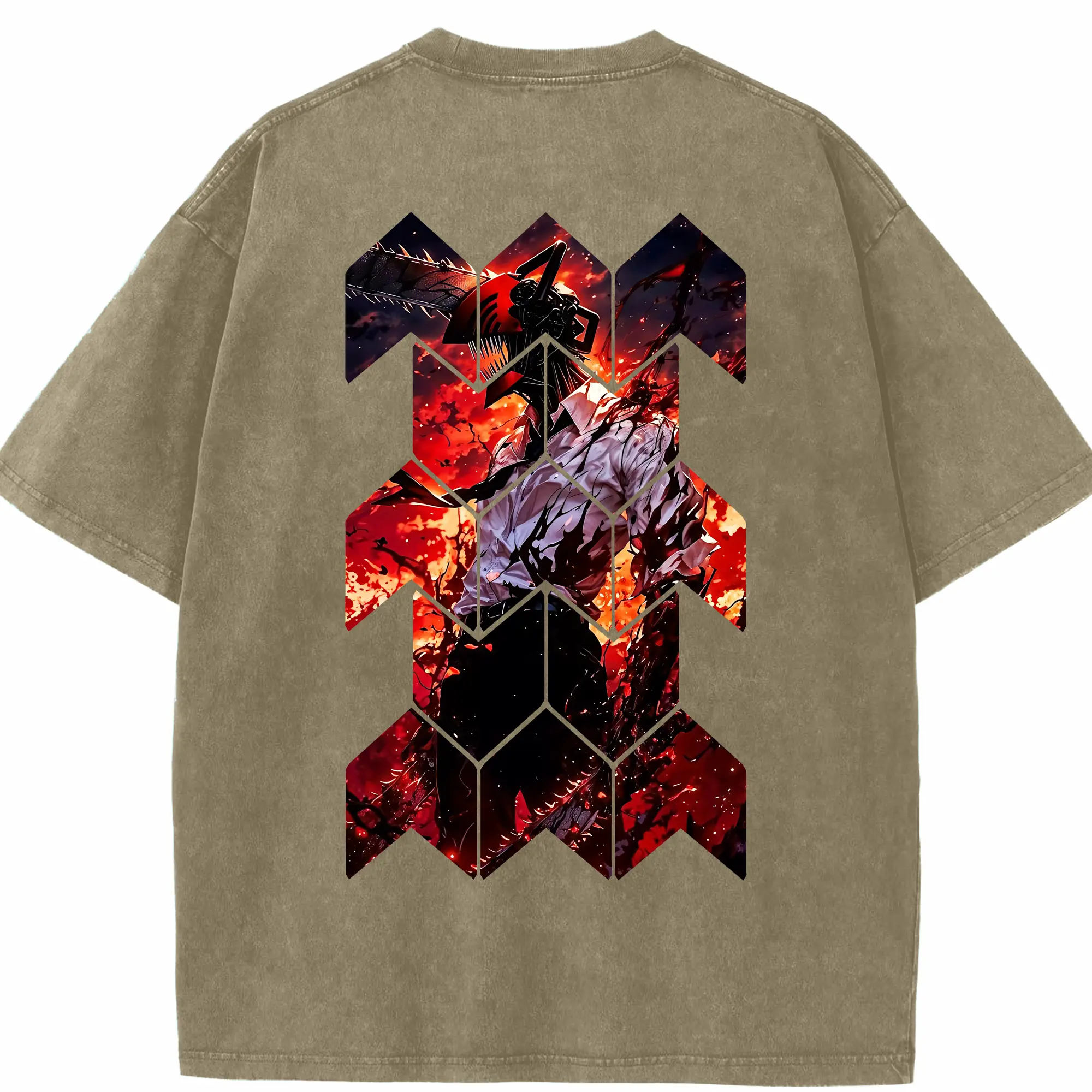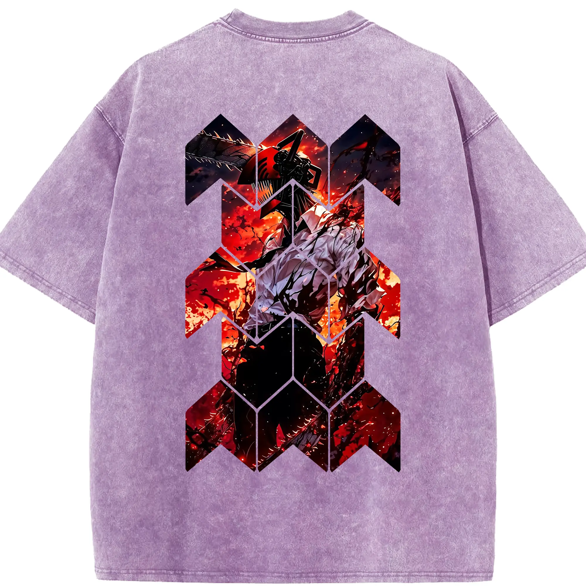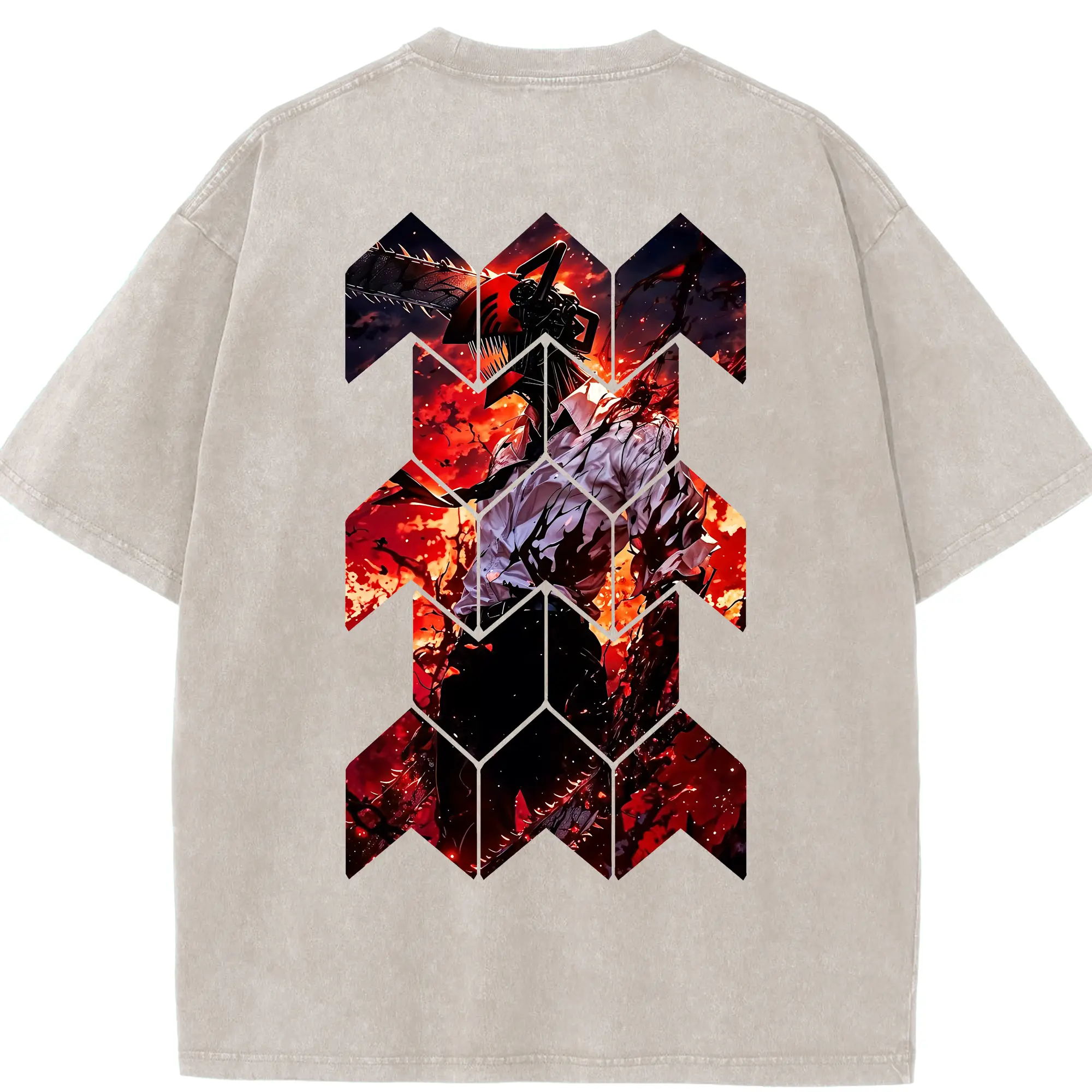 チェンソーマン グッズ,デンジ - 綿100% ヴィンテージ風 半袖Tシャツ ・ フロントプリント ・ 柔らか肌触り ・ 通気性 快適 ・ スポーツ カジュアル 外出用
